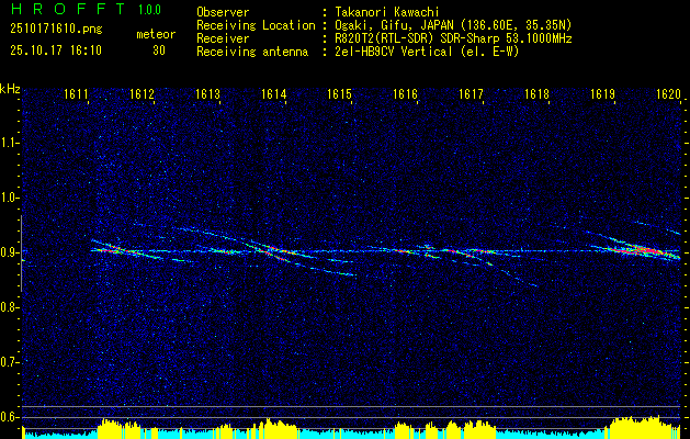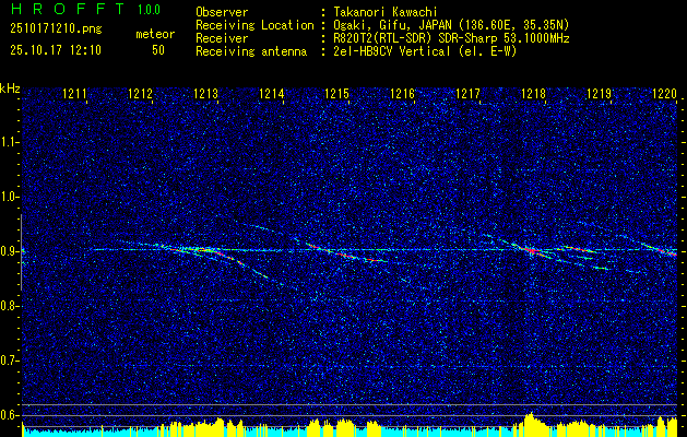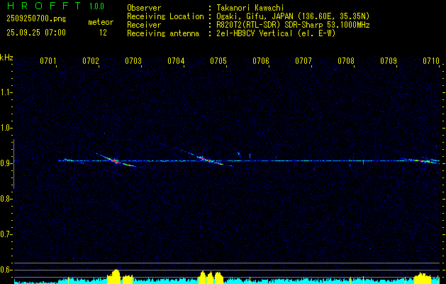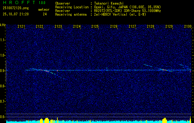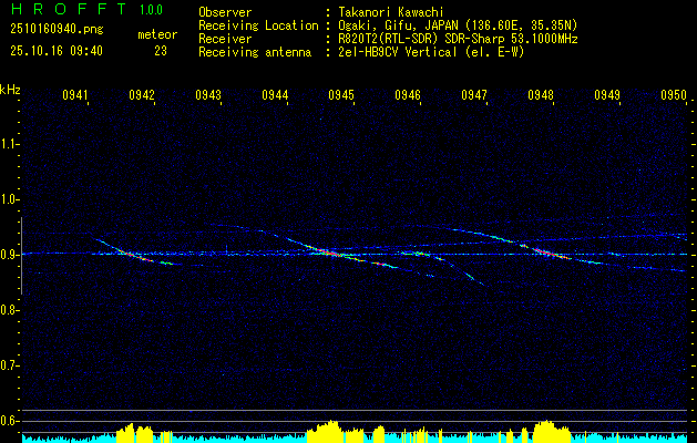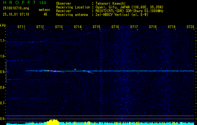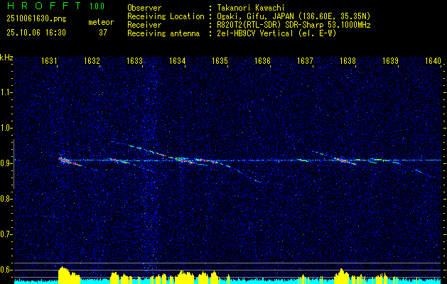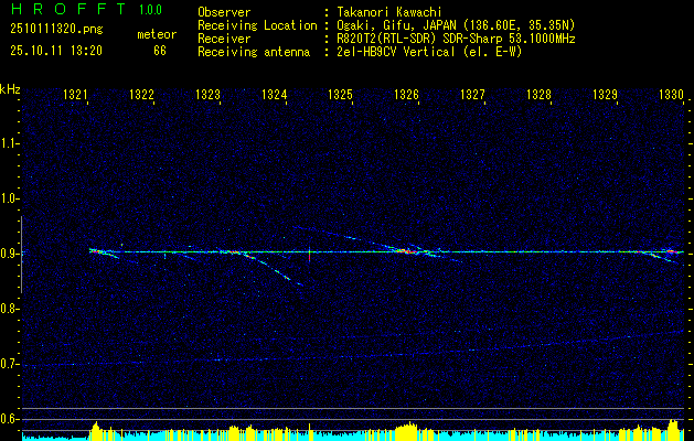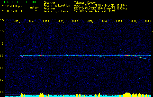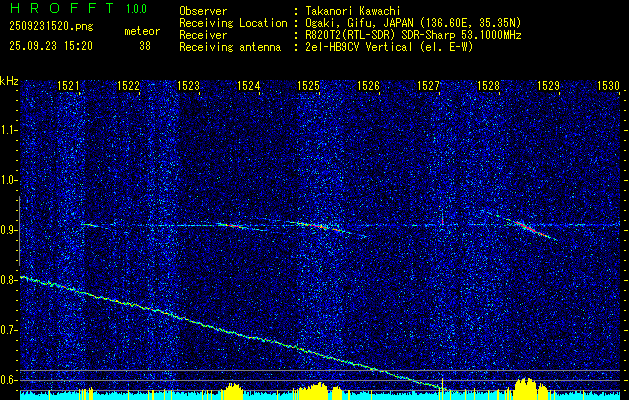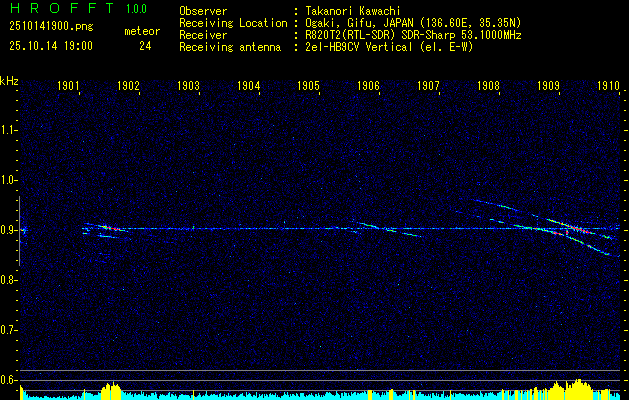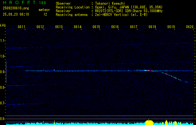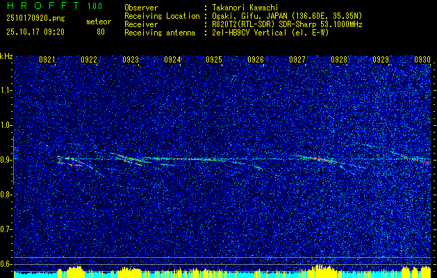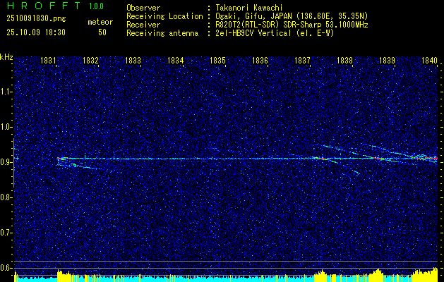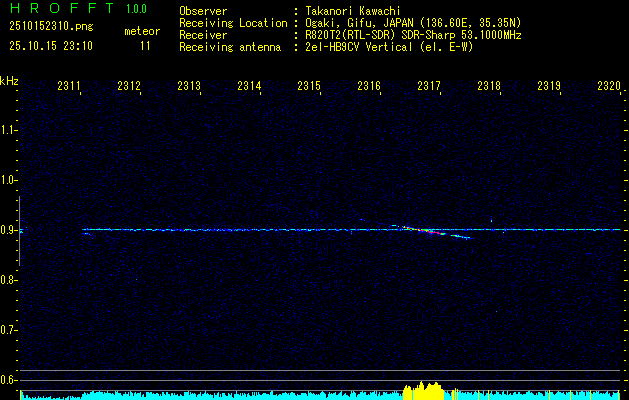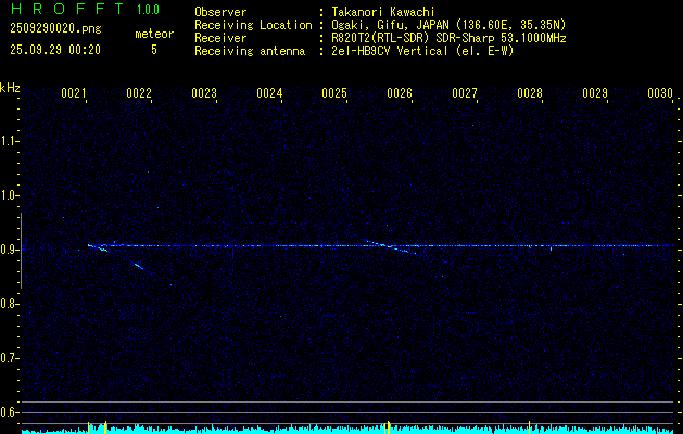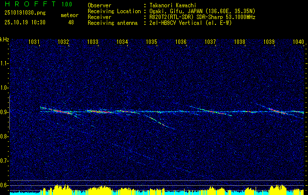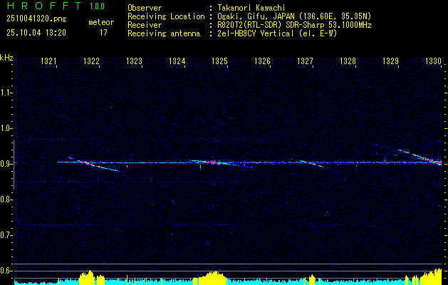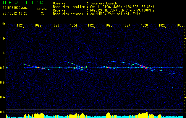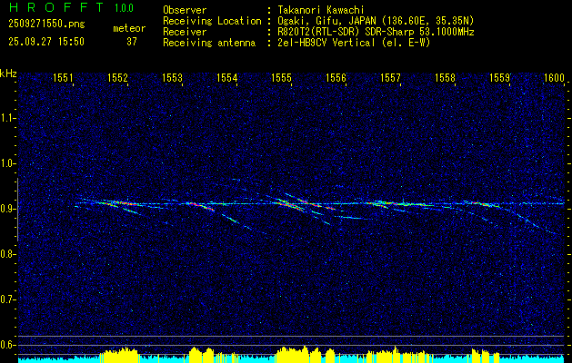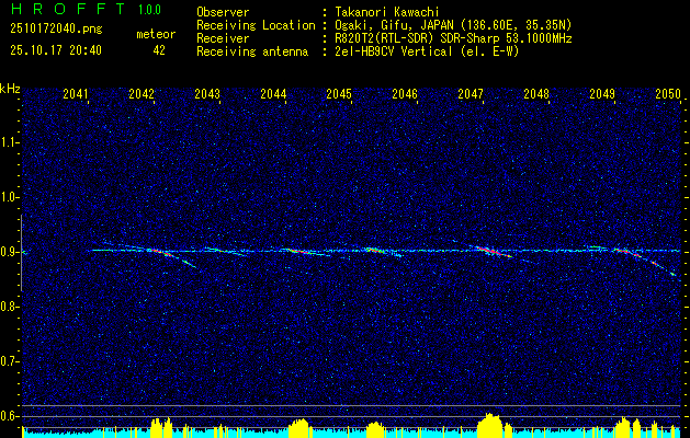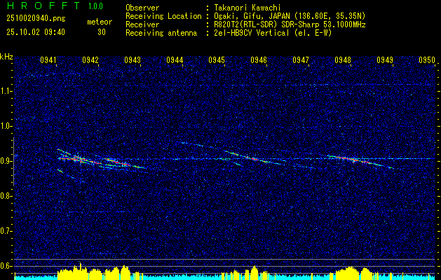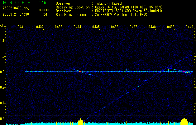 0.9kHz附近に発生している『点』または『塊』が流星によるエコーです.