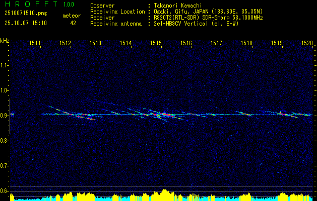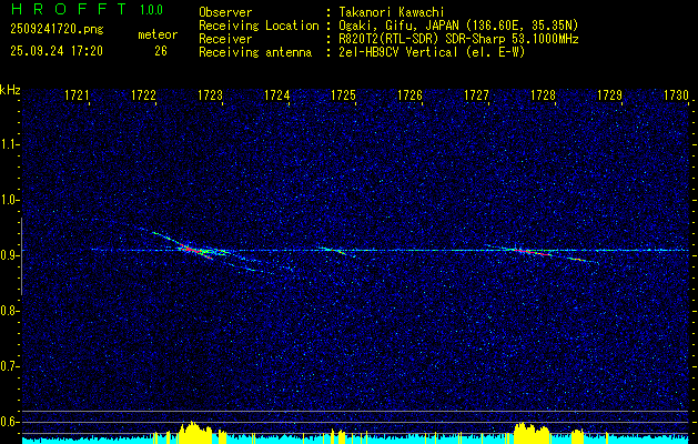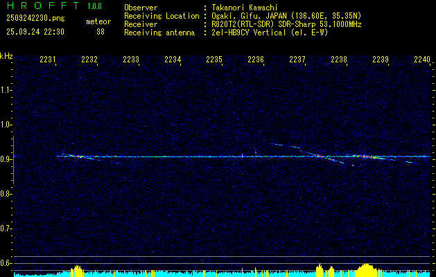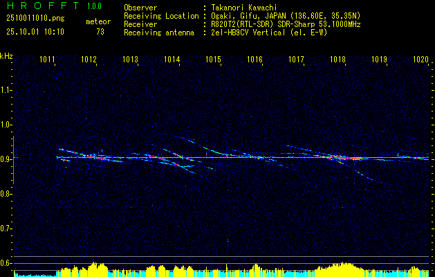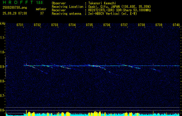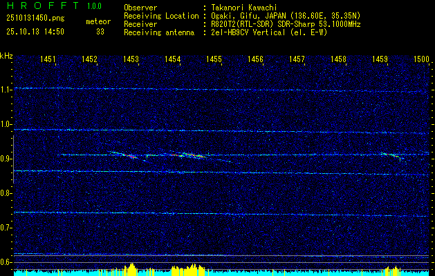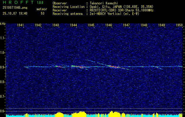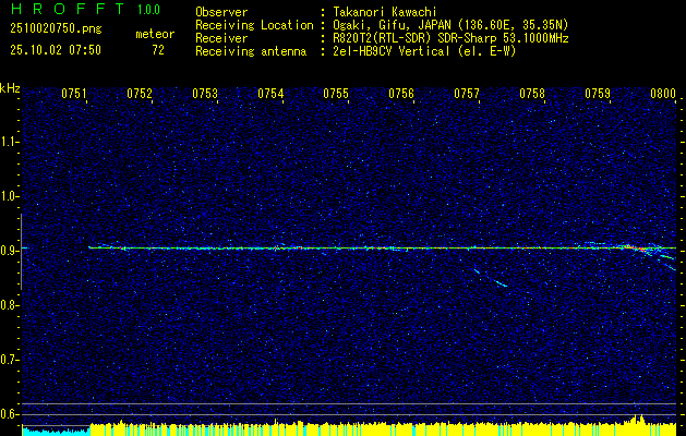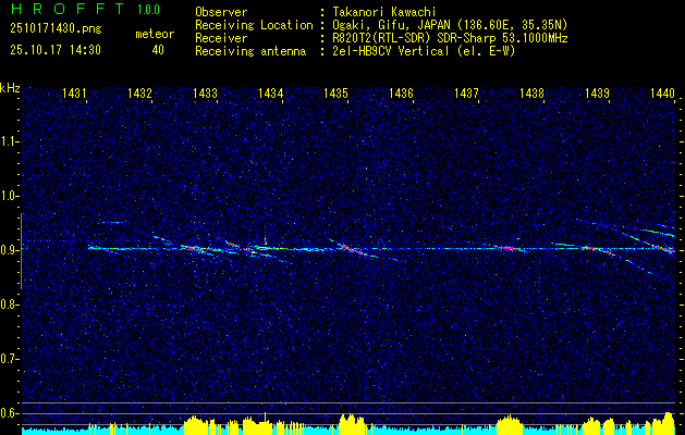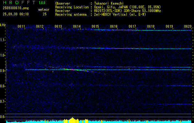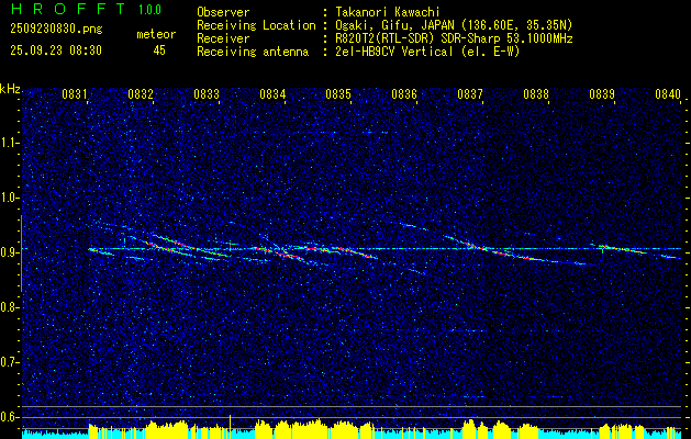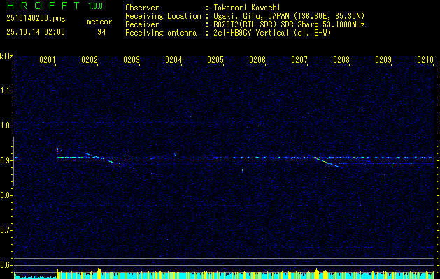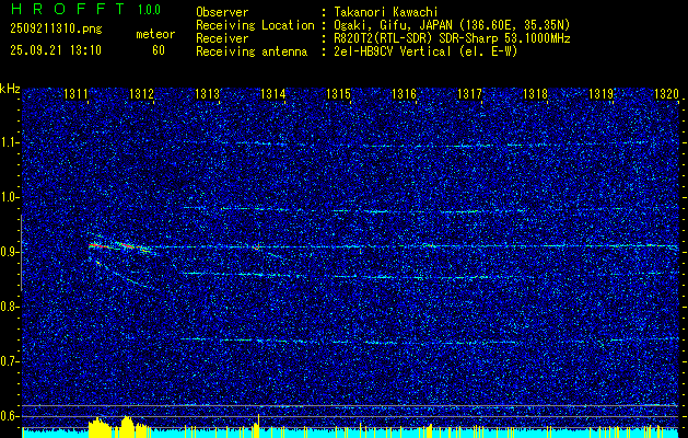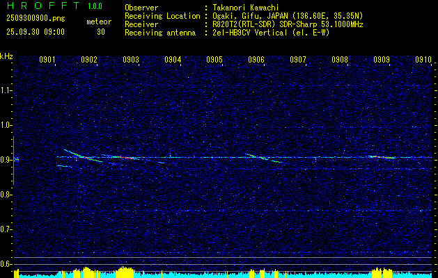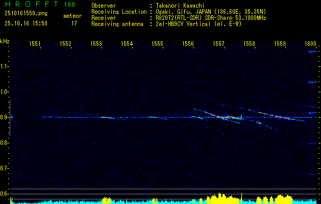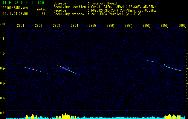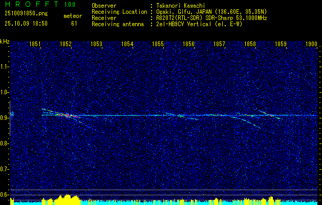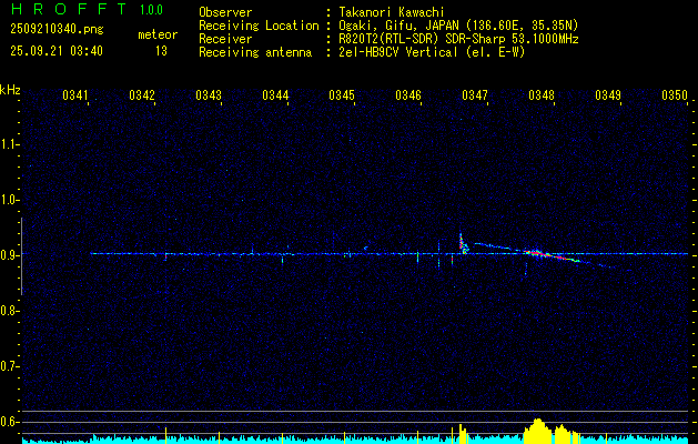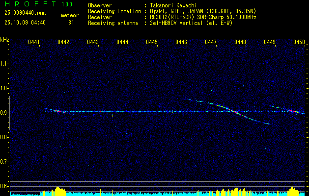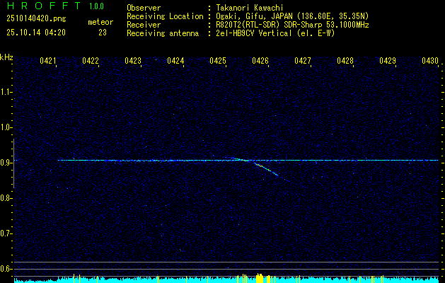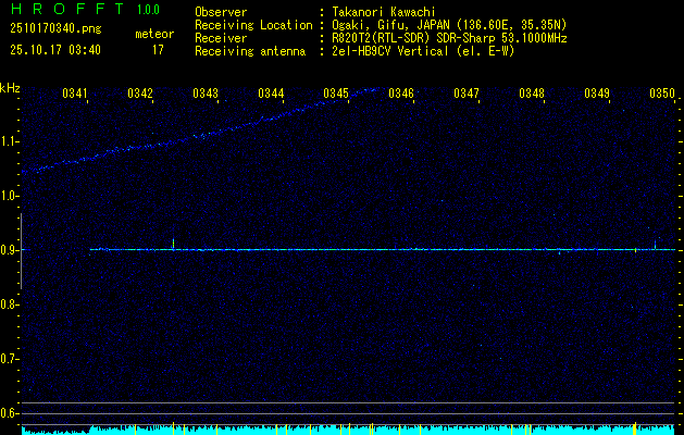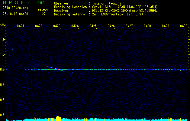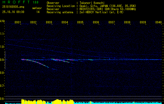 0.9kHz附近に発生している『点』または『塊』が流星によるエコーです.