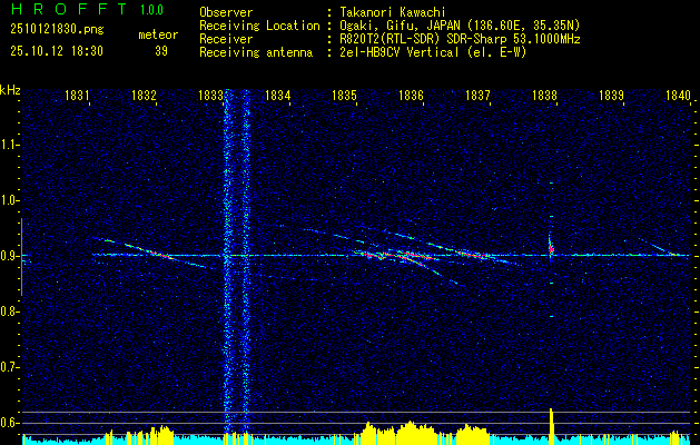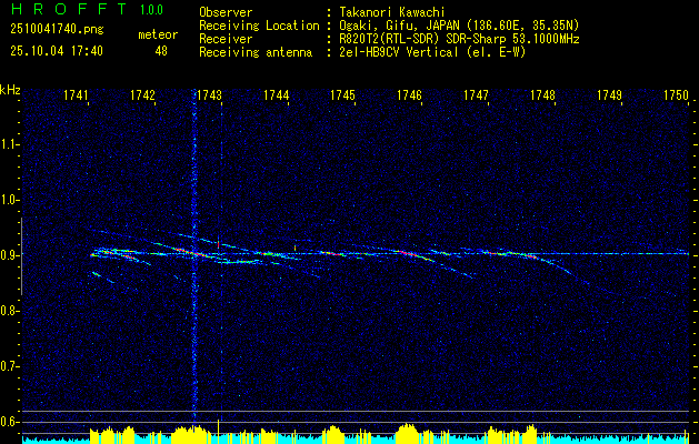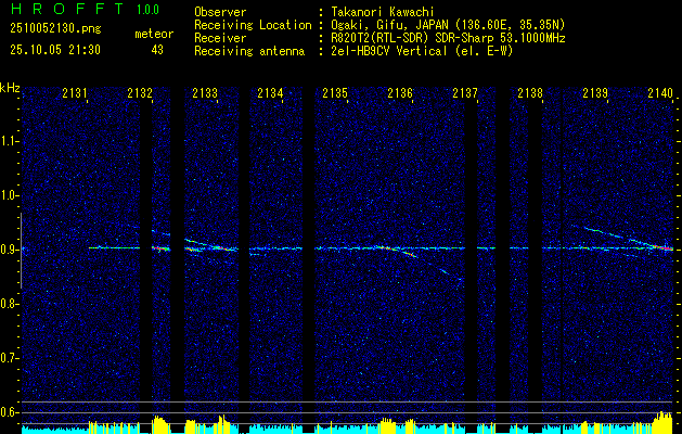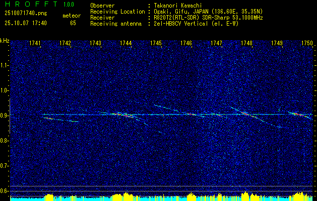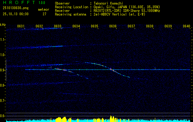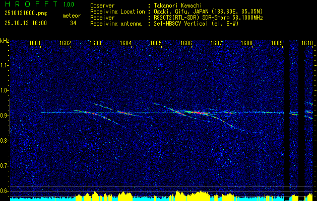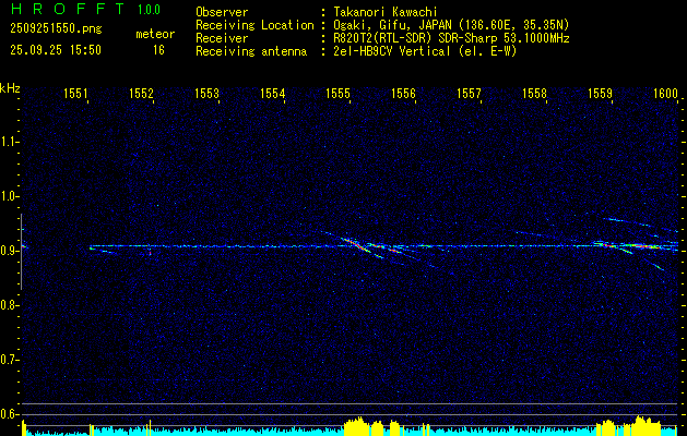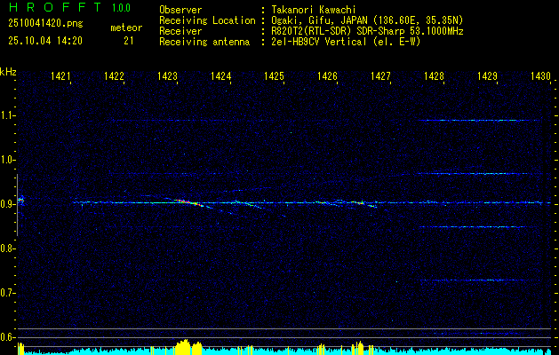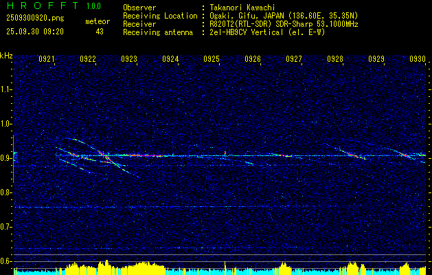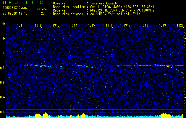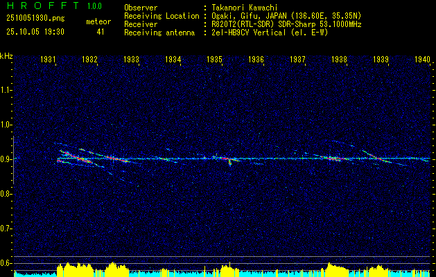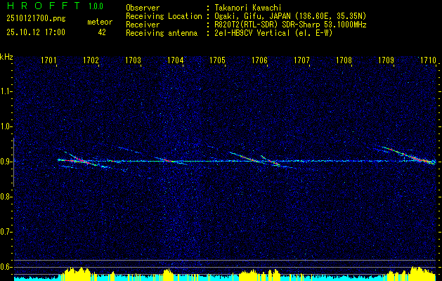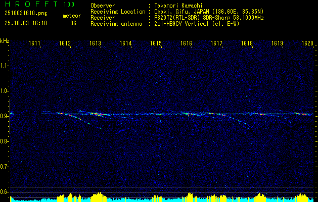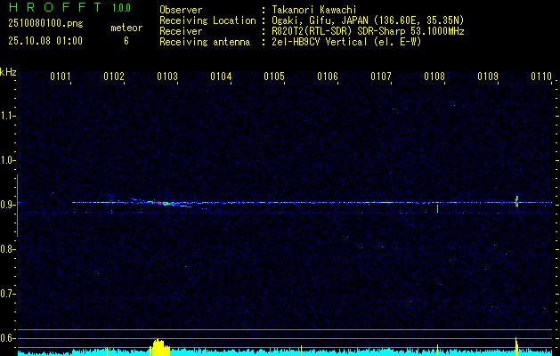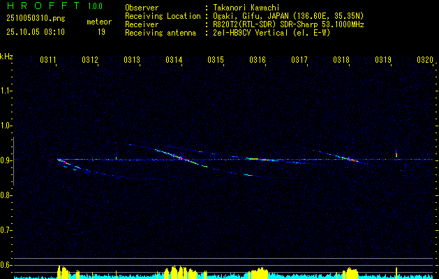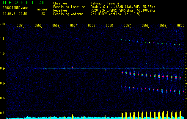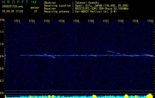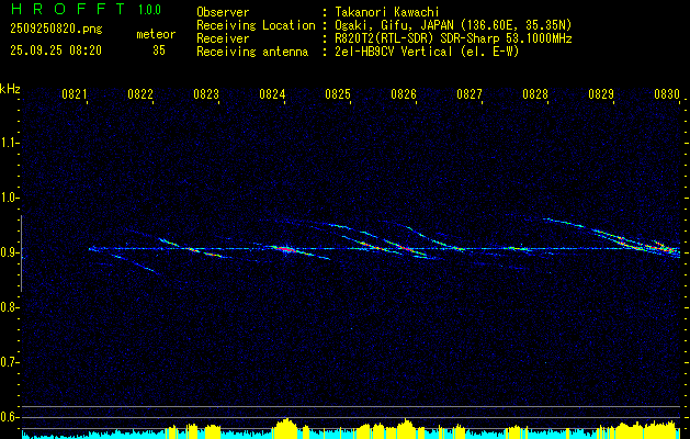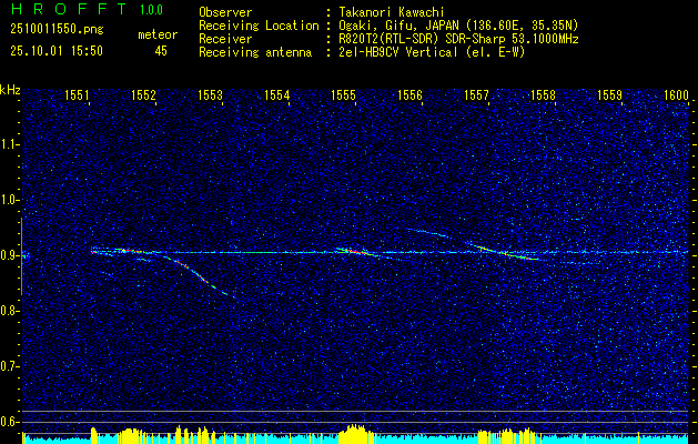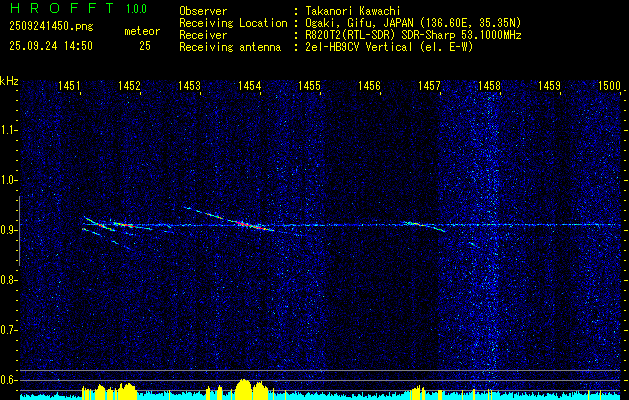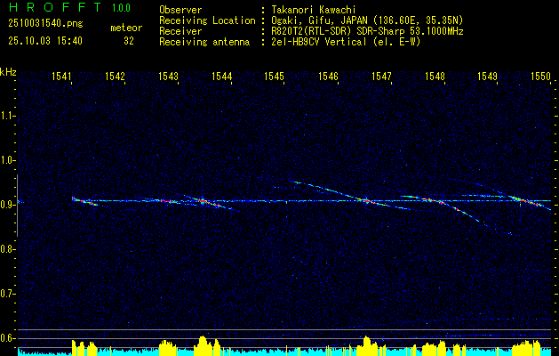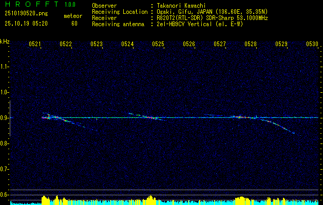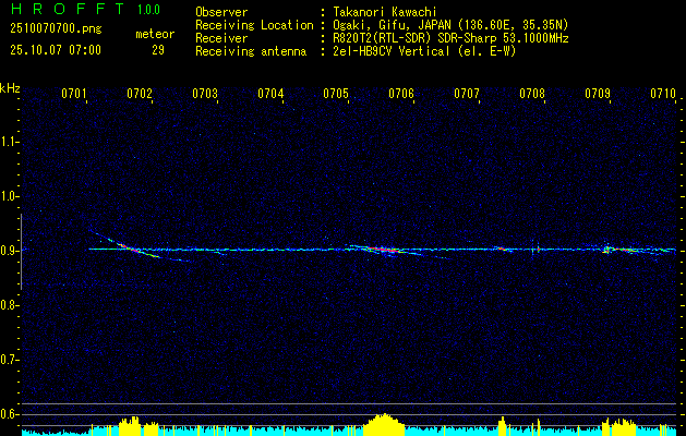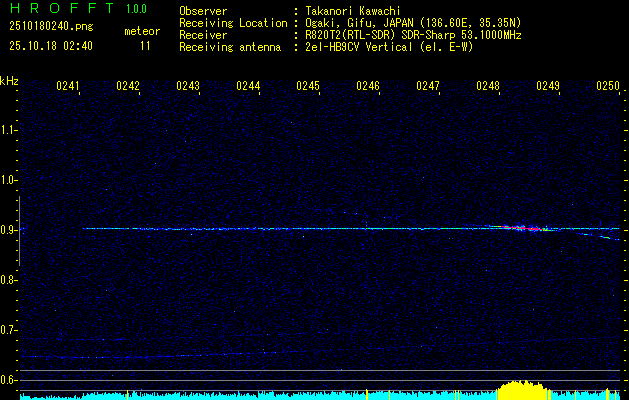 0.9kHz附近に発生している『点』または『塊』が流星によるエコーです.