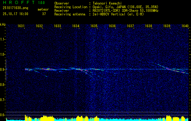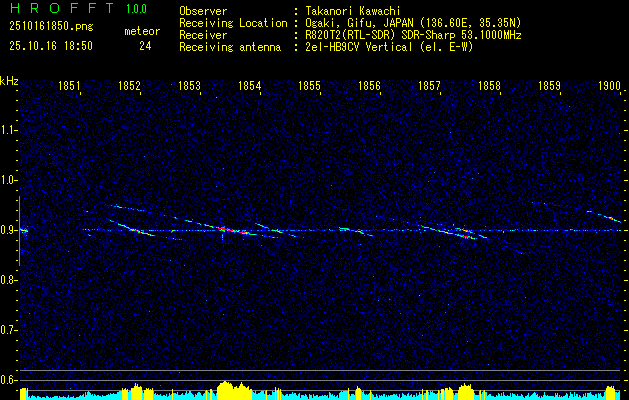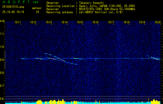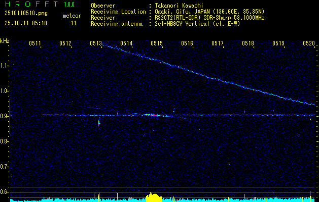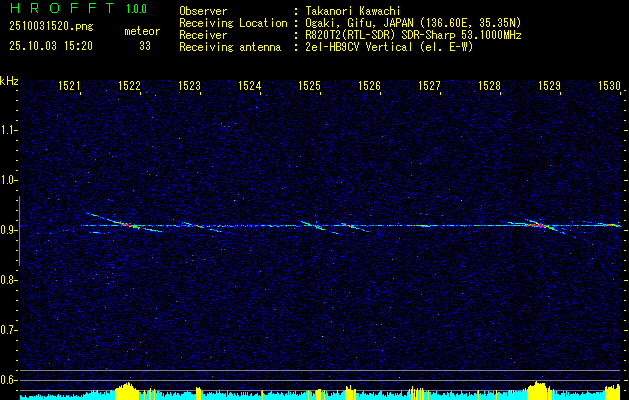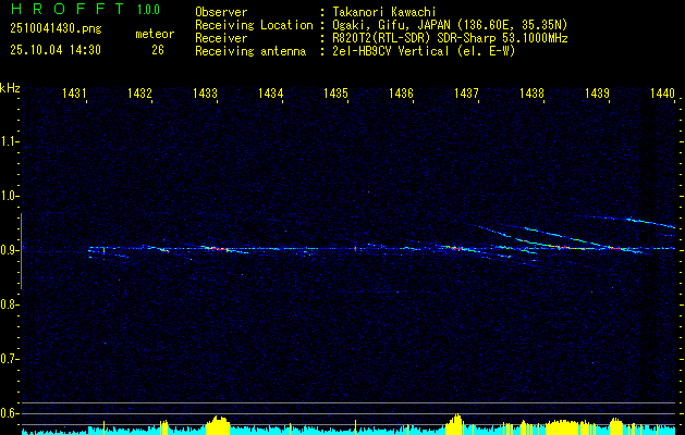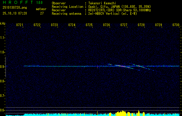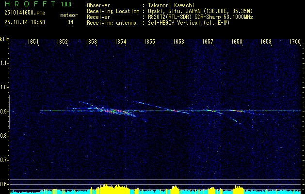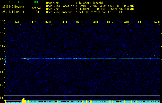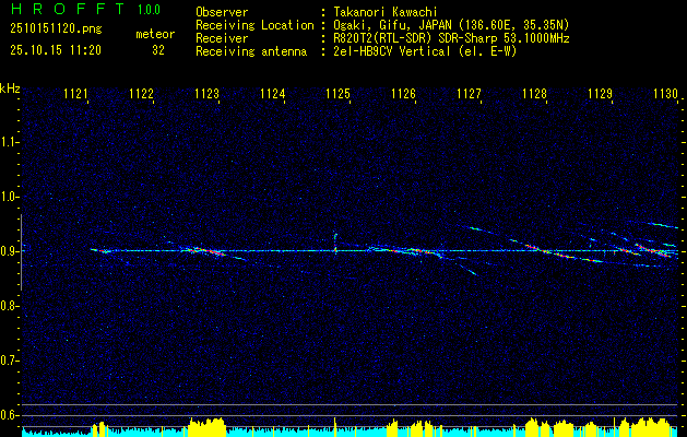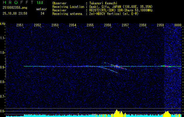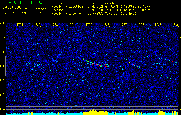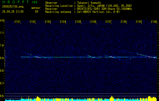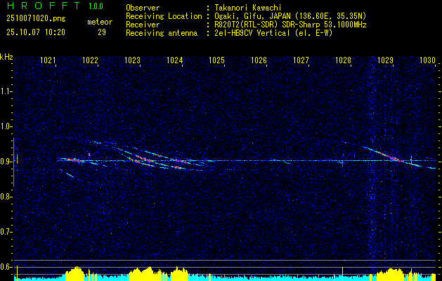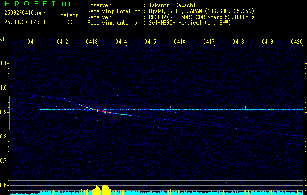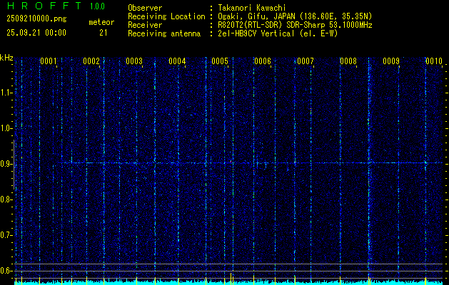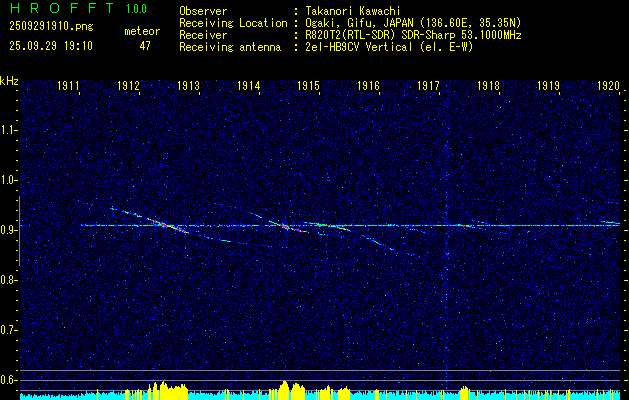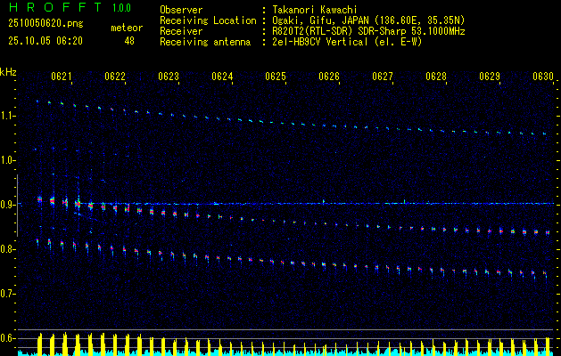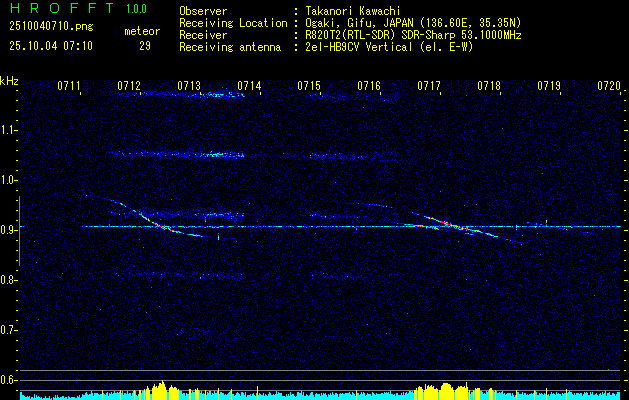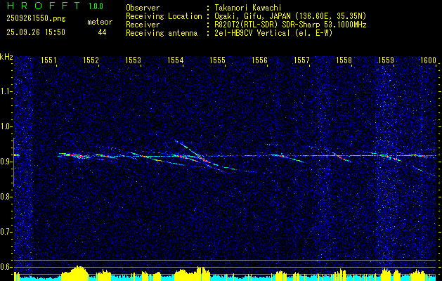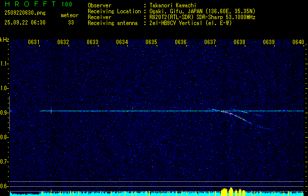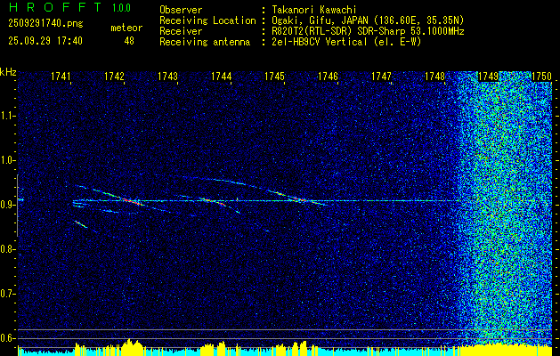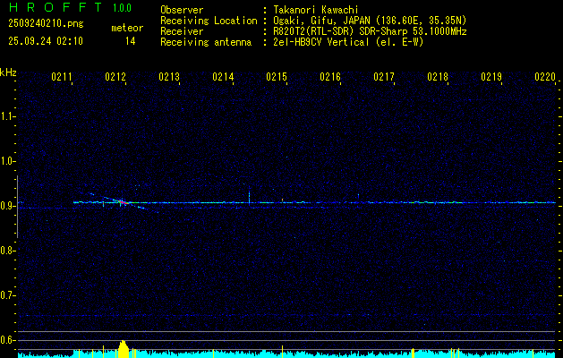 0.9kHz附近に発生している『点』または『塊』が流星によるエコーです.