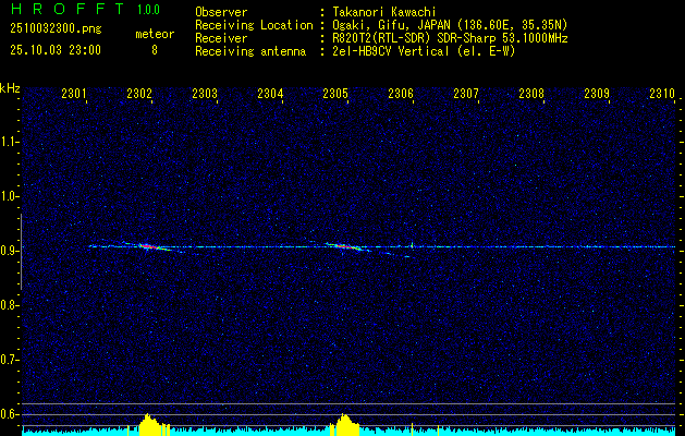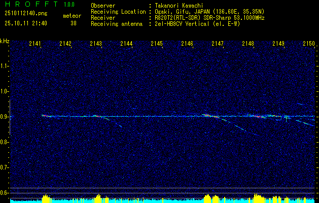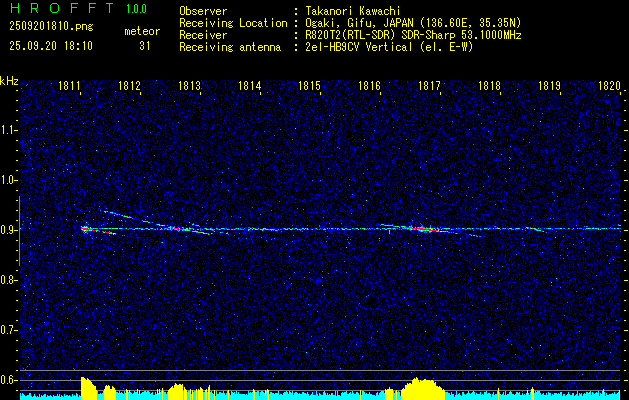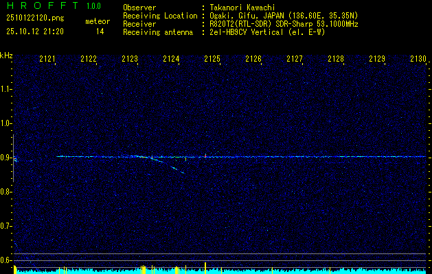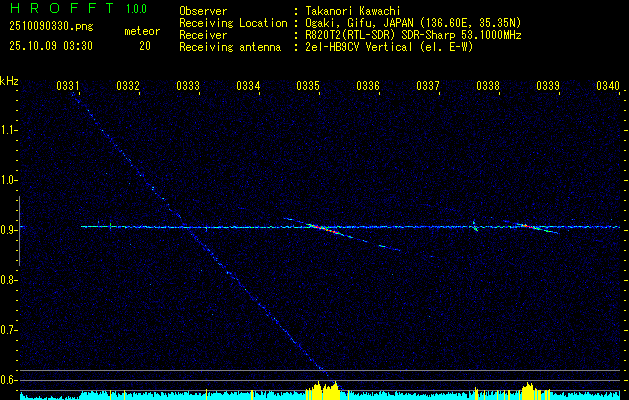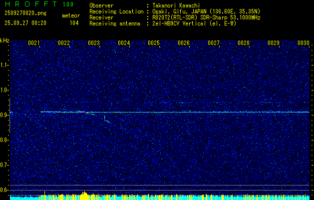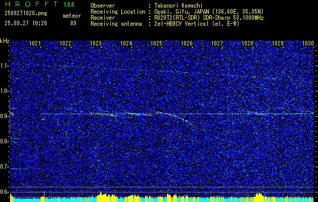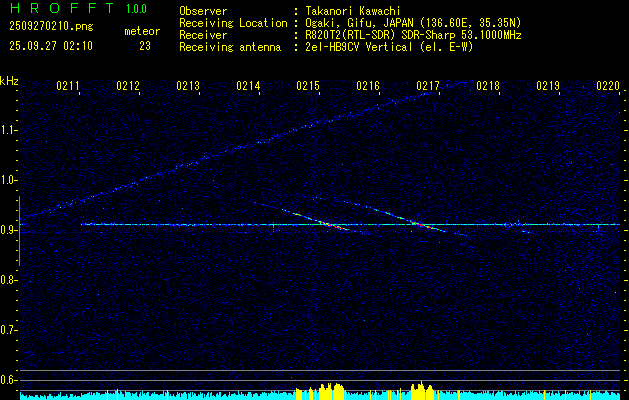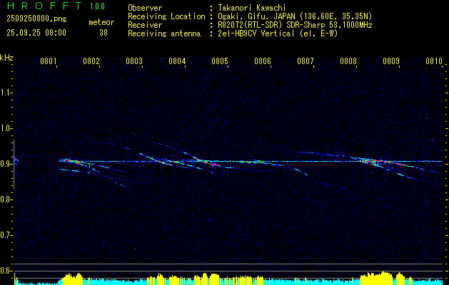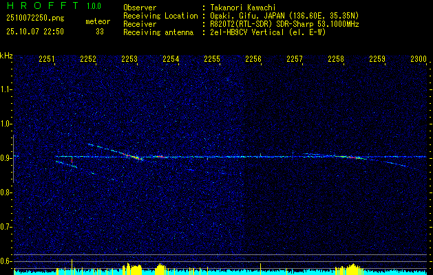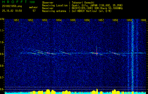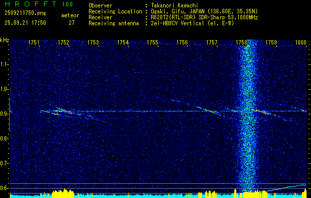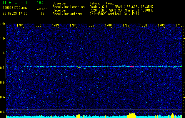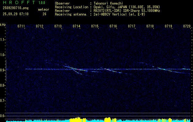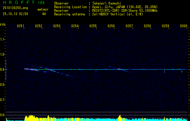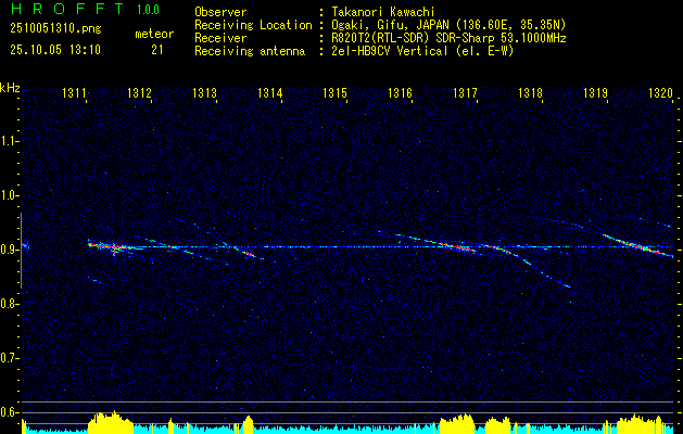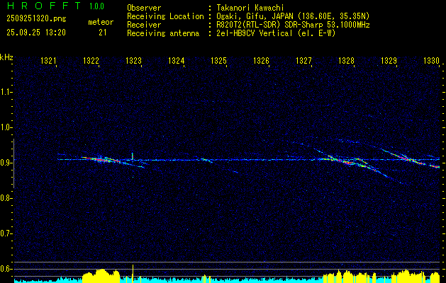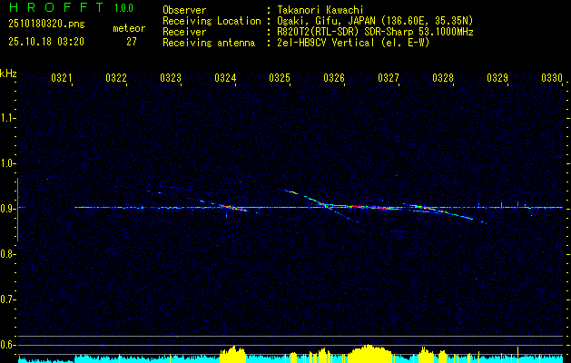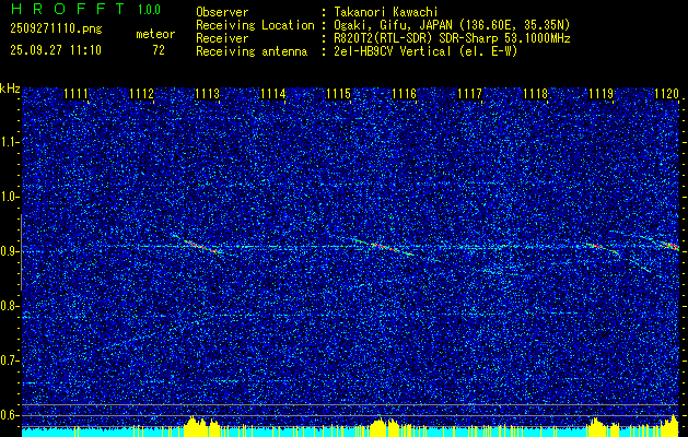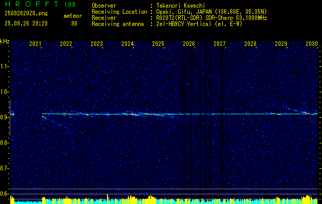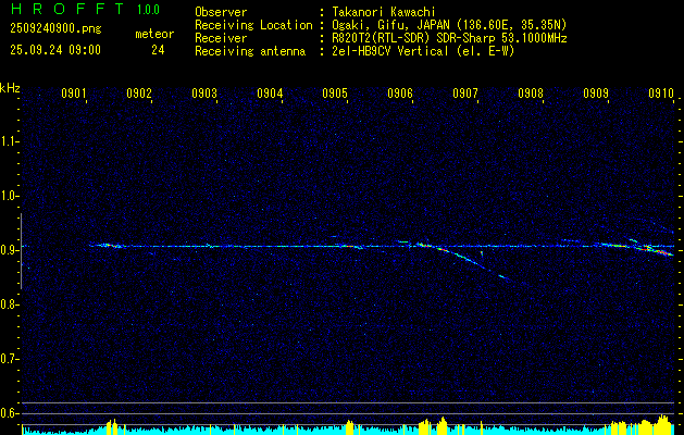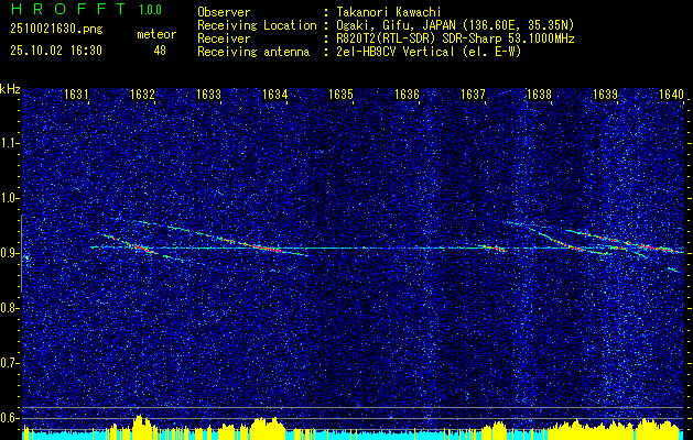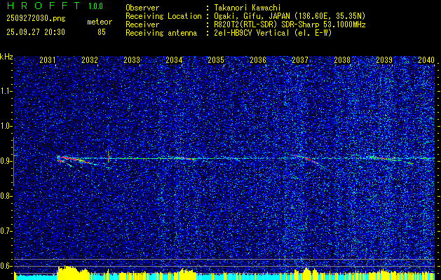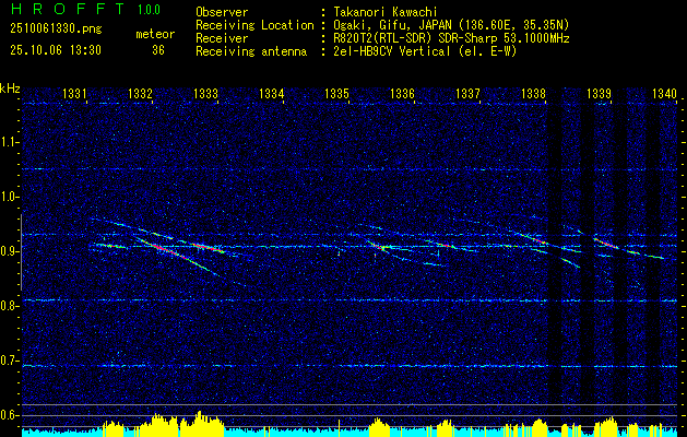 0.9kHz附近に発生している『点』または『塊』が流星によるエコーです.