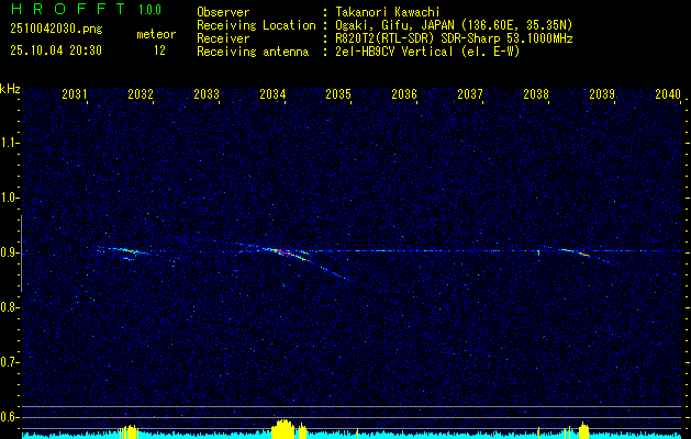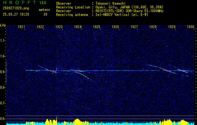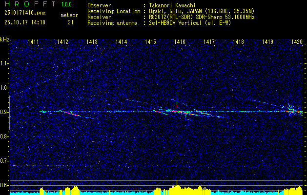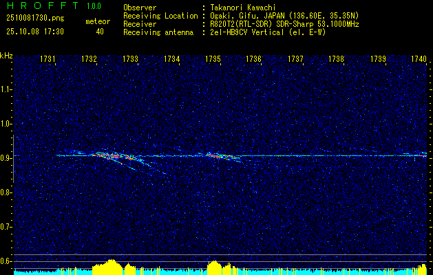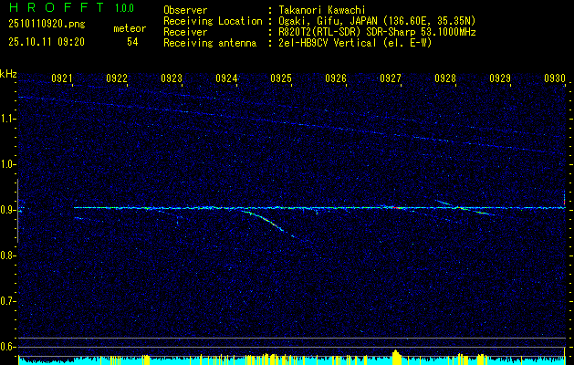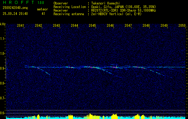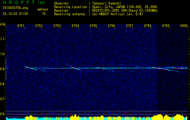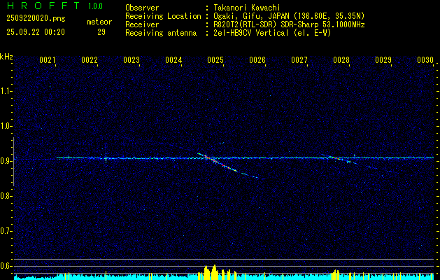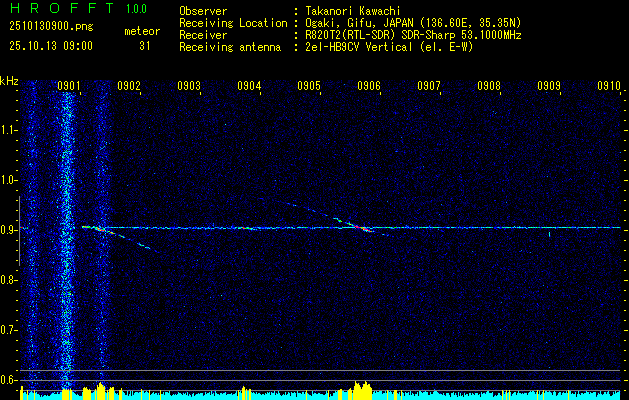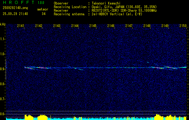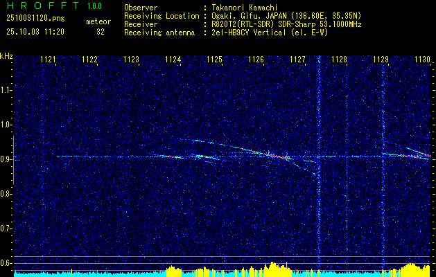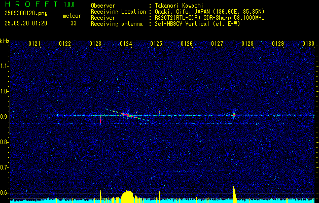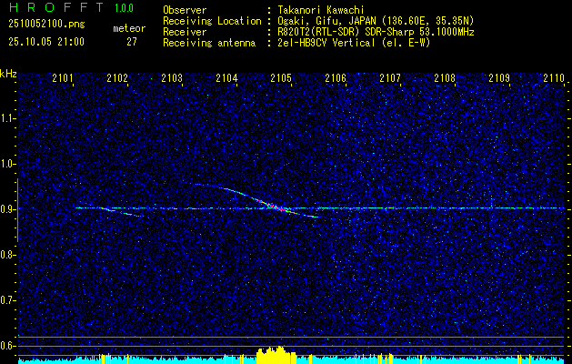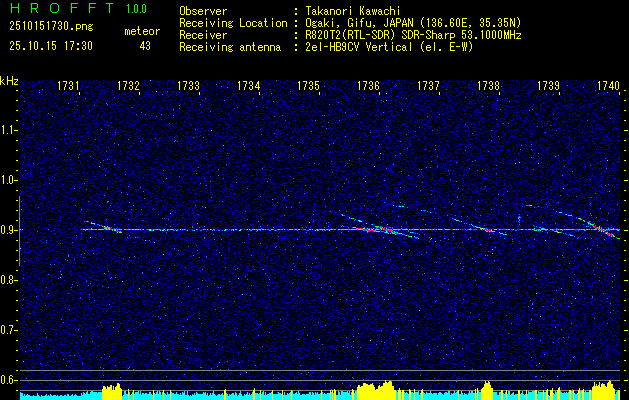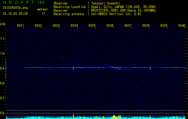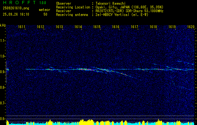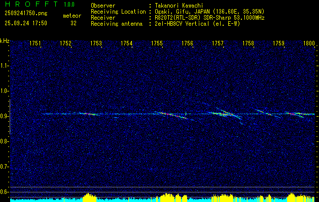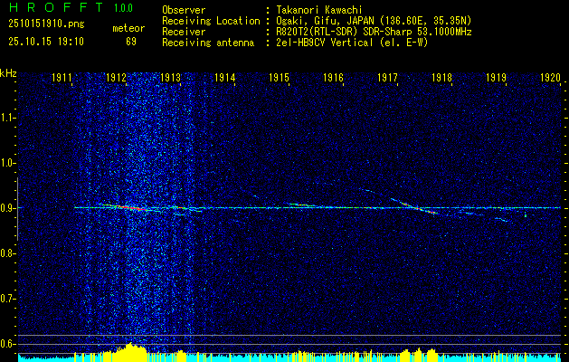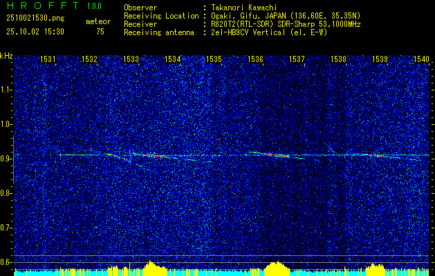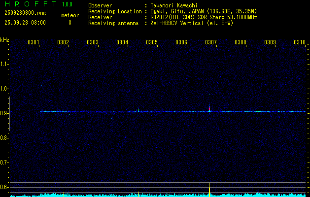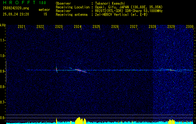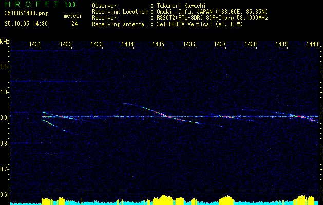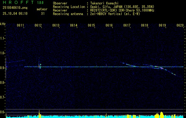 0.9kHz附近に発生している『点』または『塊』が流星によるエコーです.