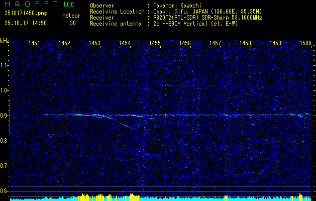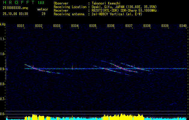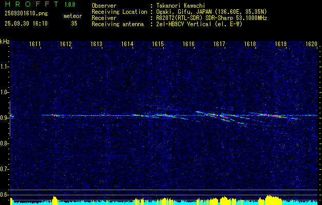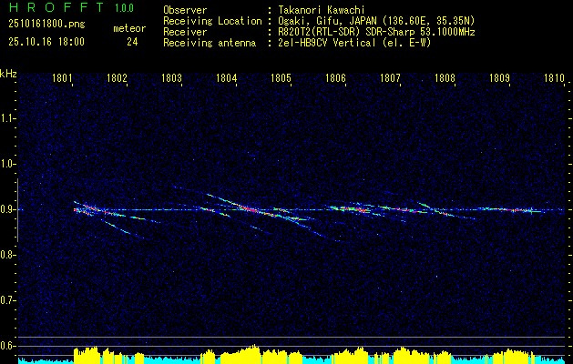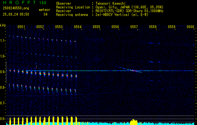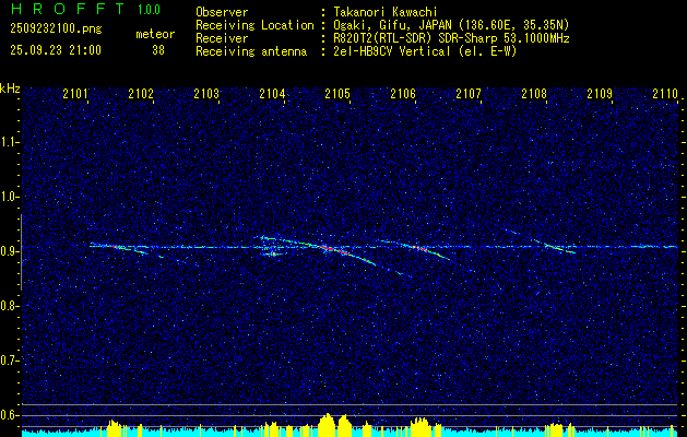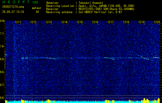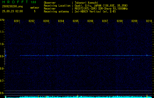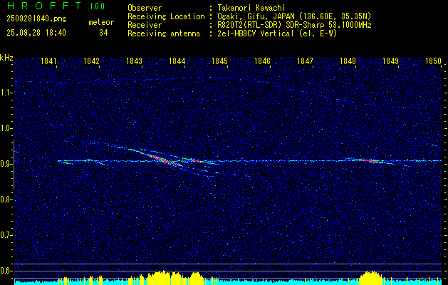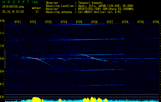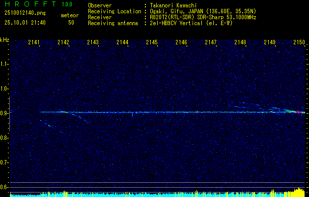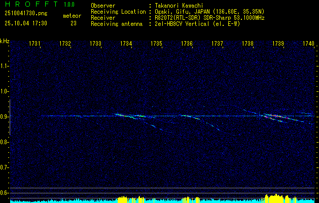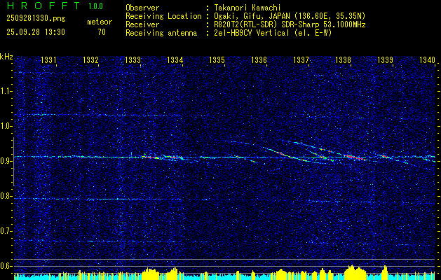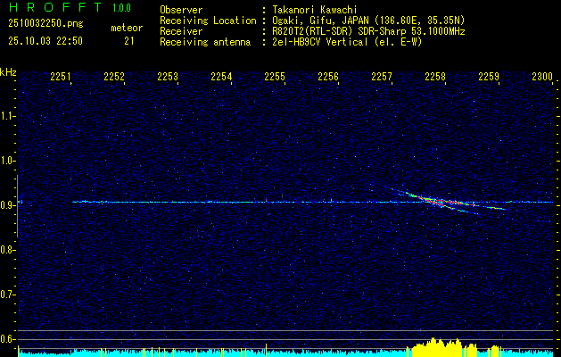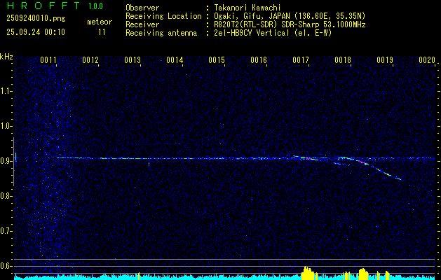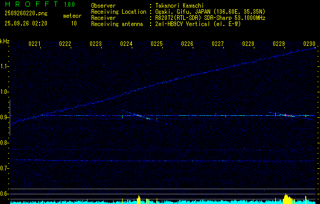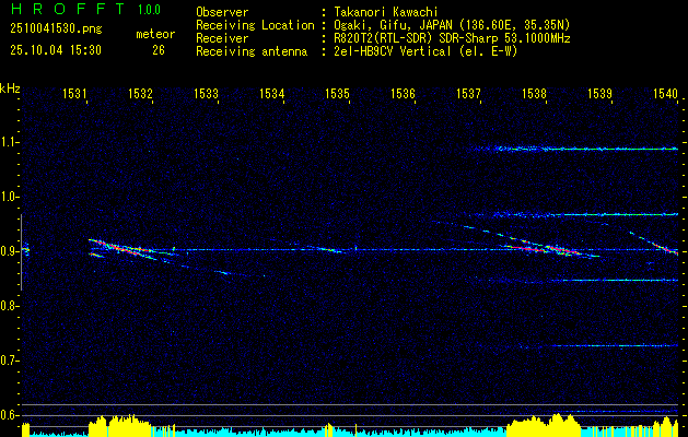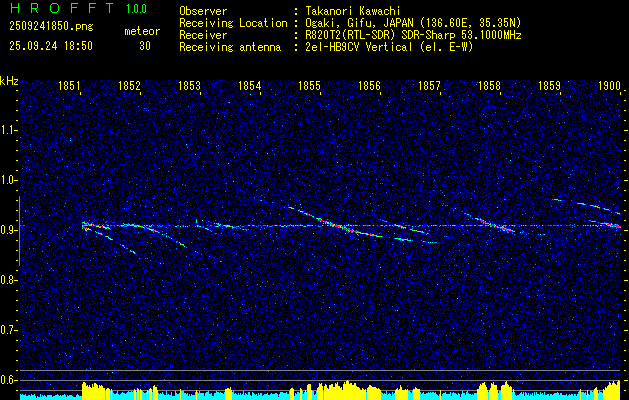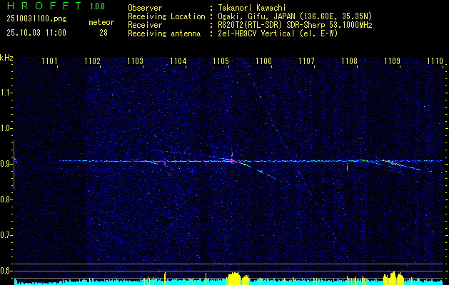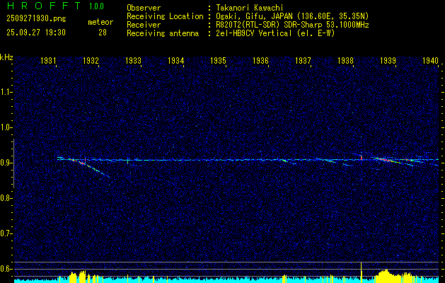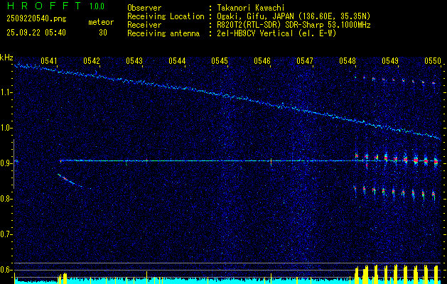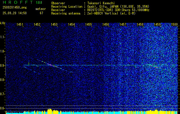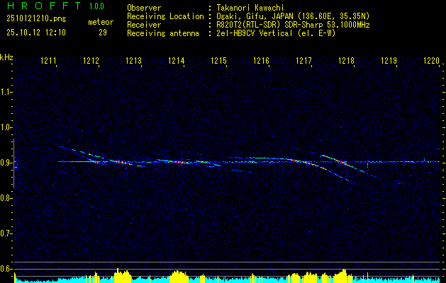 0.9kHz附近に発生している『点』または『塊』が流星によるエコーです.