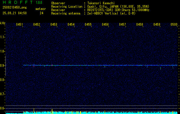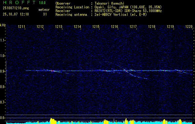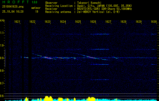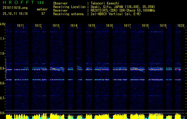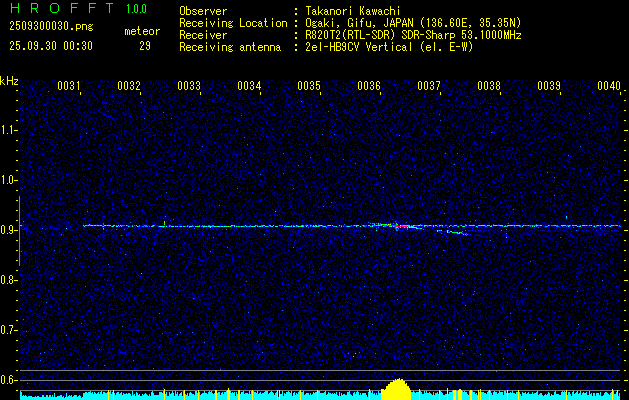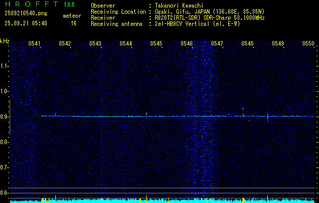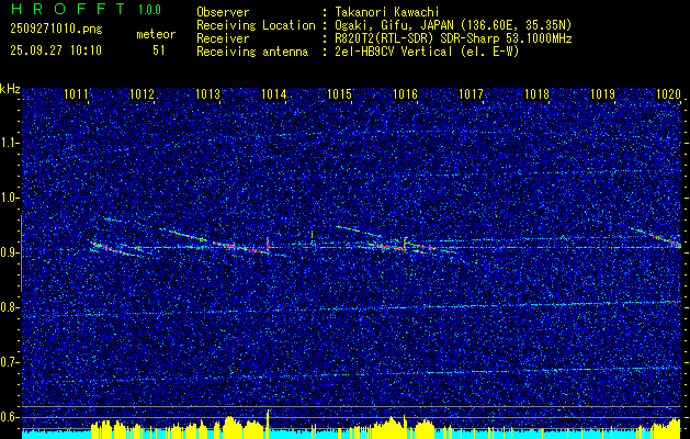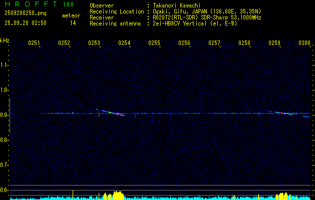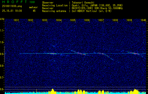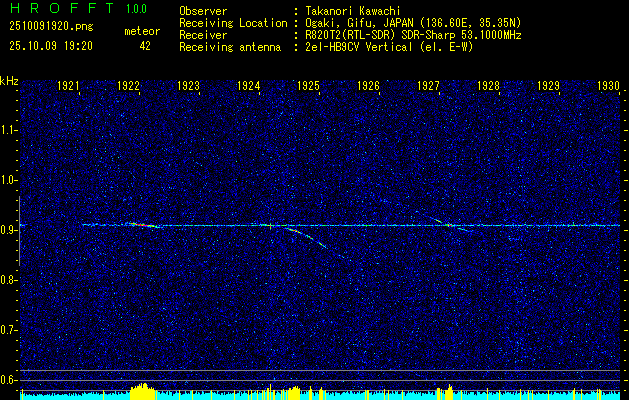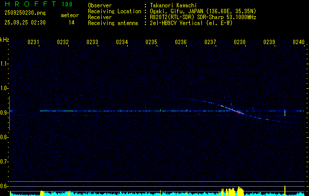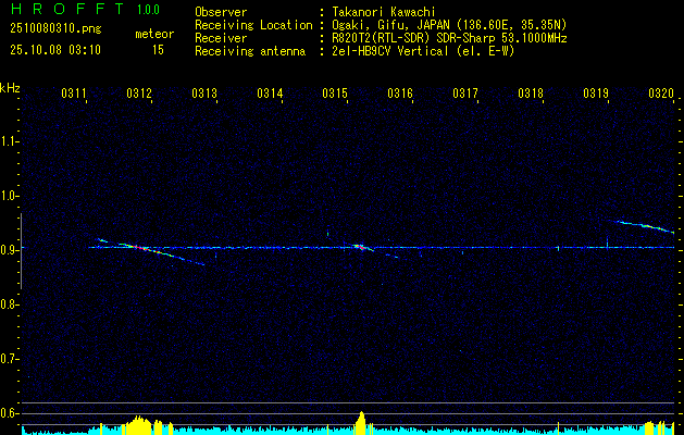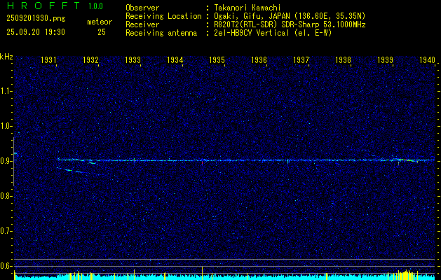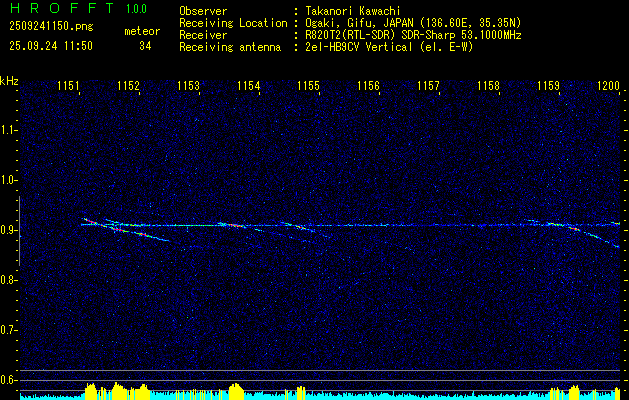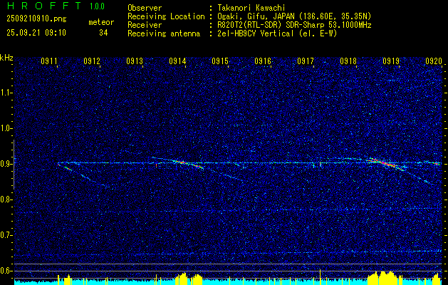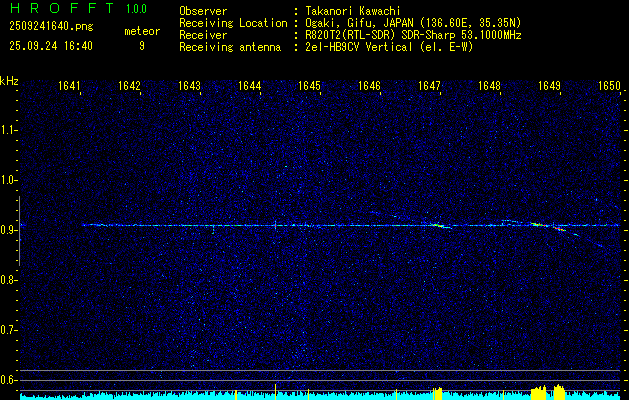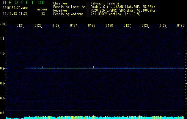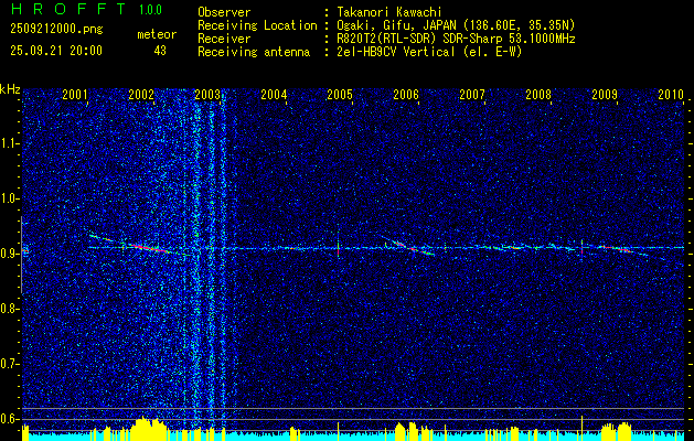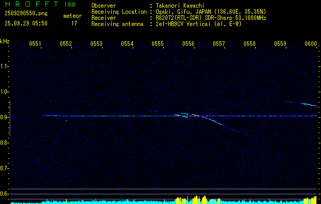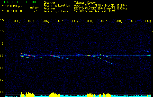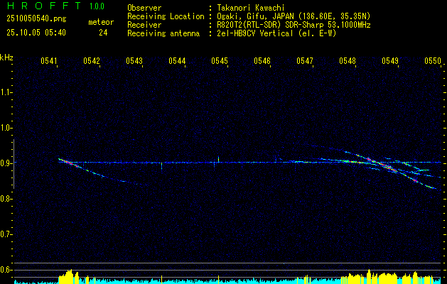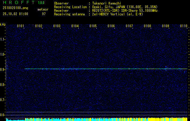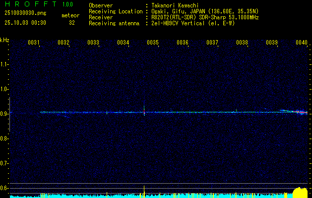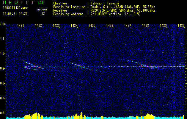 0.9kHz附近に発生している『点』または『塊』が流星によるエコーです.