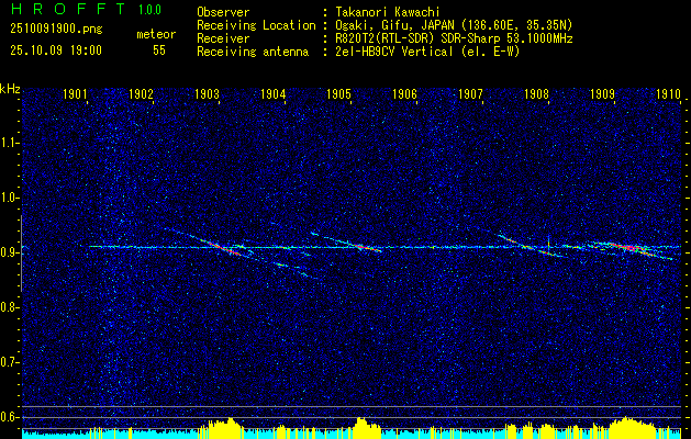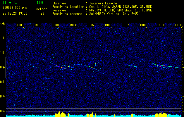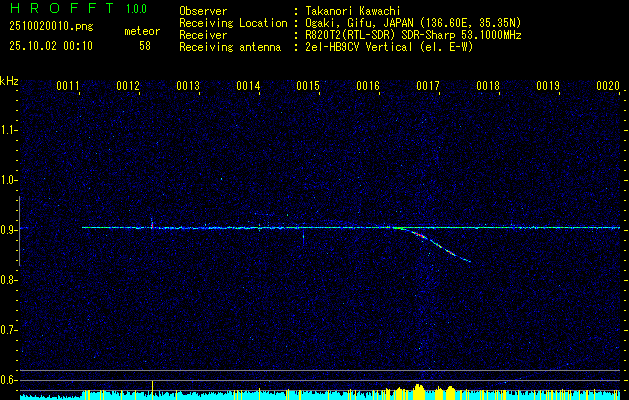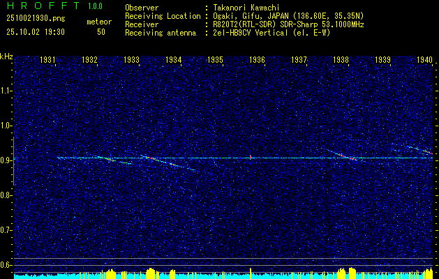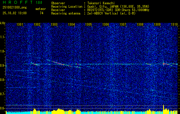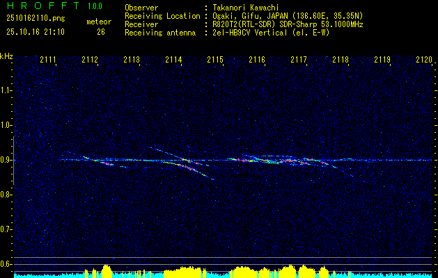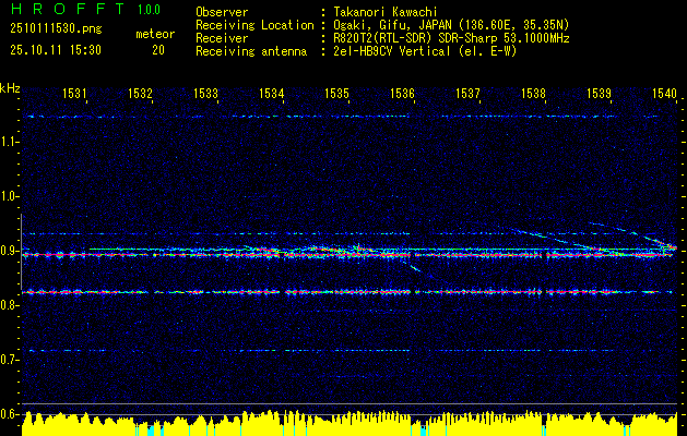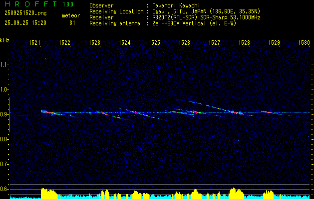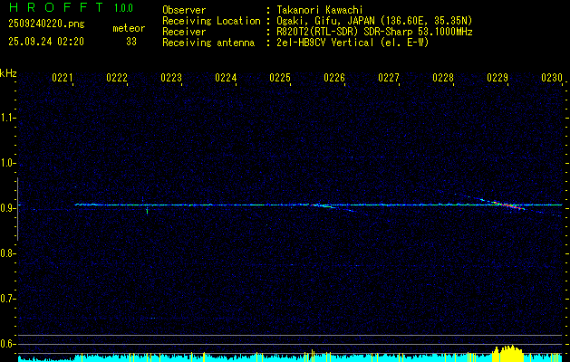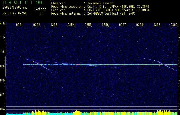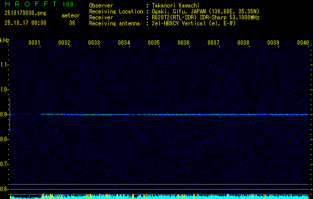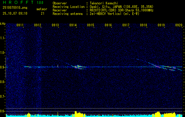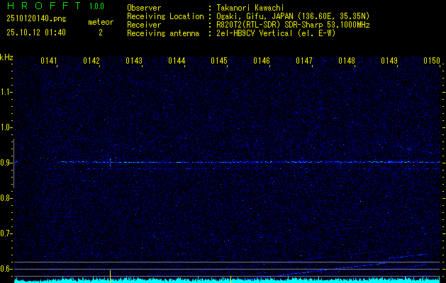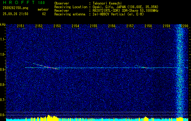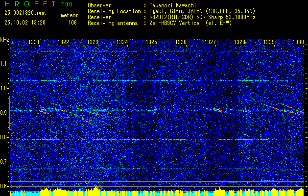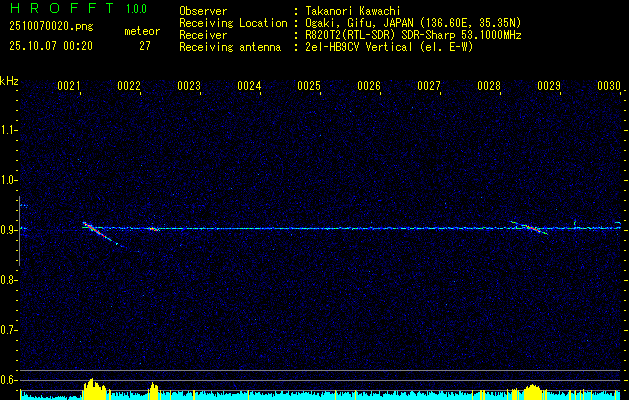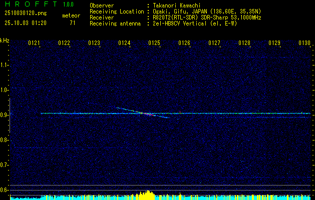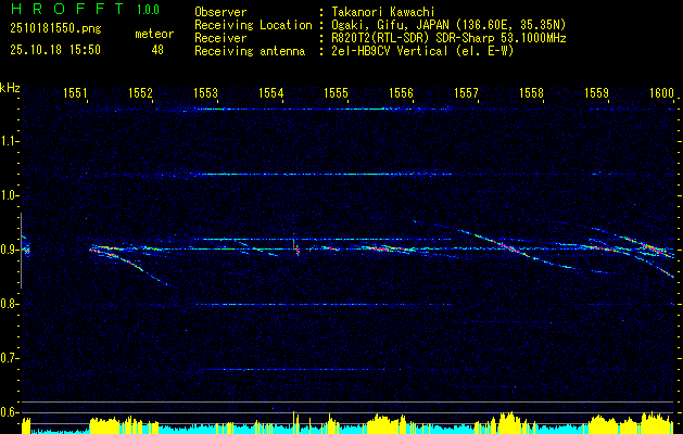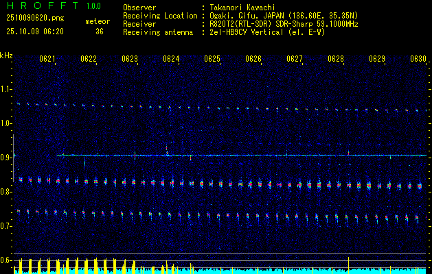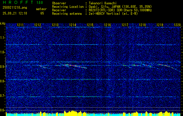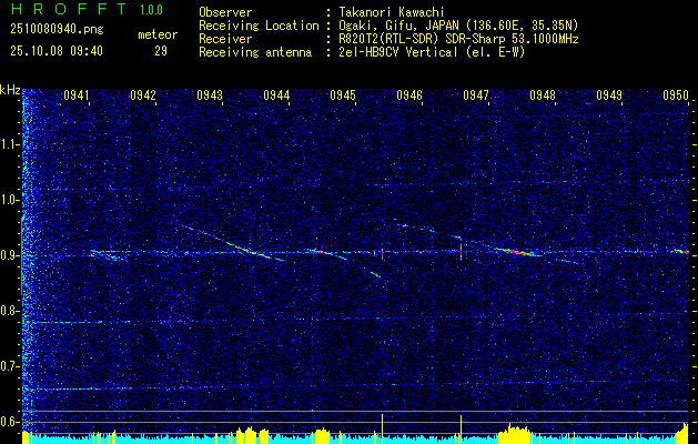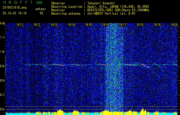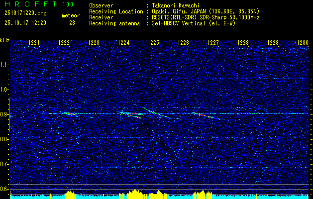 0.9kHz附近に発生している『点』または『塊』が流星によるエコーです.