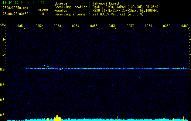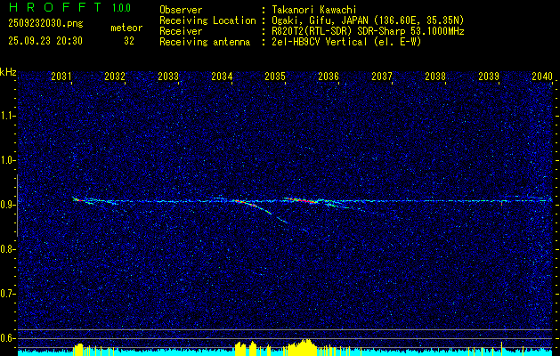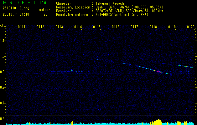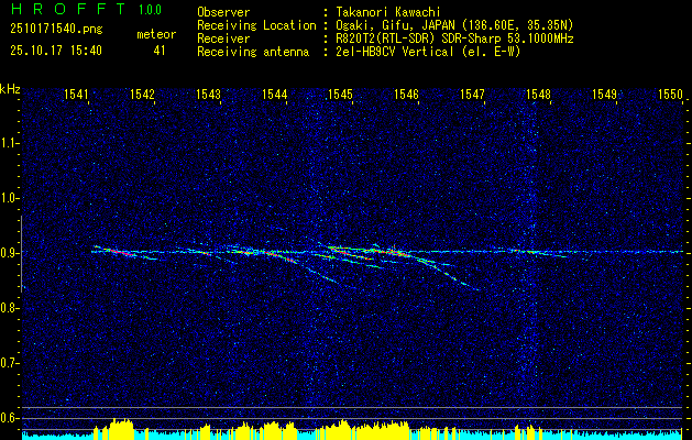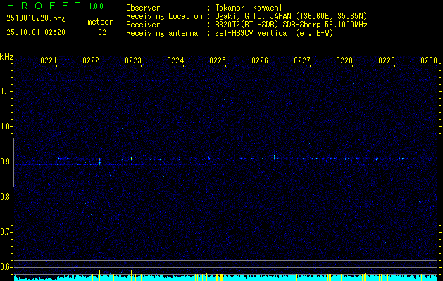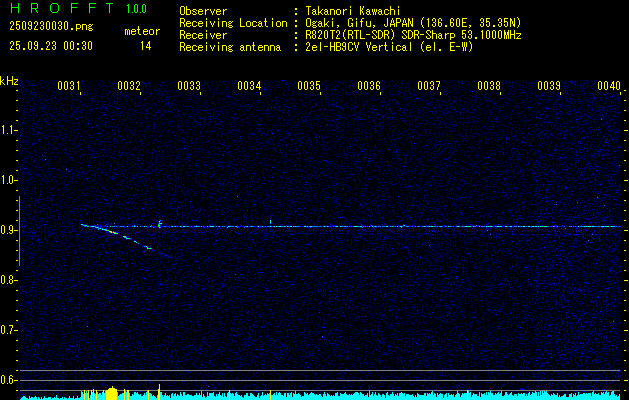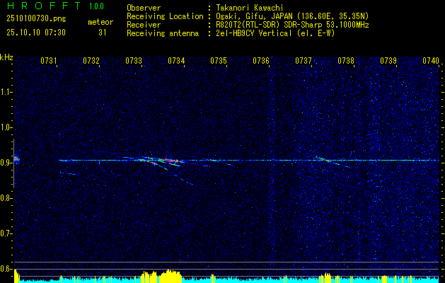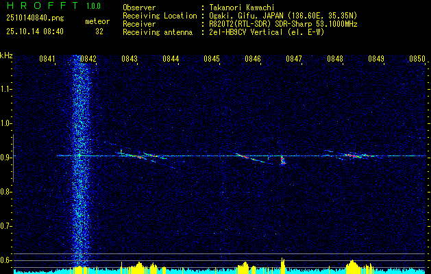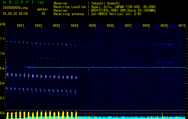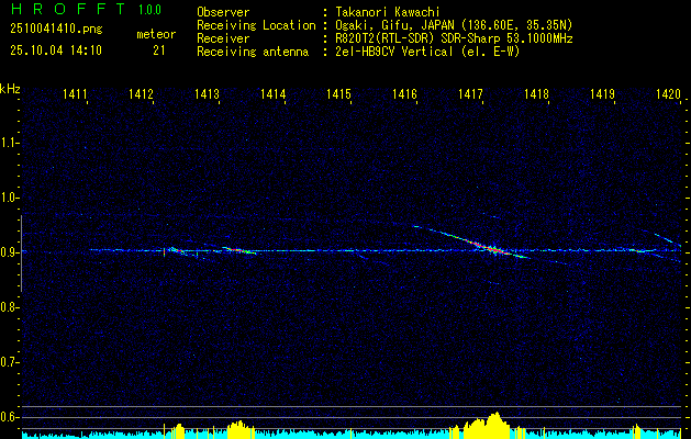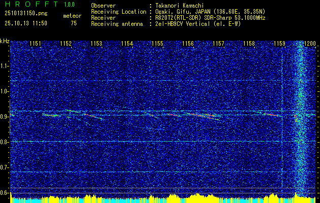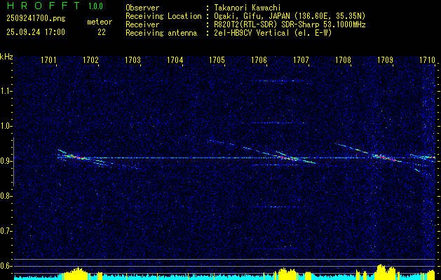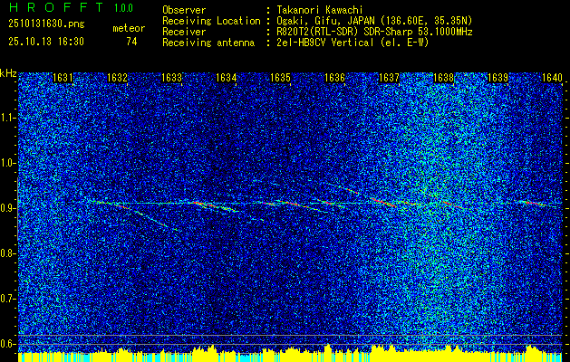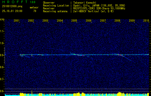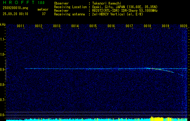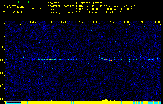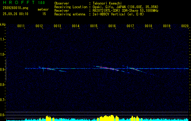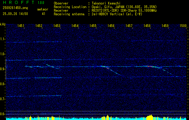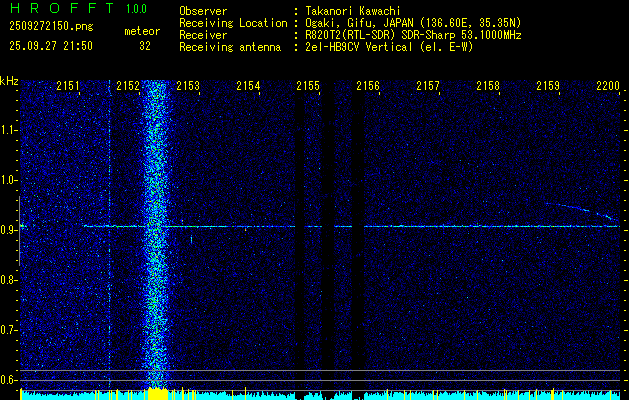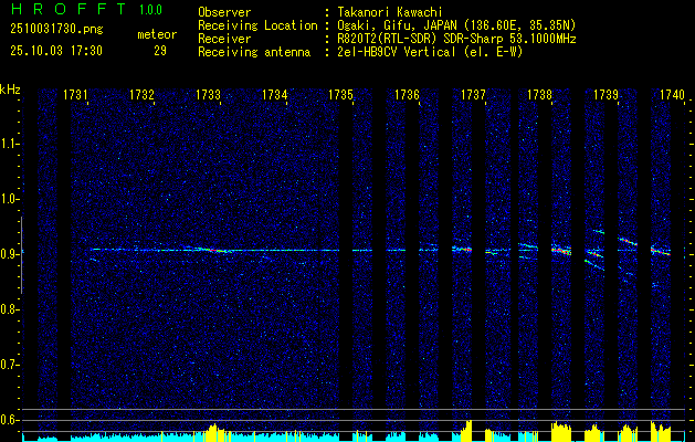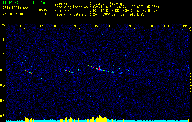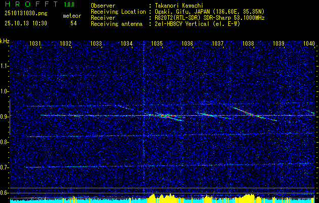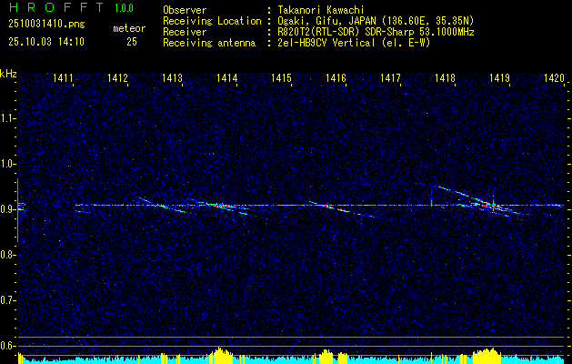 0.9kHz附近に発生している『点』または『塊』が流星によるエコーです.