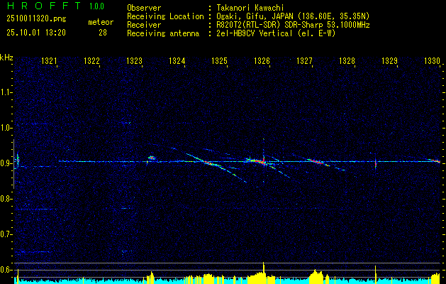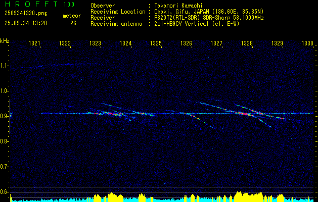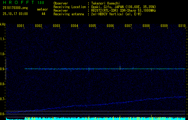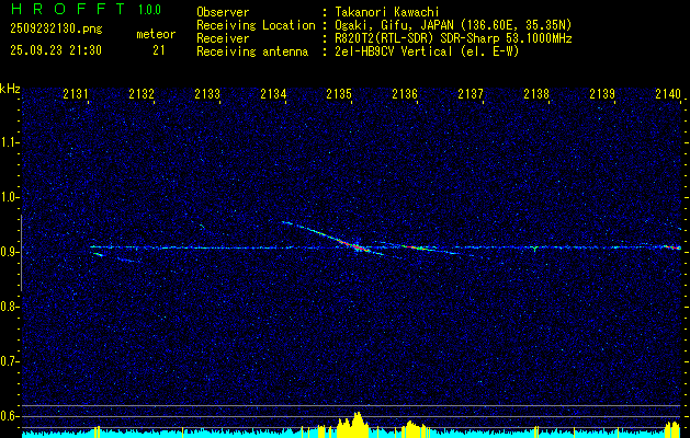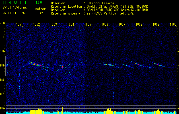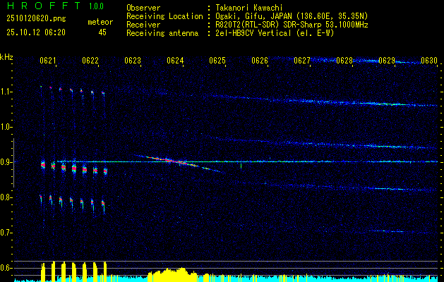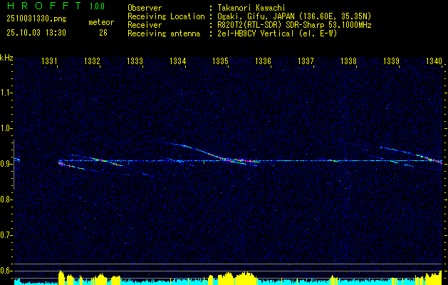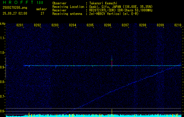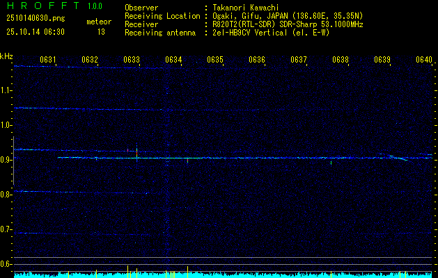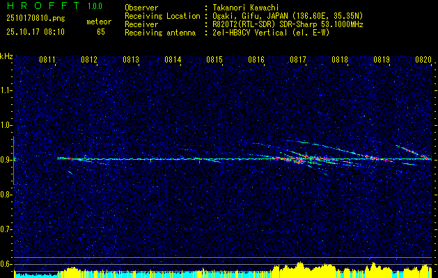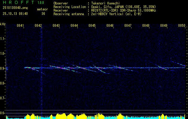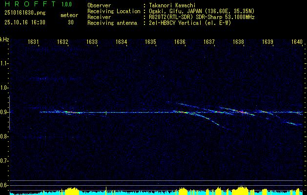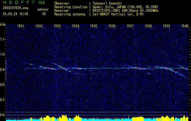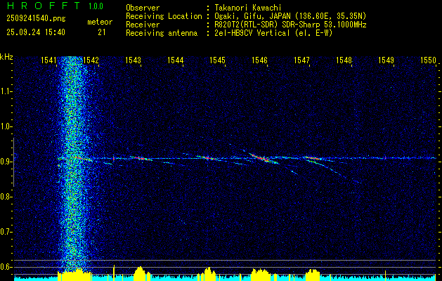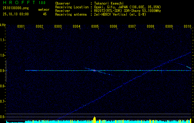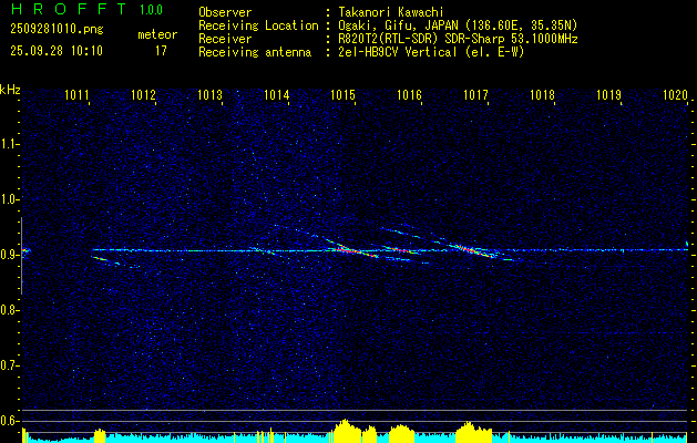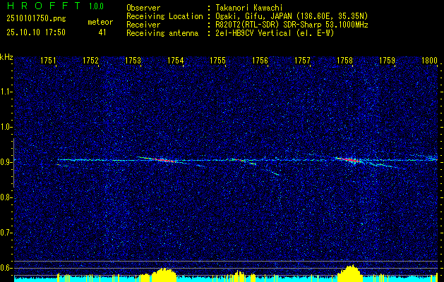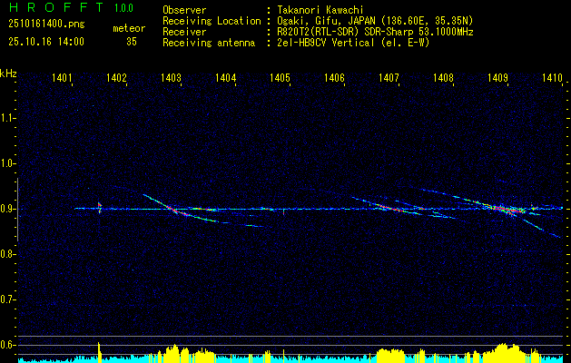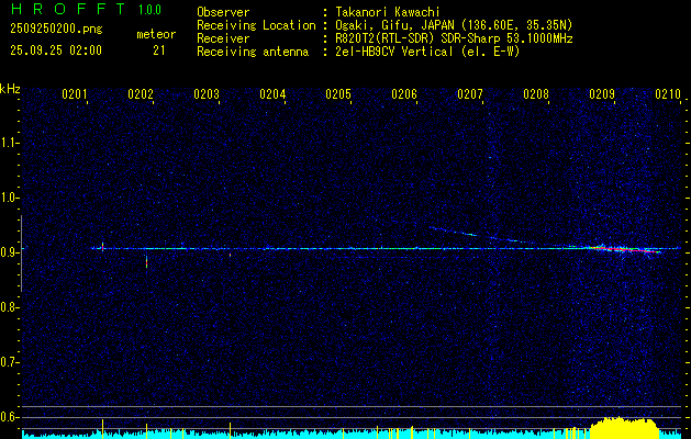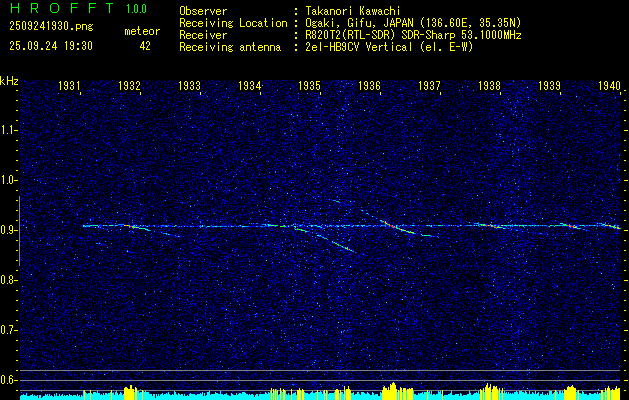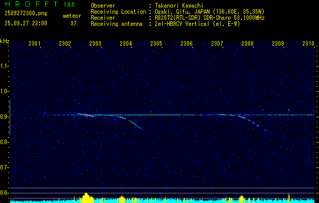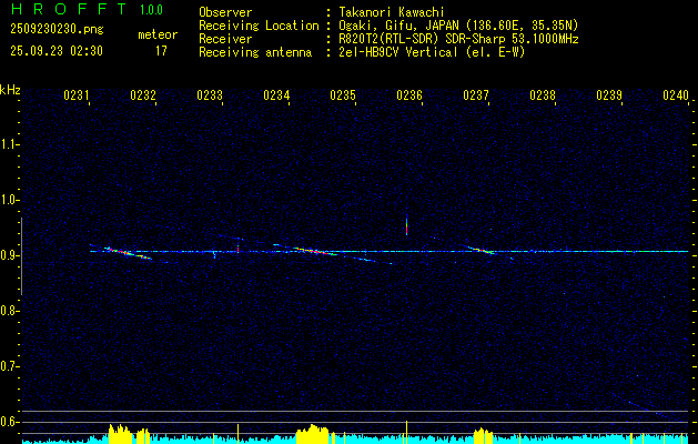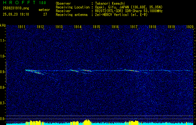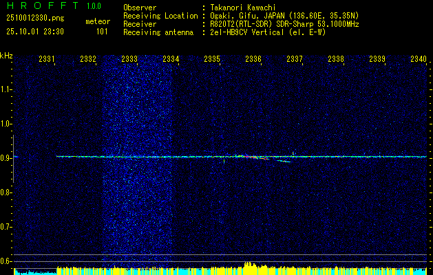 0.9kHz附近に発生している『点』または『塊』が流星によるエコーです.