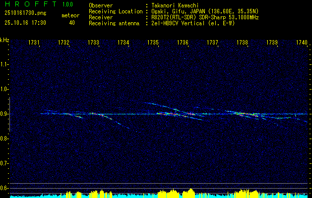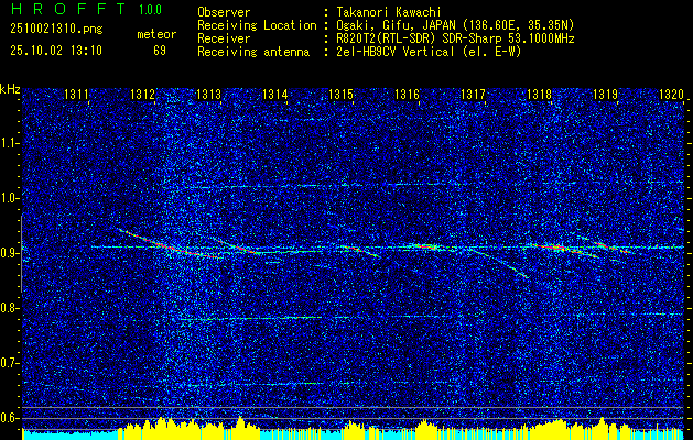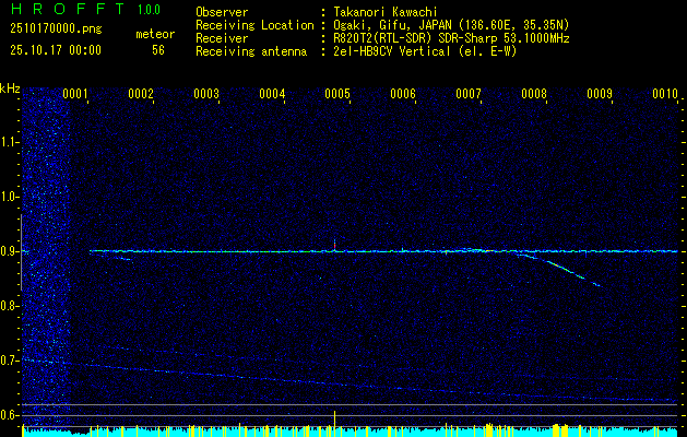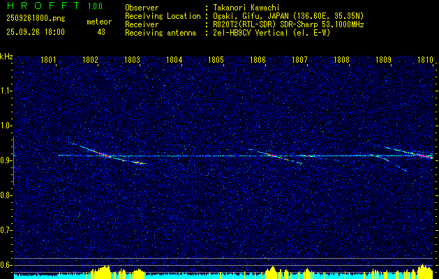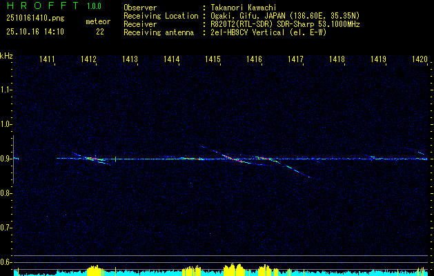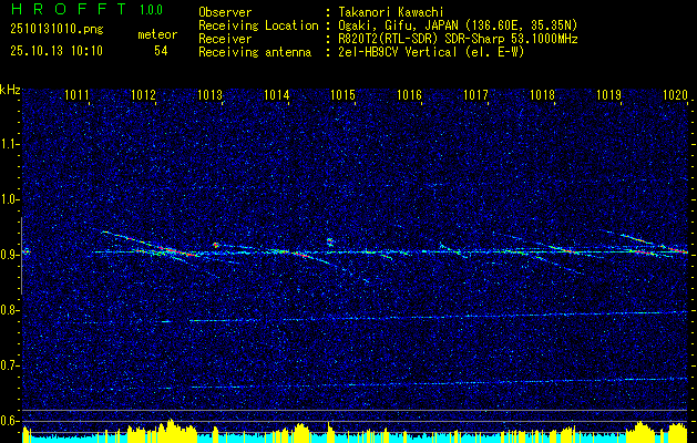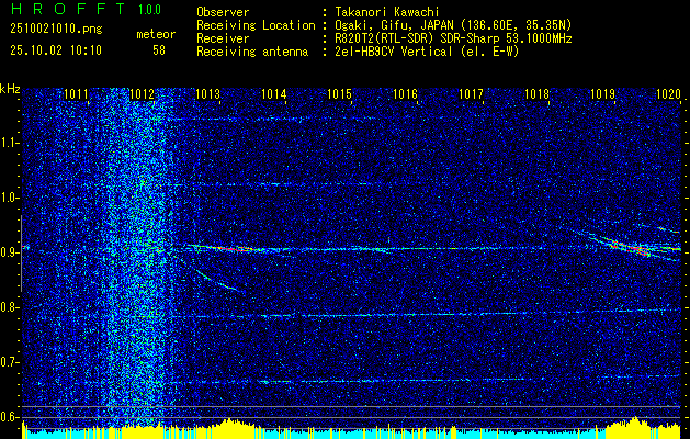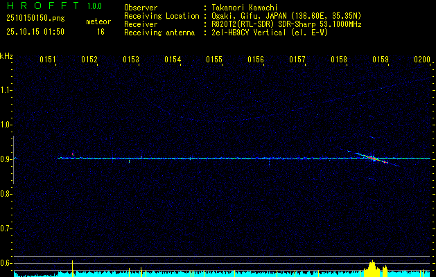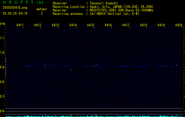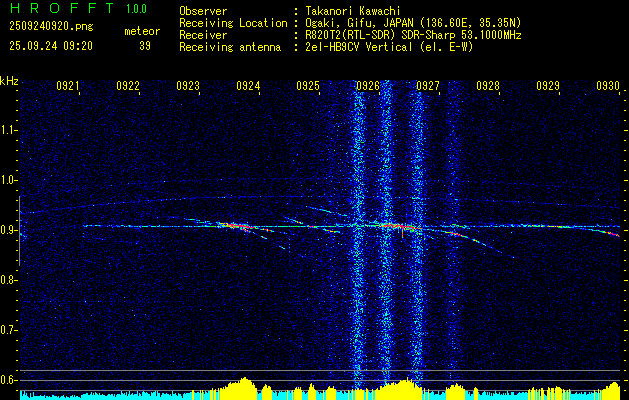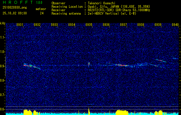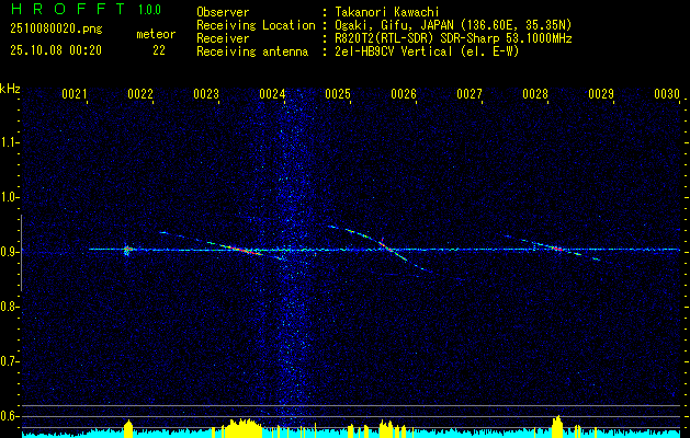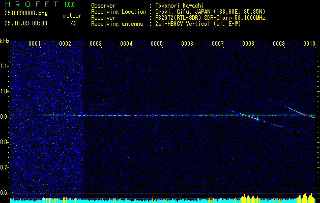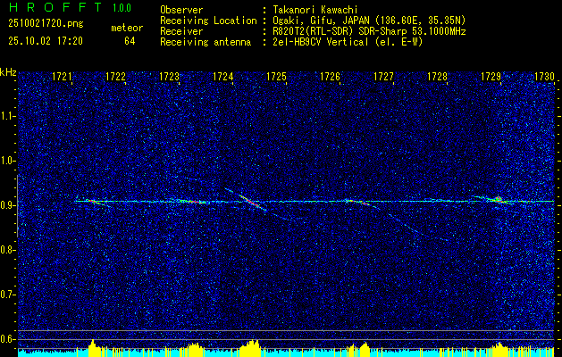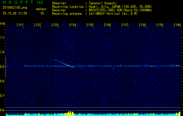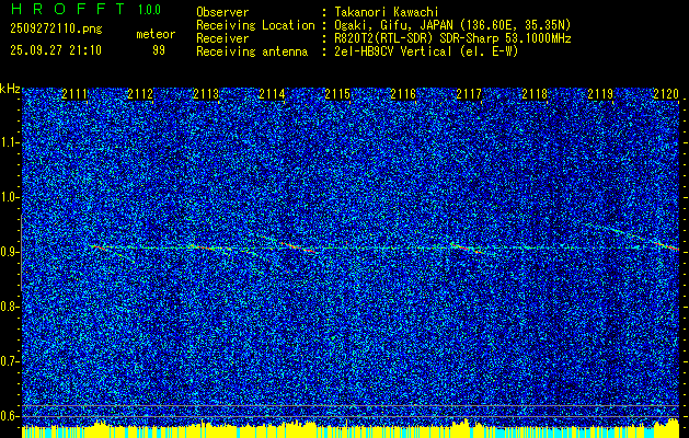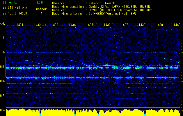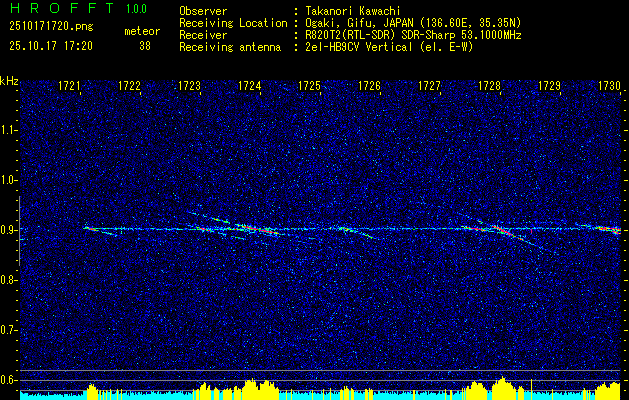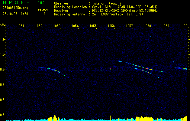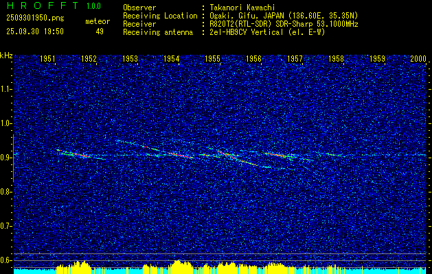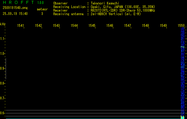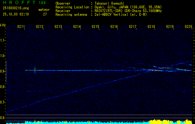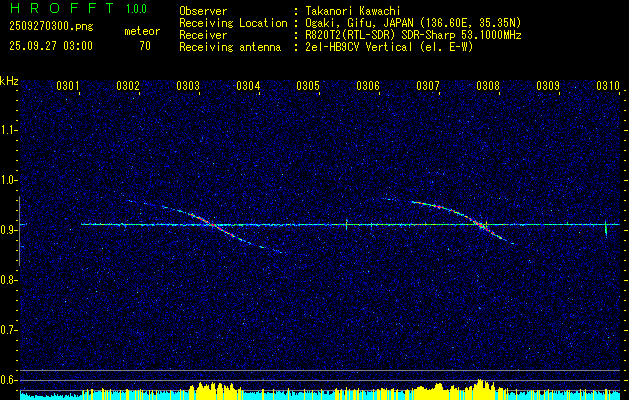 0.9kHz附近に発生している『点』または『塊』が流星によるエコーです.