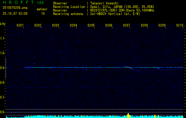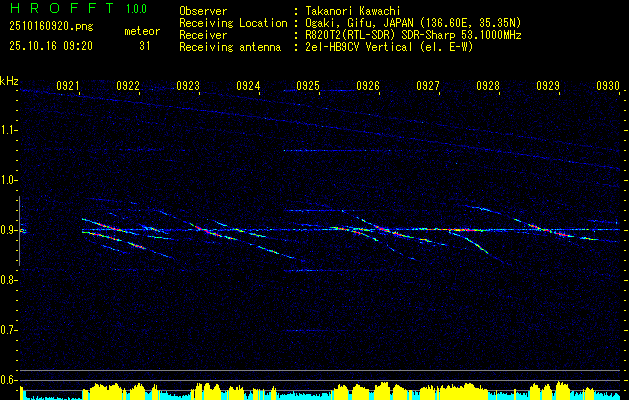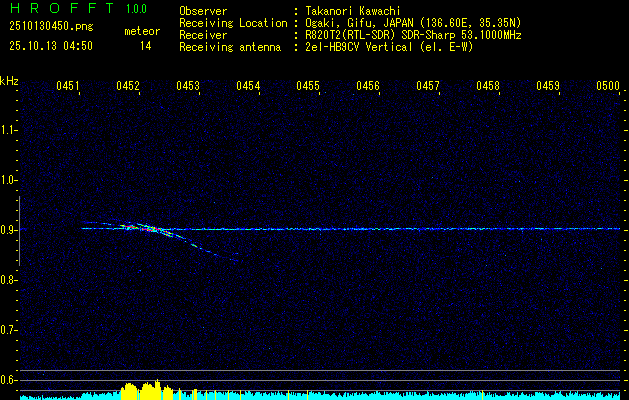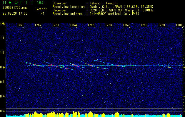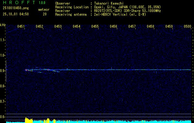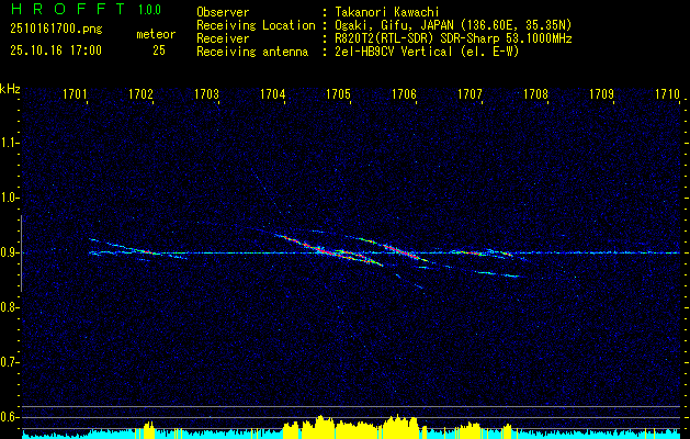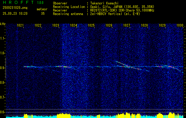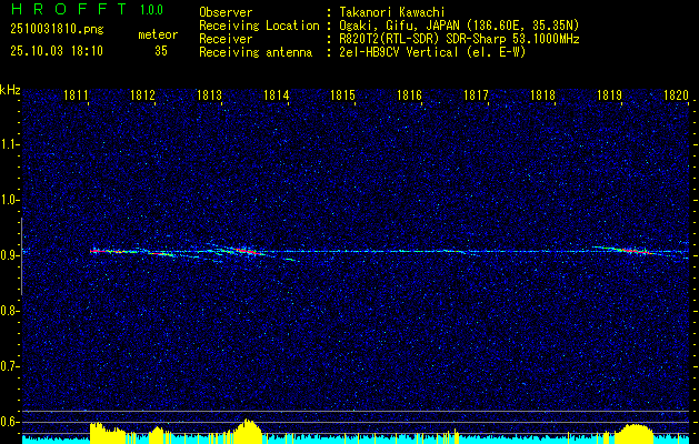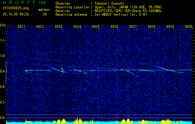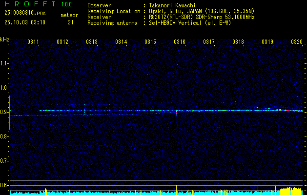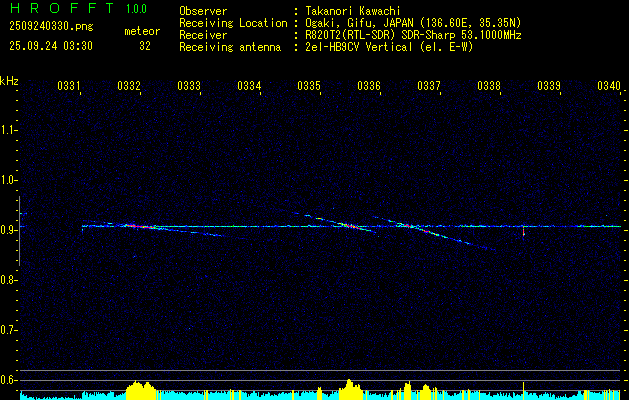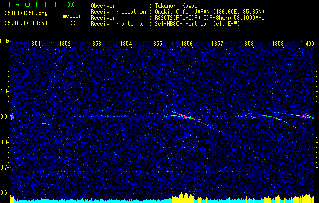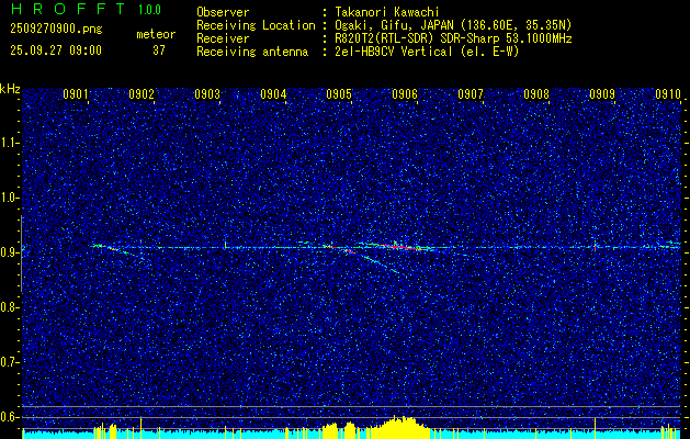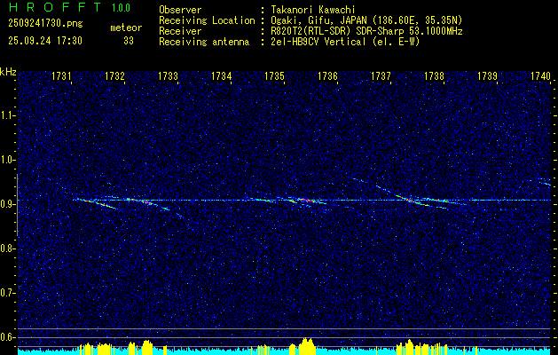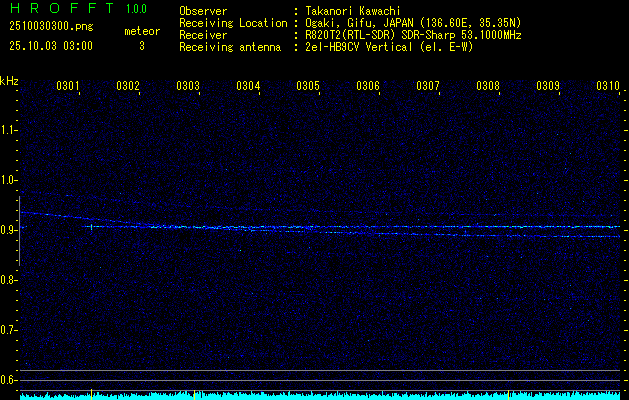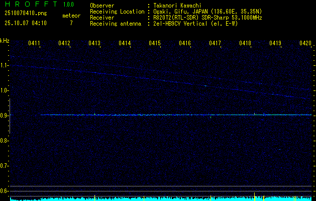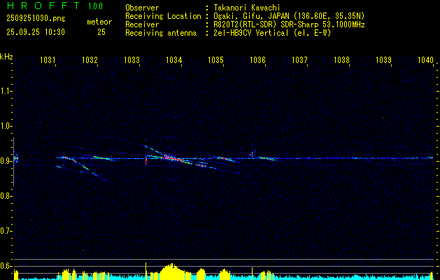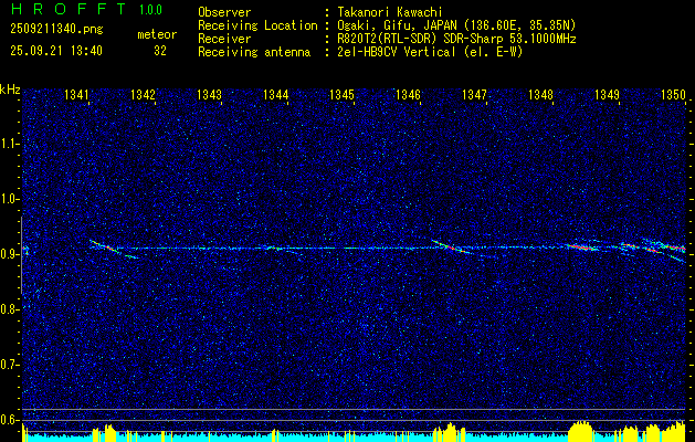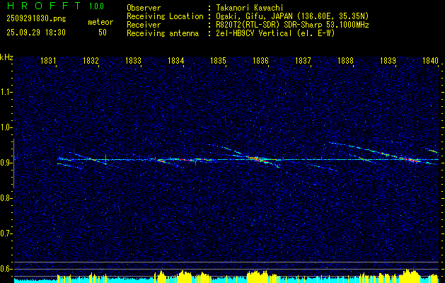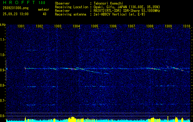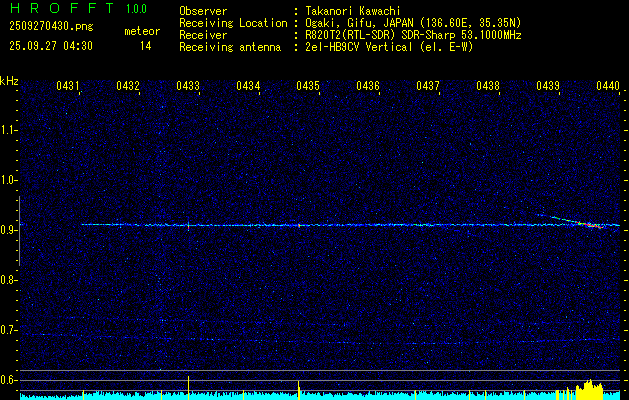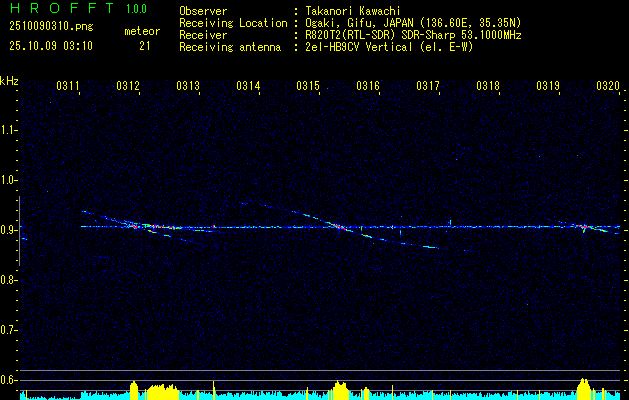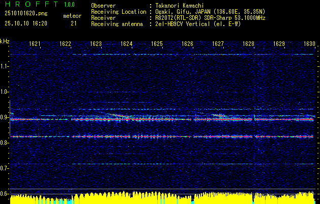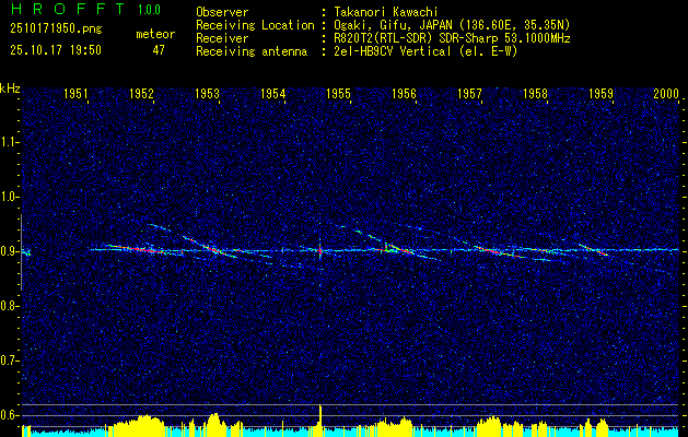 0.9kHz附近に発生している『点』または『塊』が流星によるエコーです.