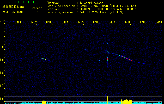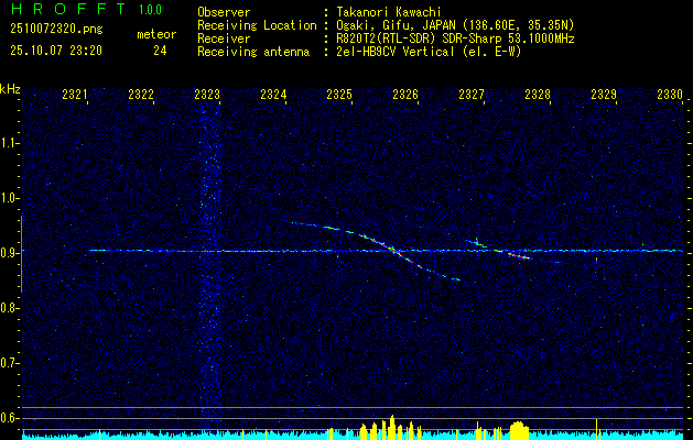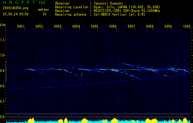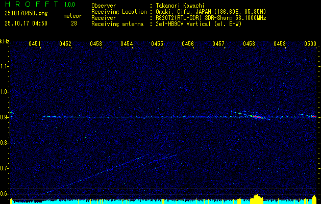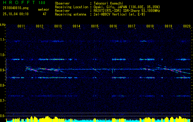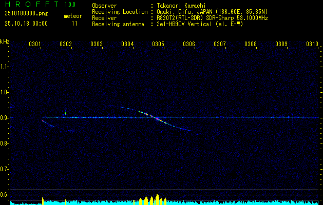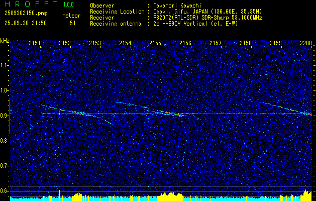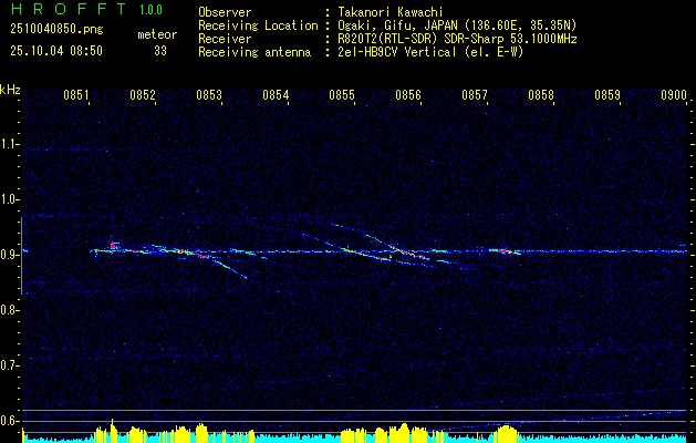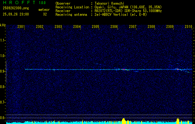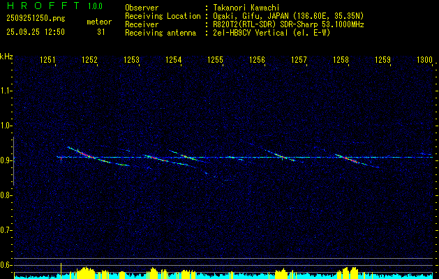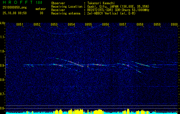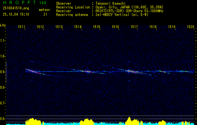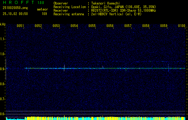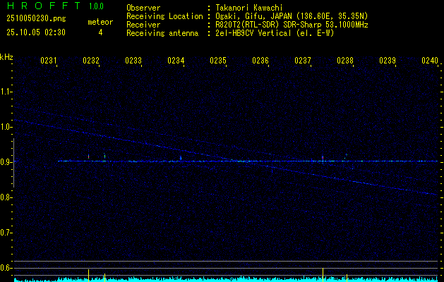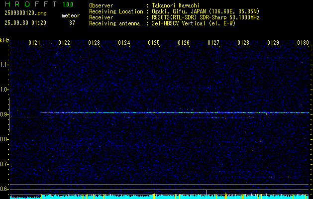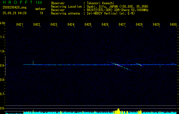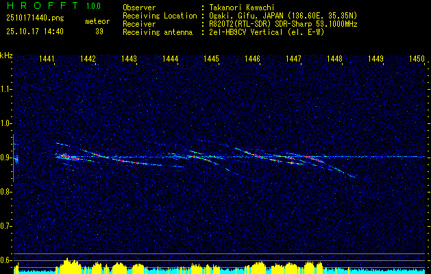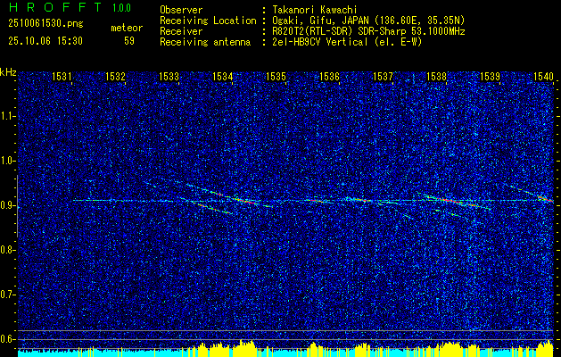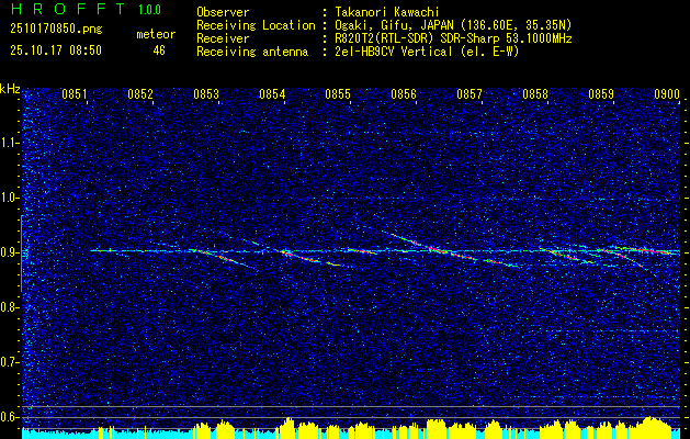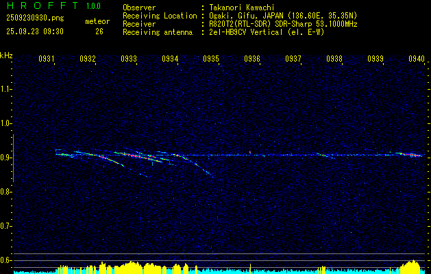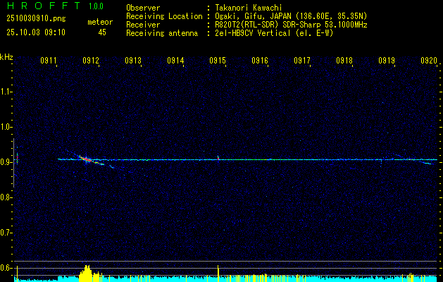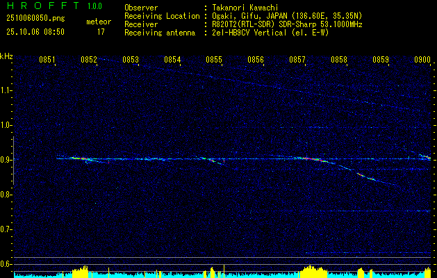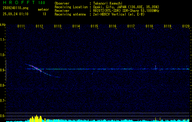 0.9kHz附近に発生している『点』または『塊』が流星によるエコーです.