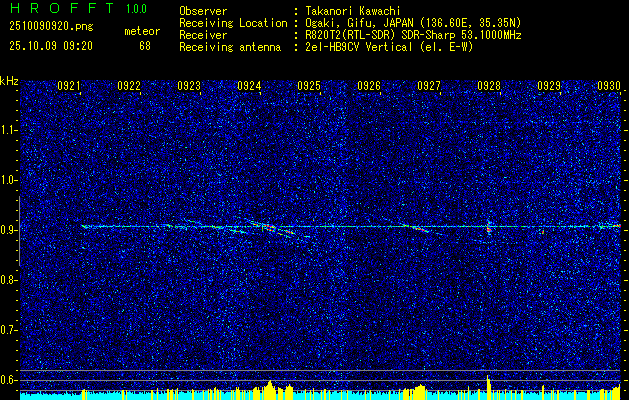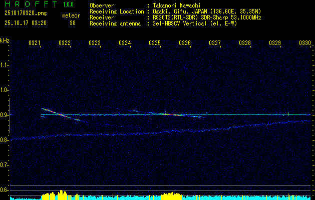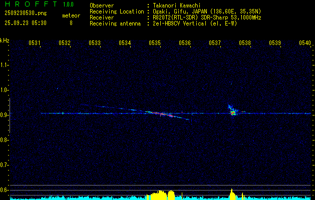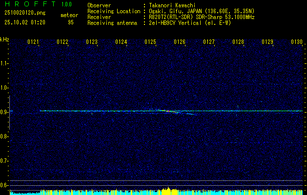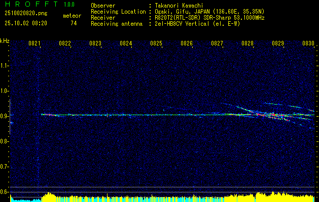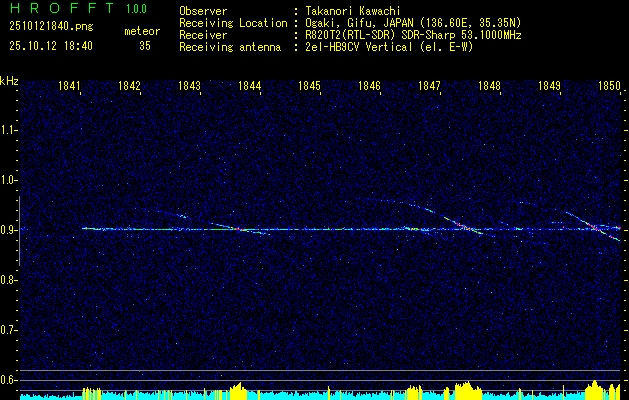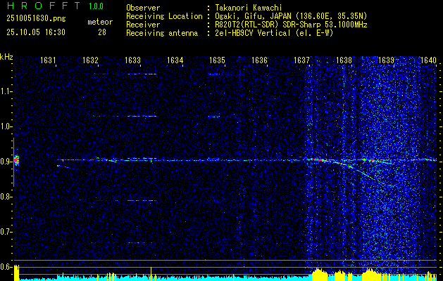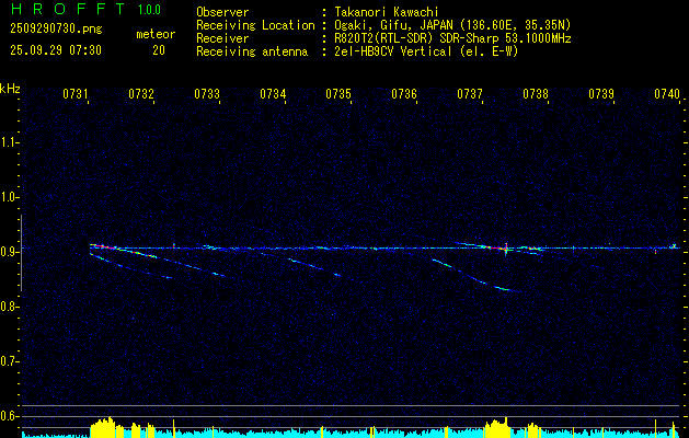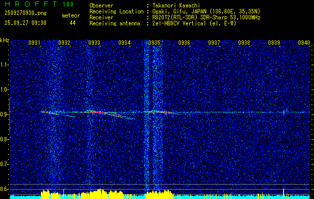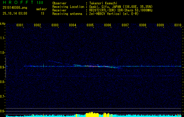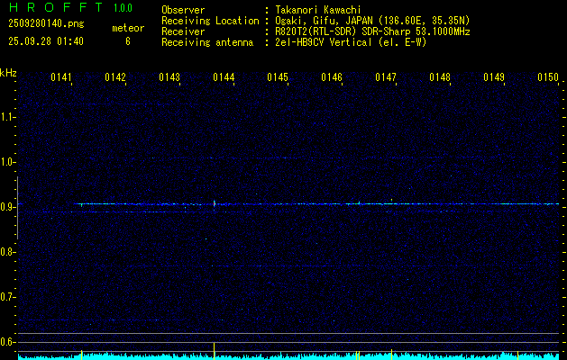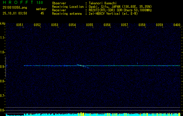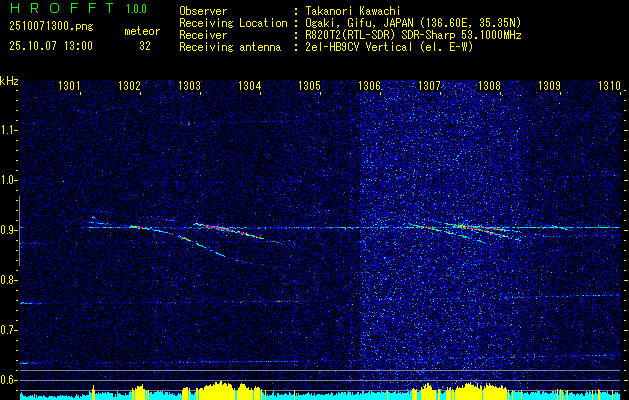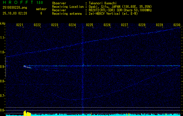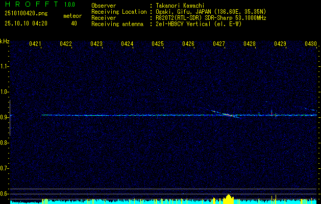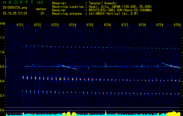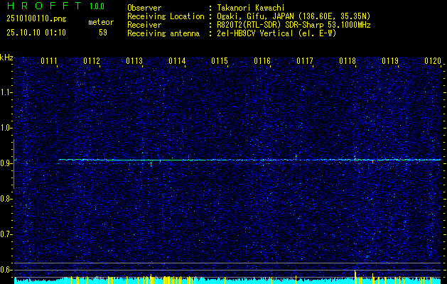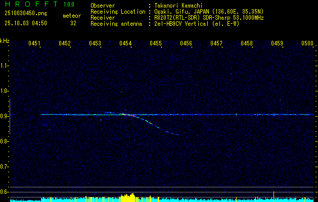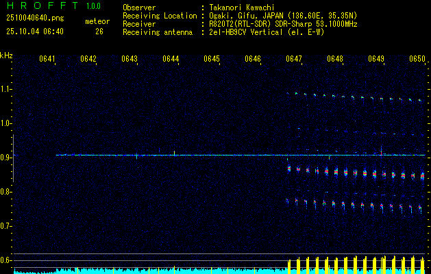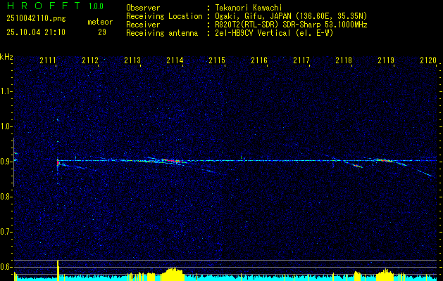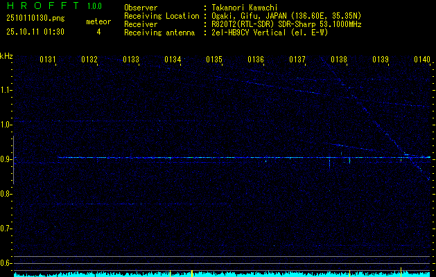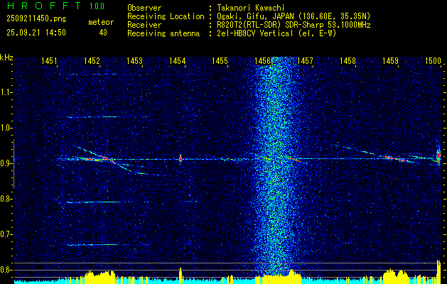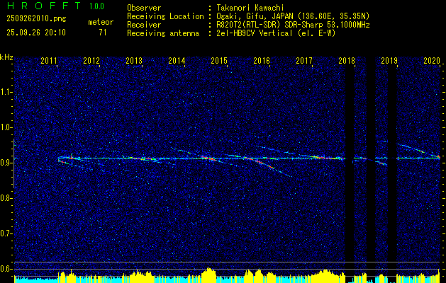 0.9kHz附近に発生している『点』または『塊』が流星によるエコーです.
