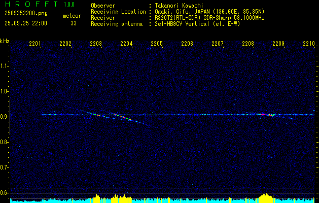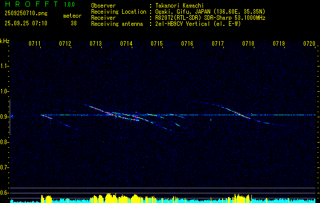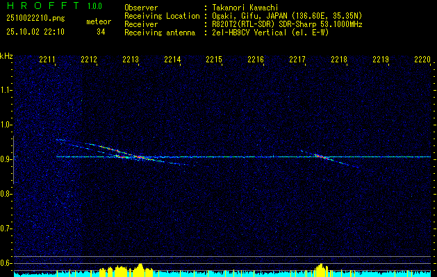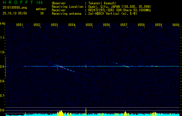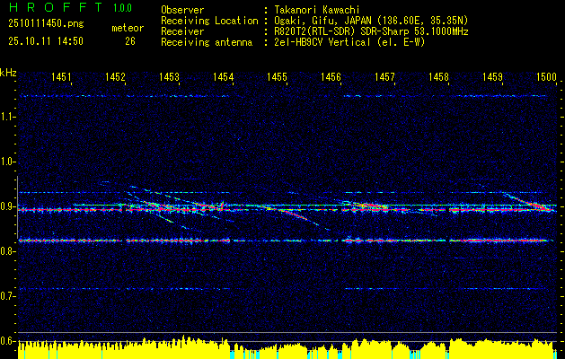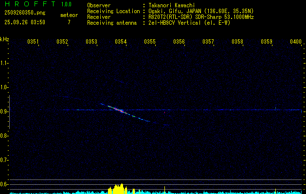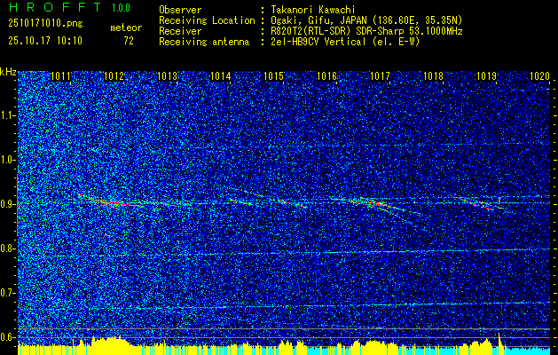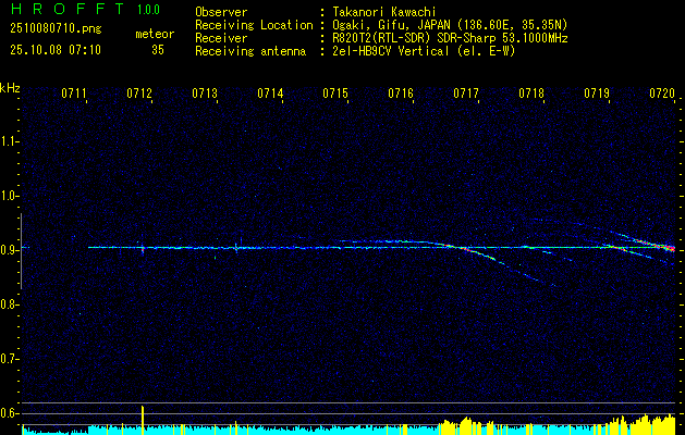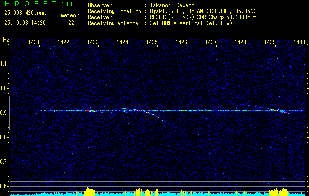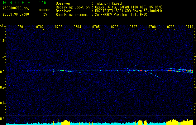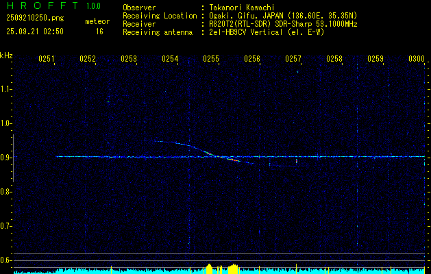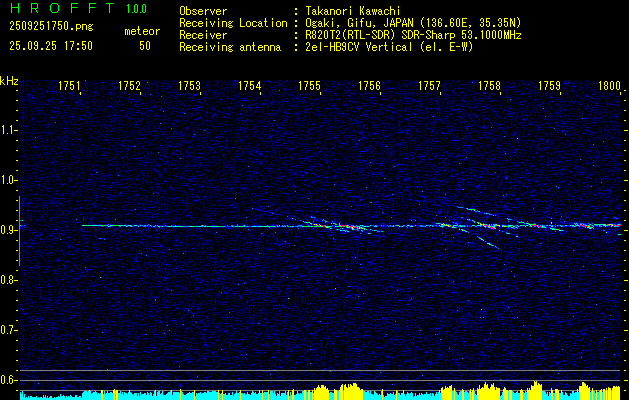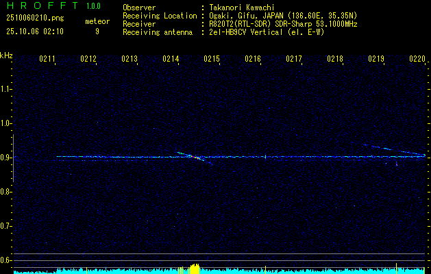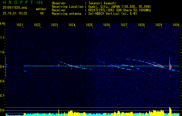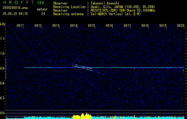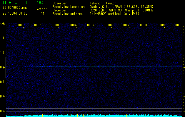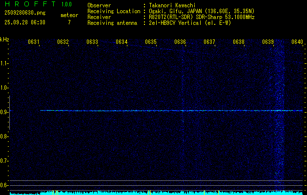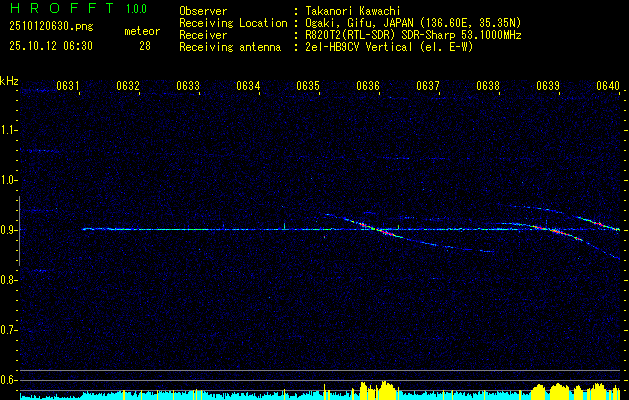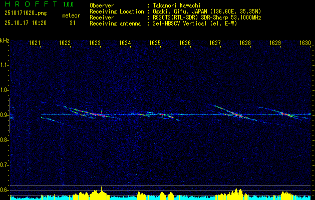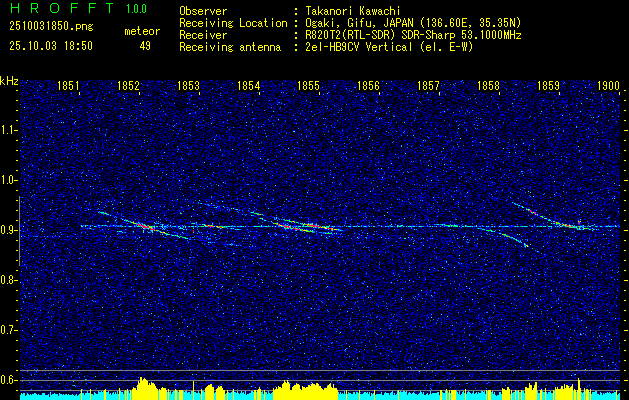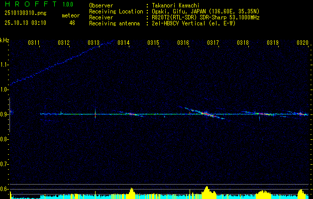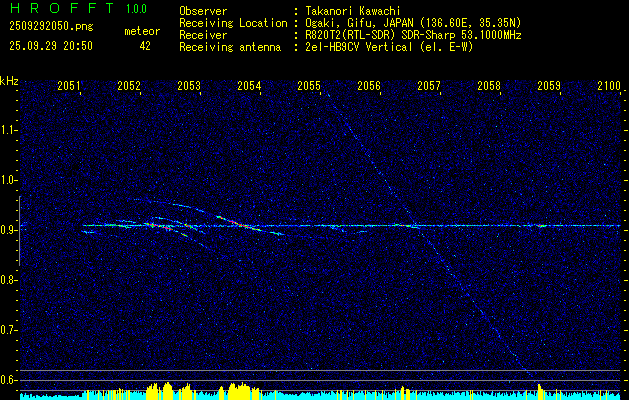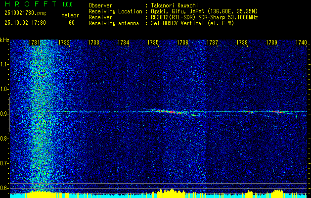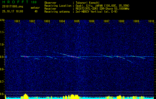 0.9kHz附近に発生している『点』または『塊』が流星によるエコーです.