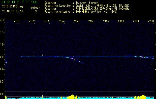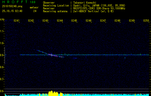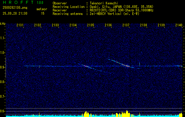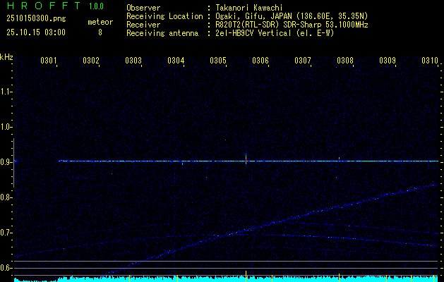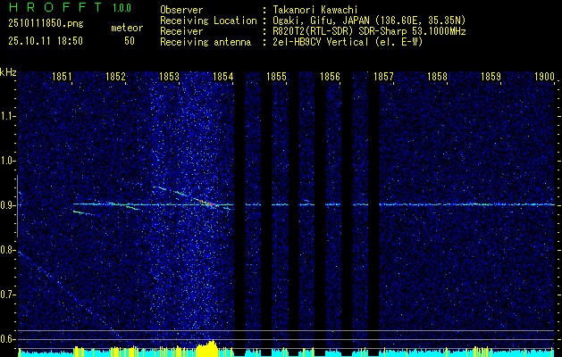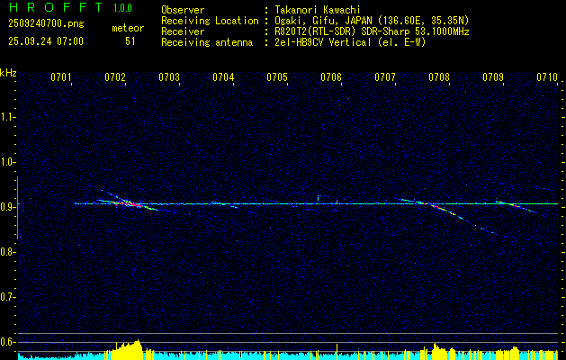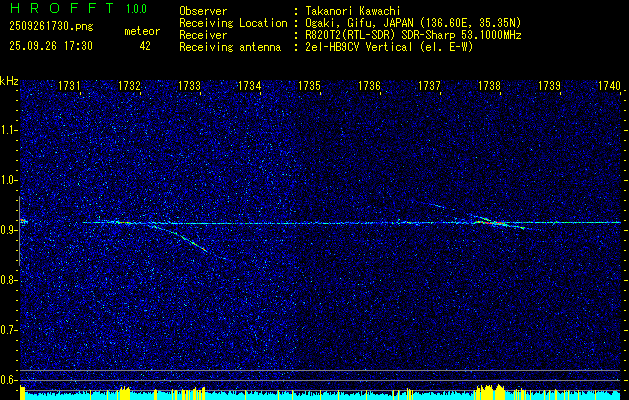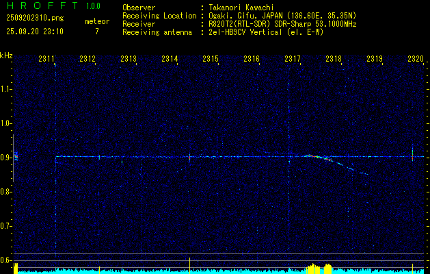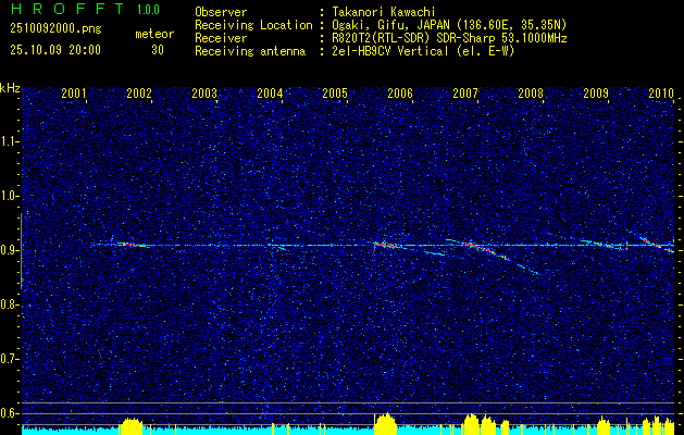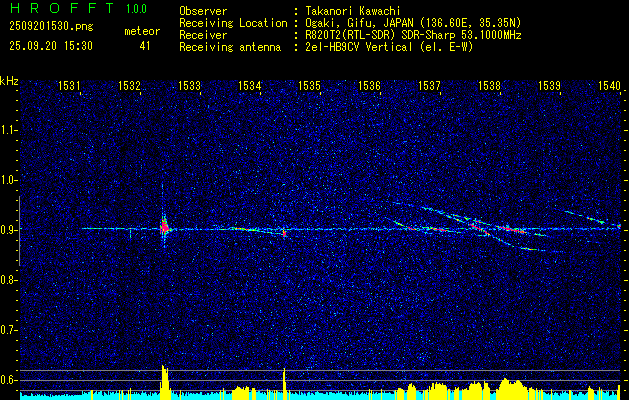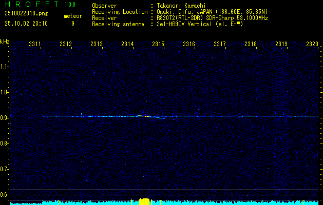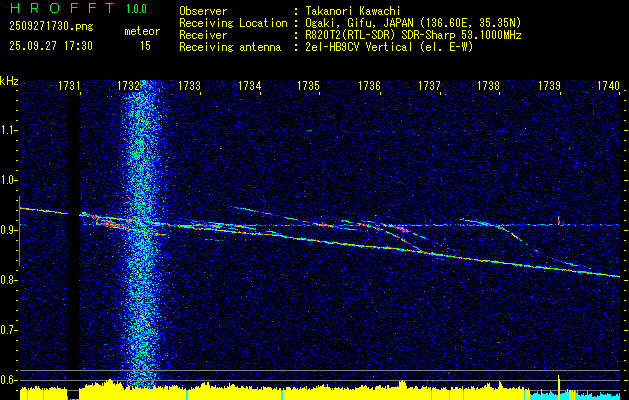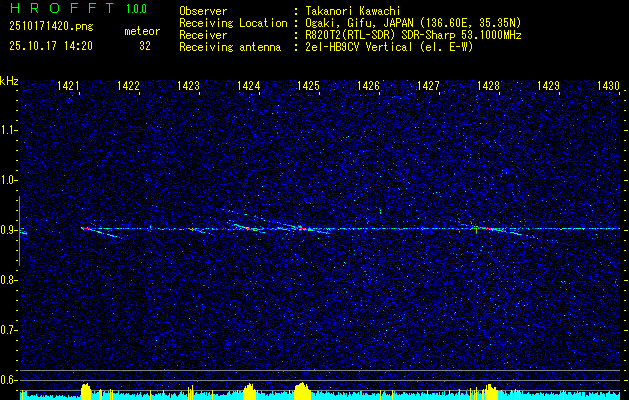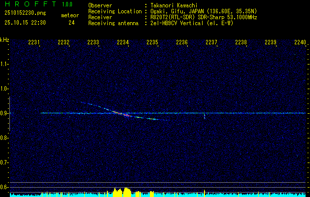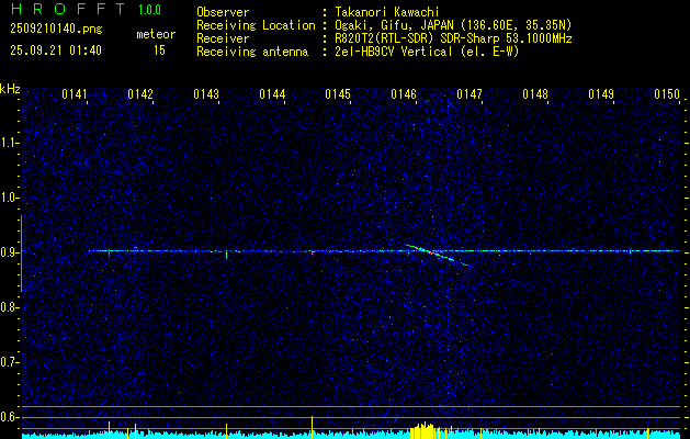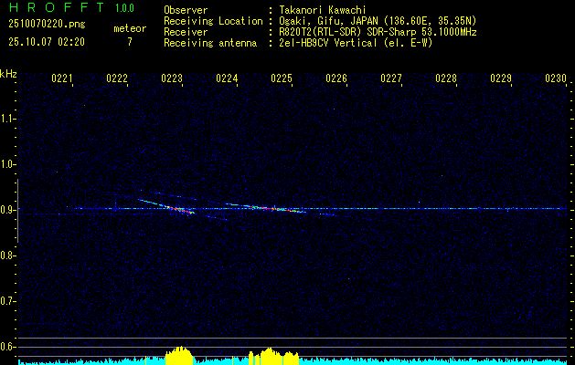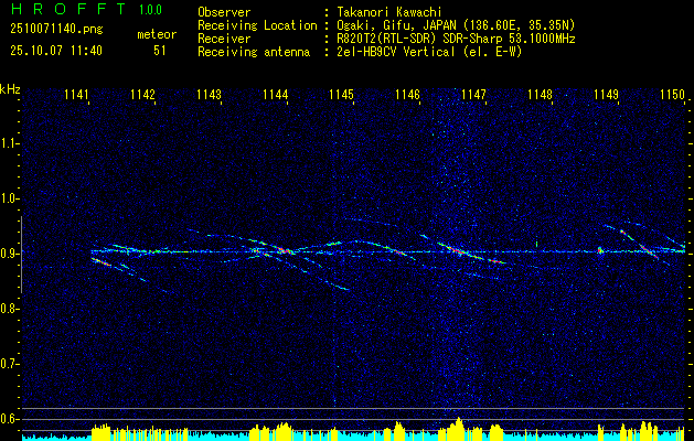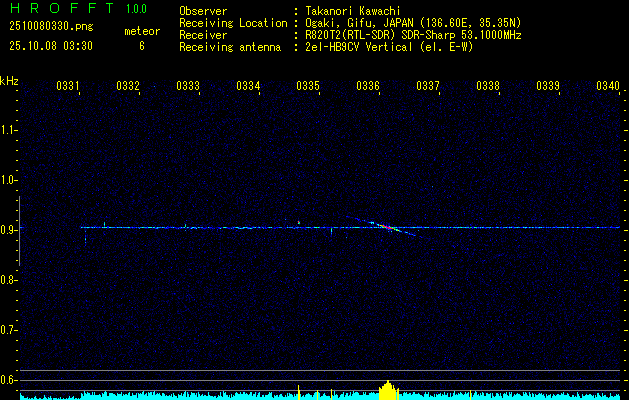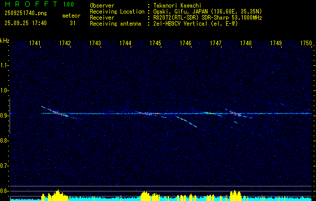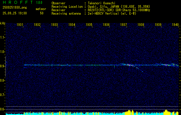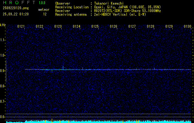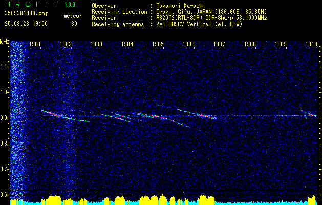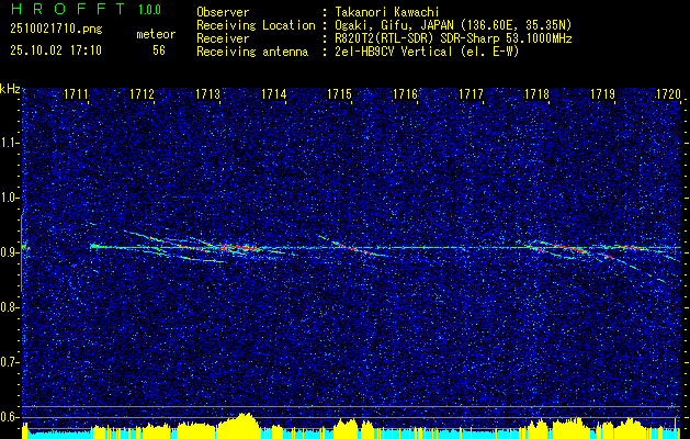 0.9kHz附近に発生している『点』または『塊』が流星によるエコーです.