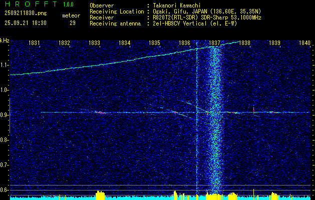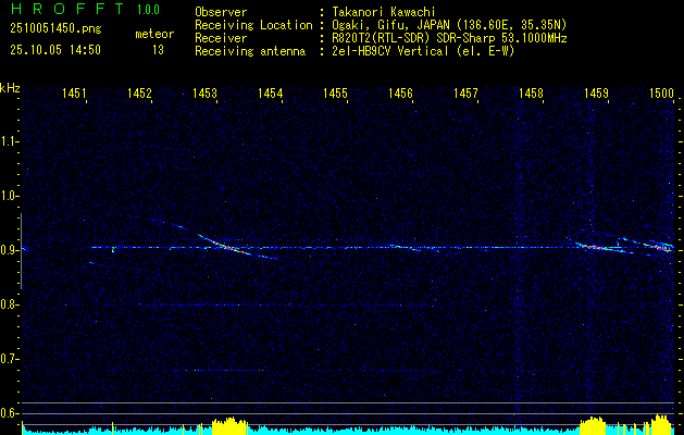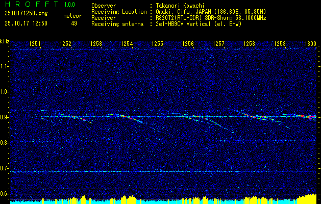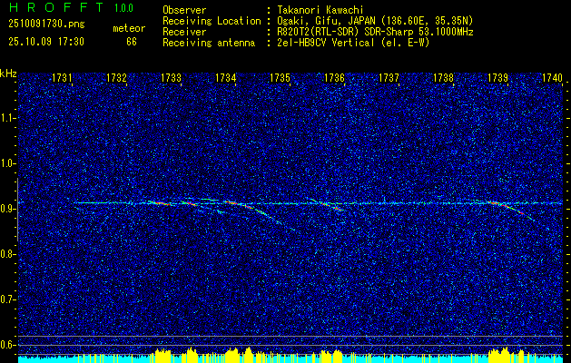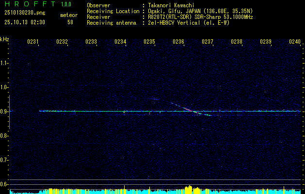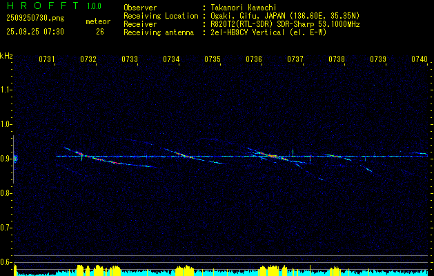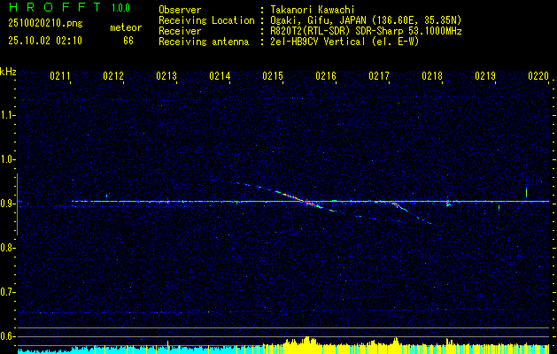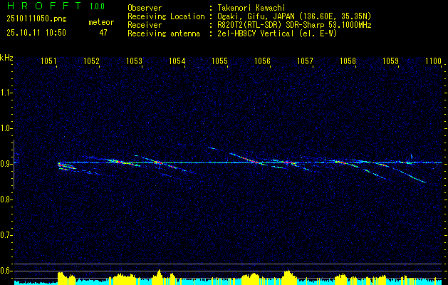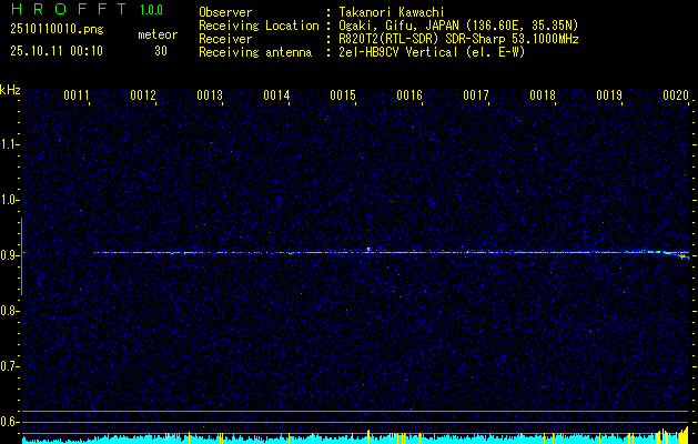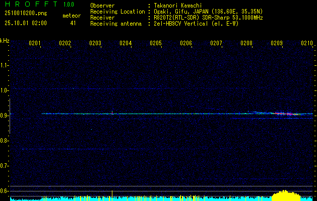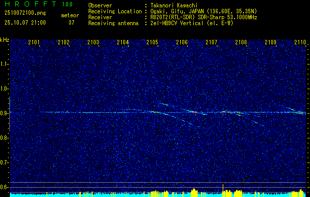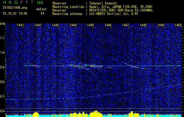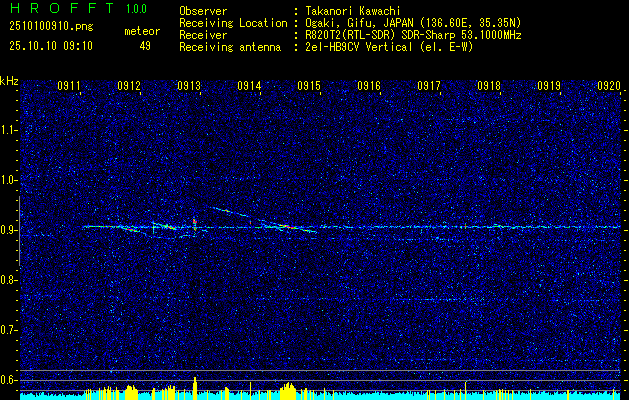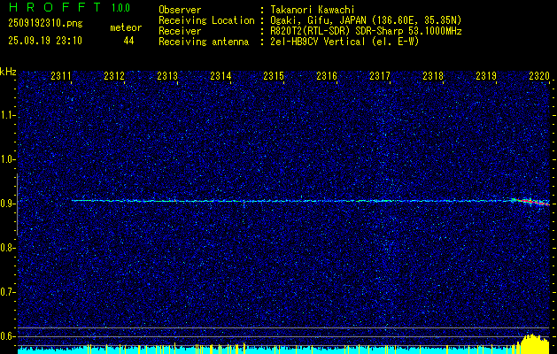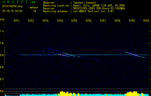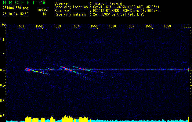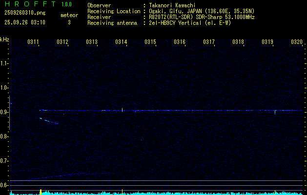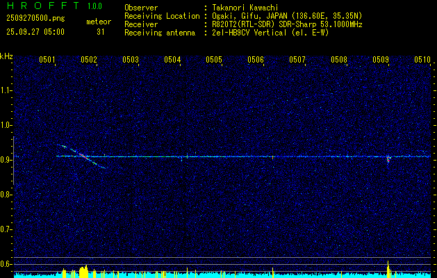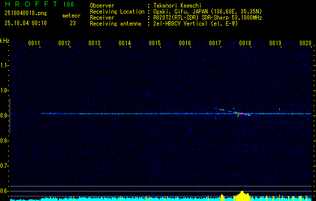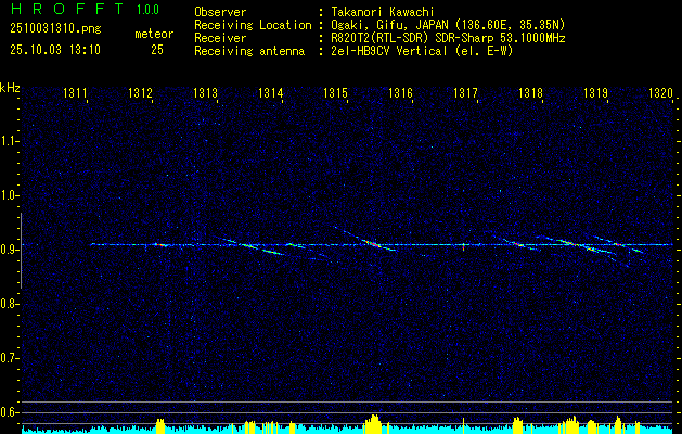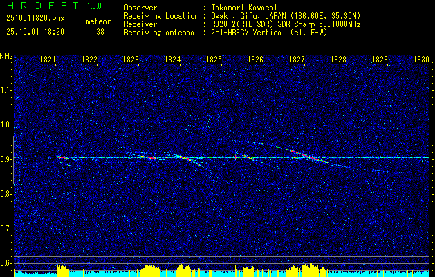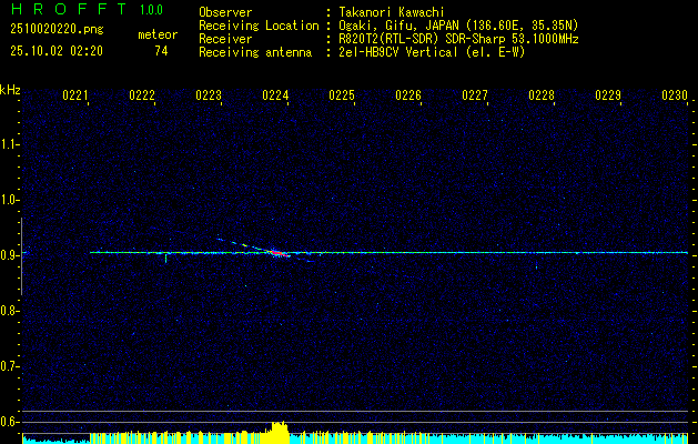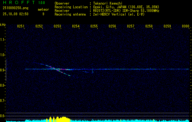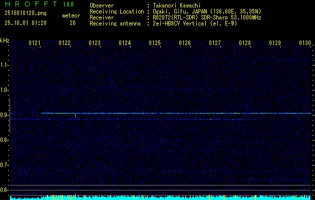 0.9kHz附近に発生している『点』または『塊』が流星によるエコーです.