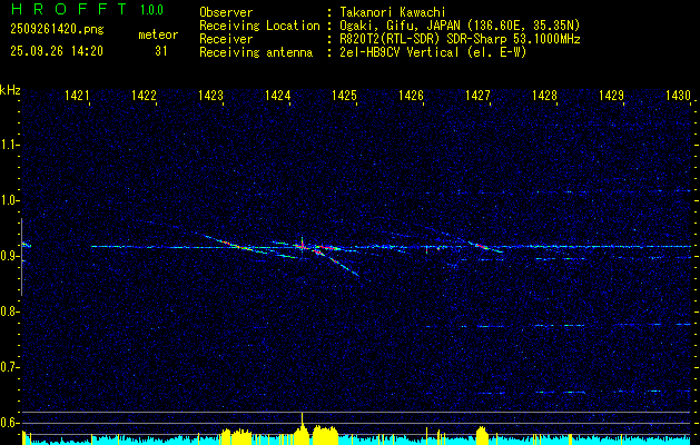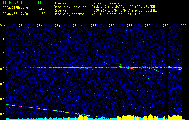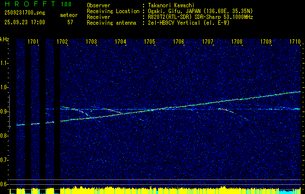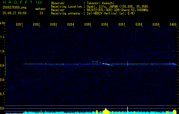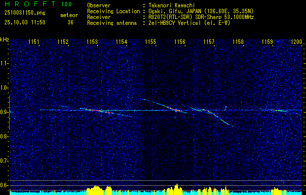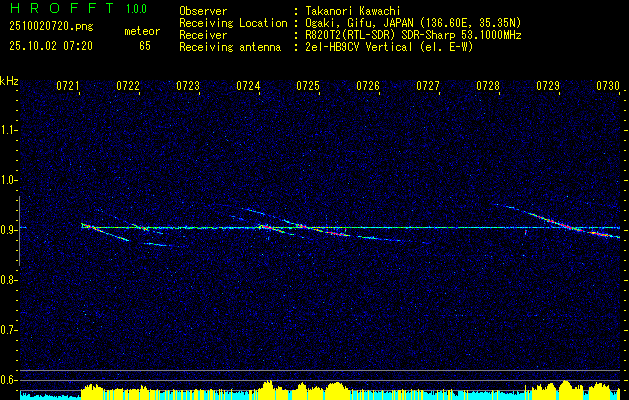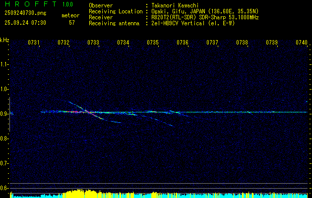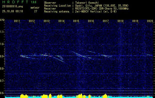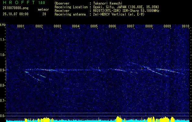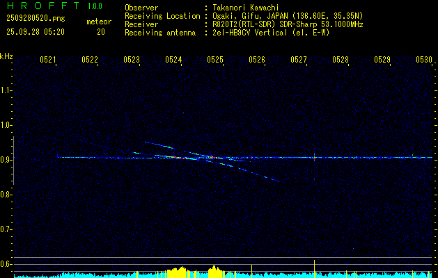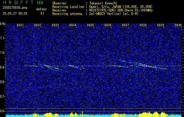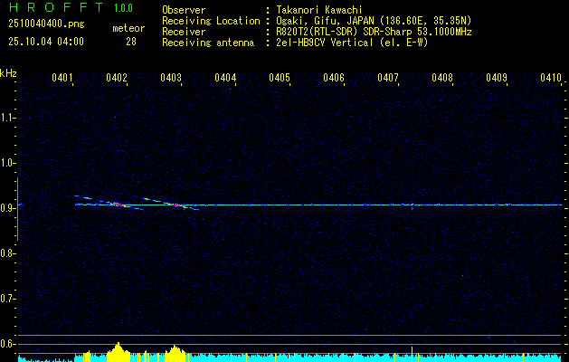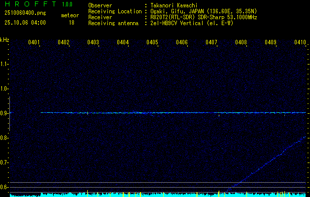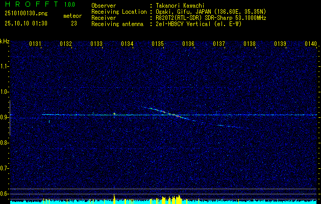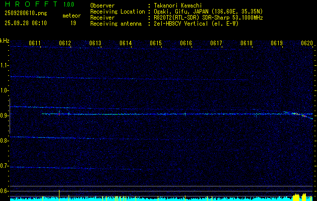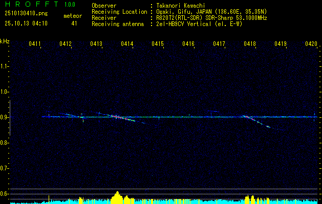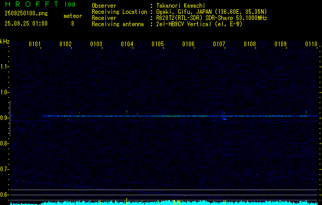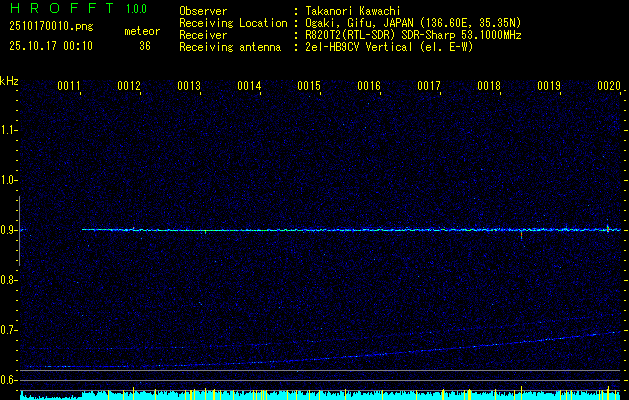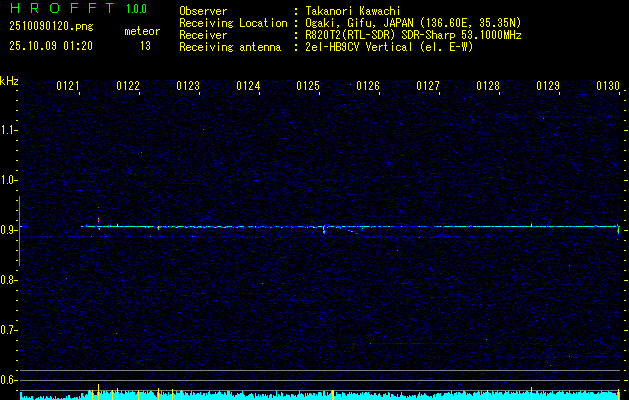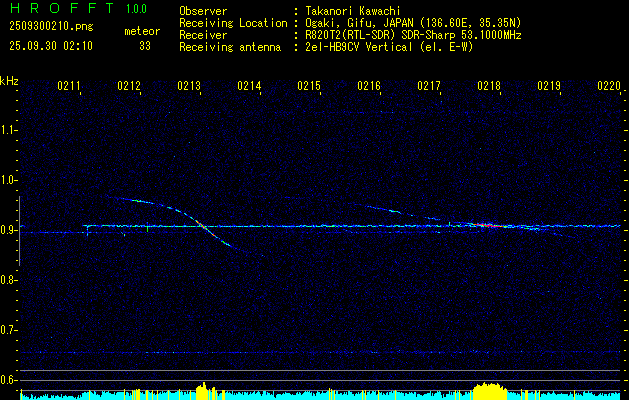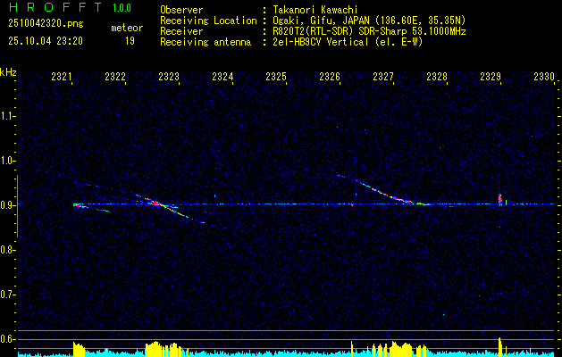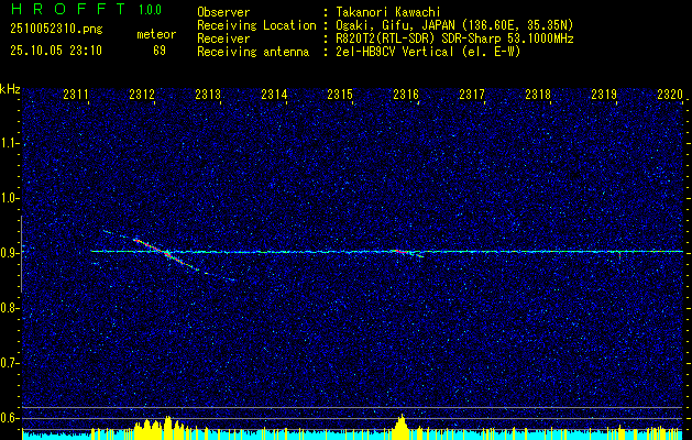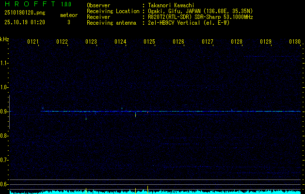 0.9kHz附近に発生している『点』または『塊』が流星によるエコーです.