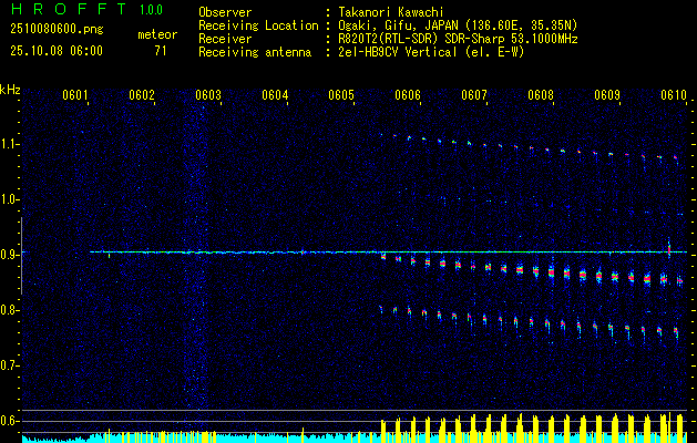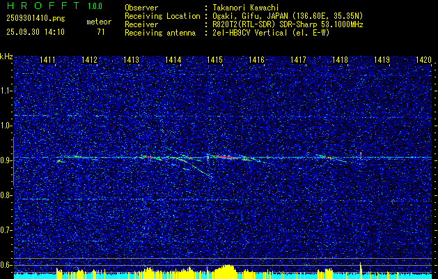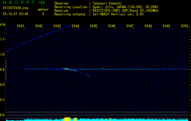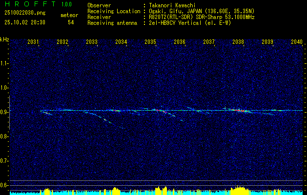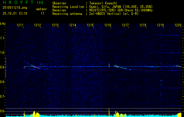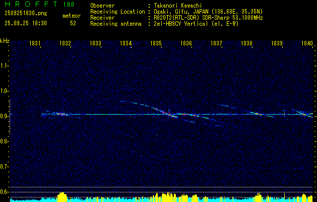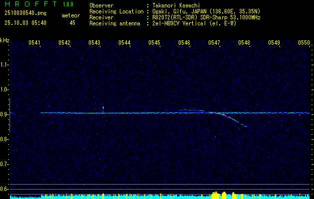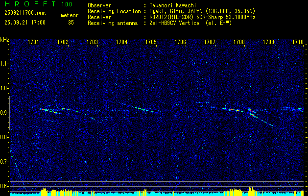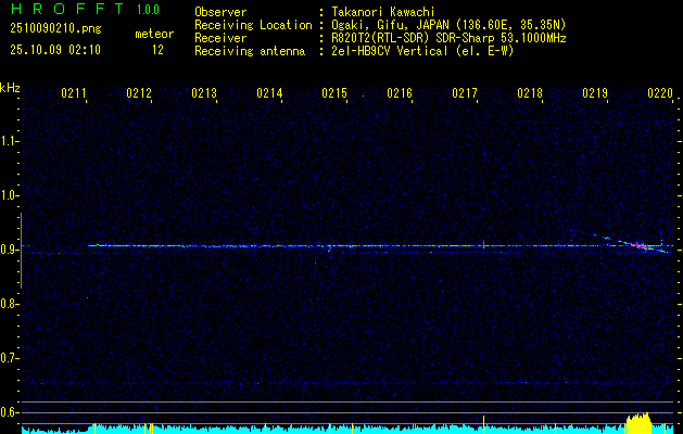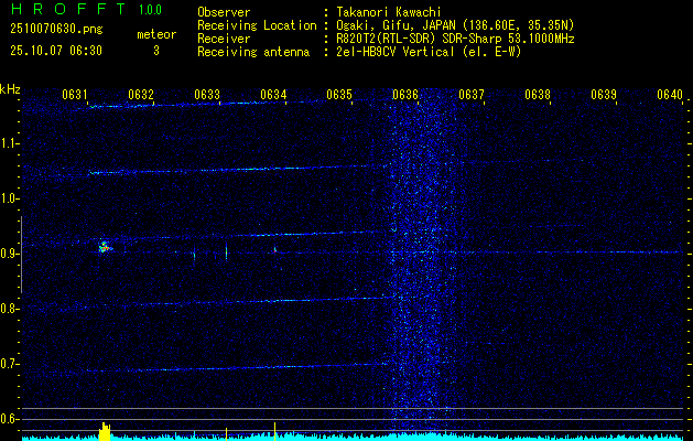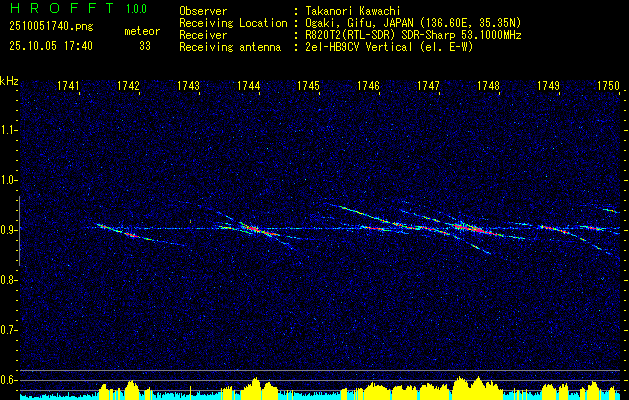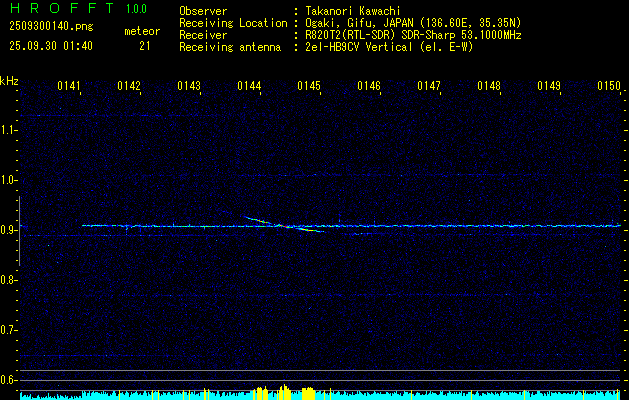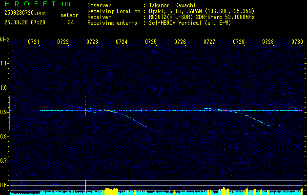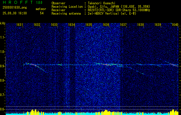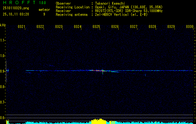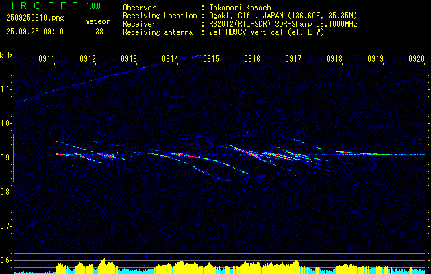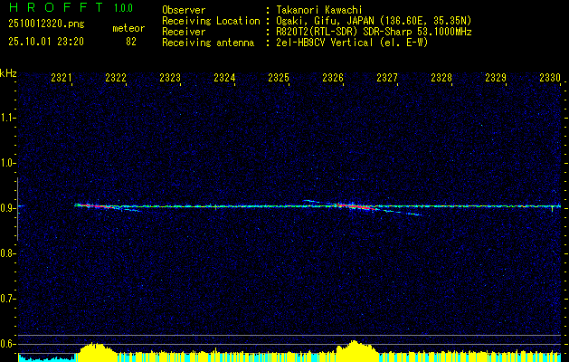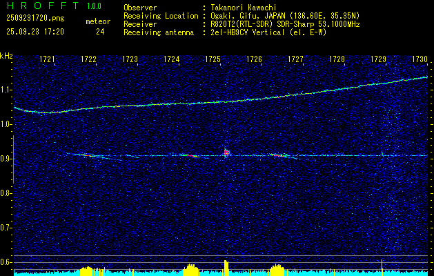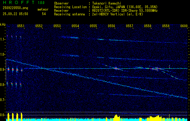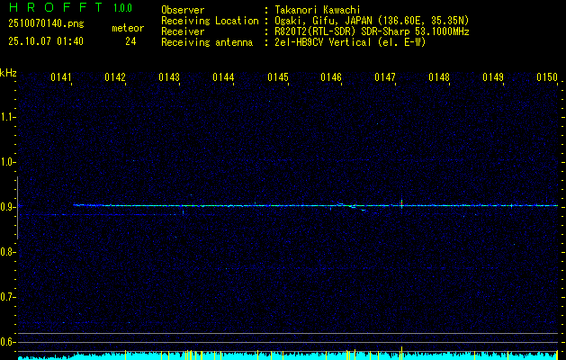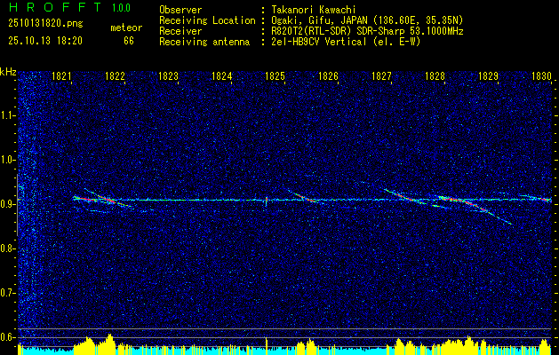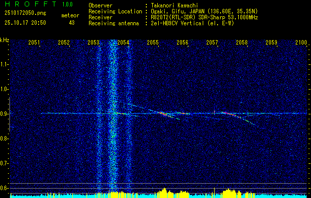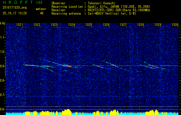 0.9kHz附近に発生している『点』または『塊』が流星によるエコーです.