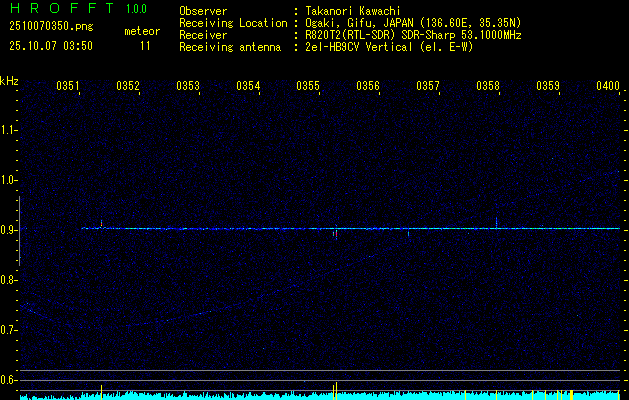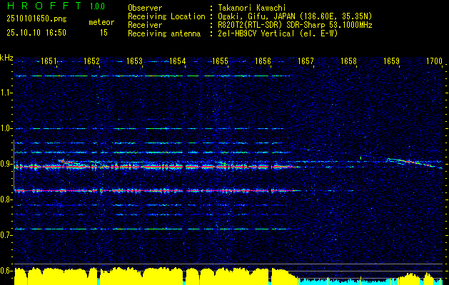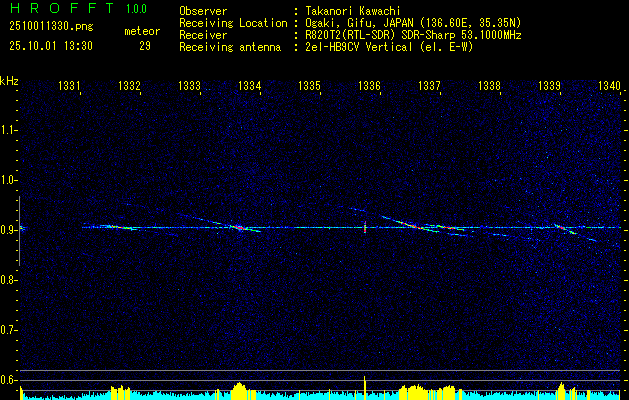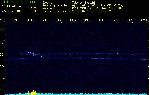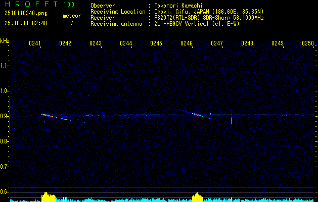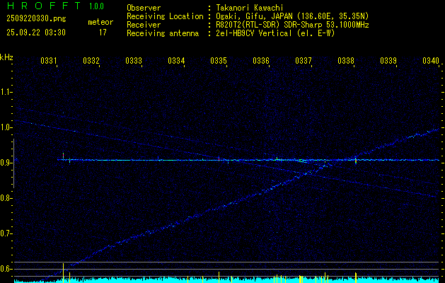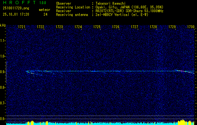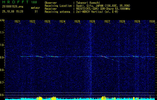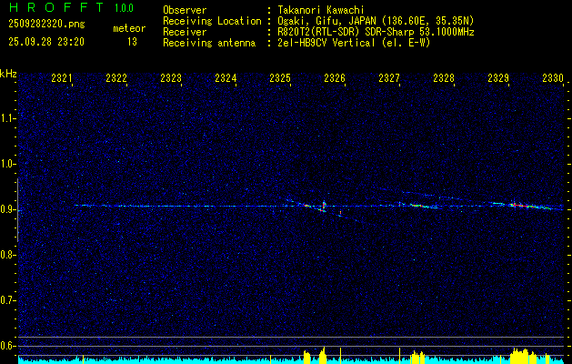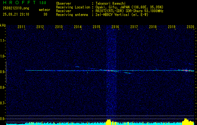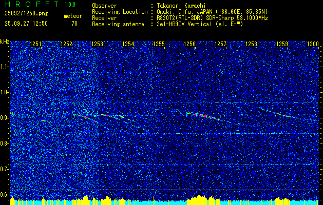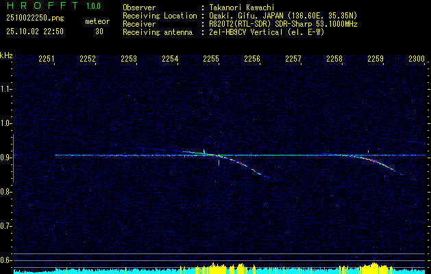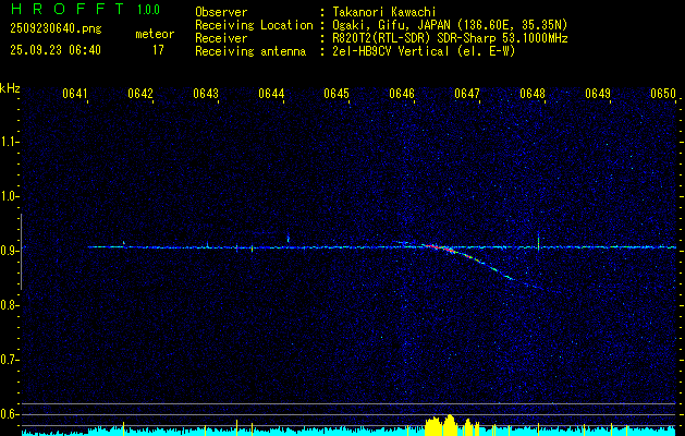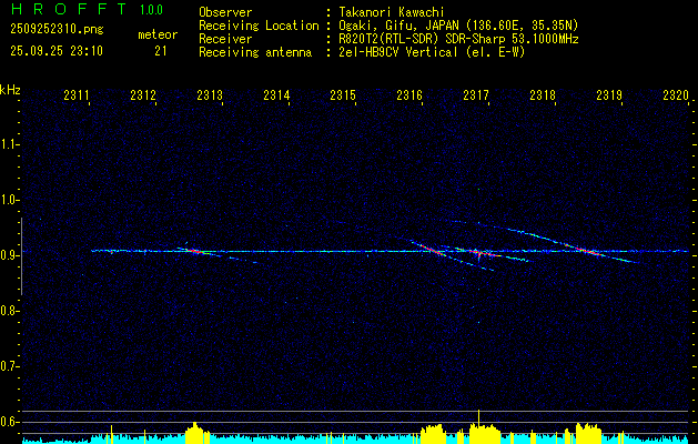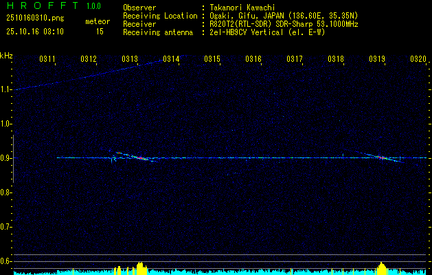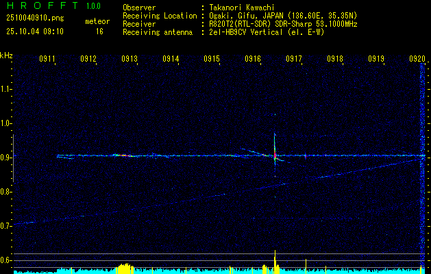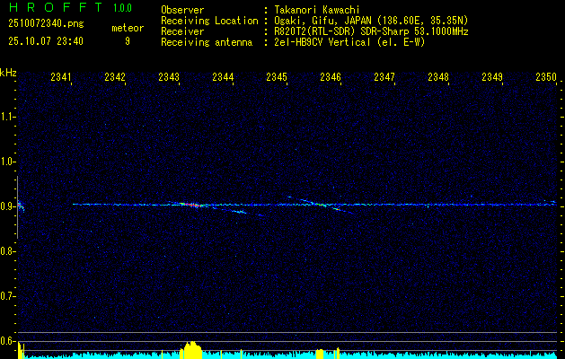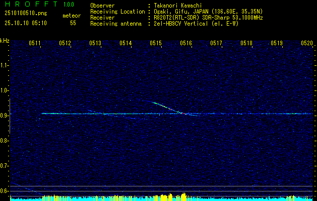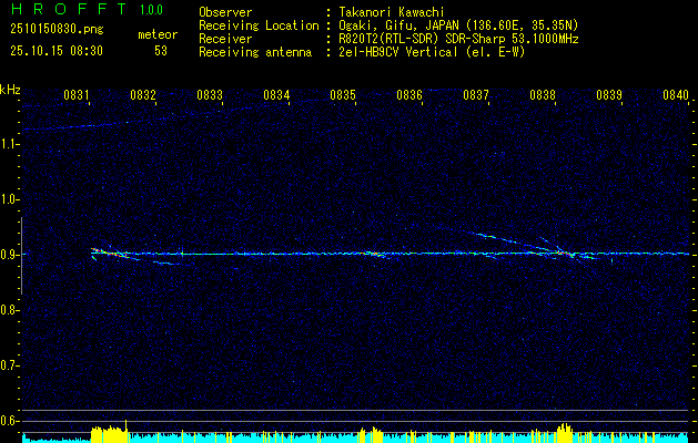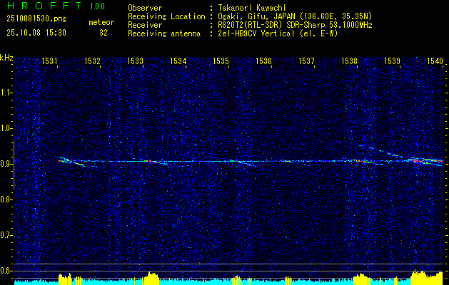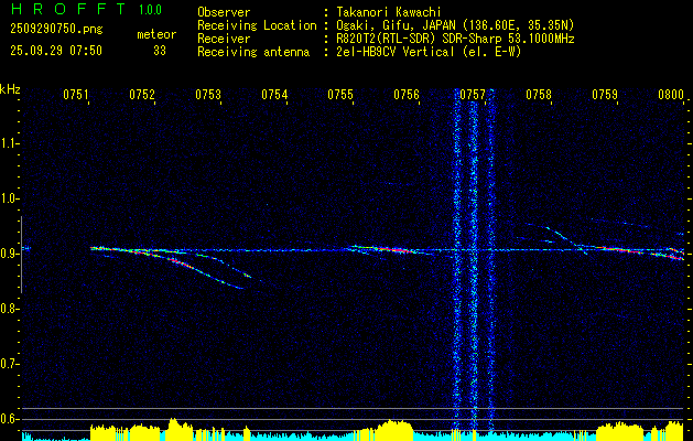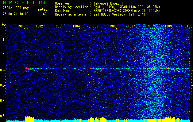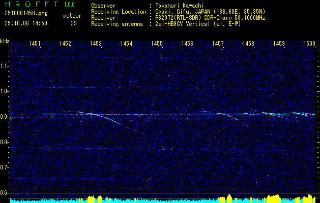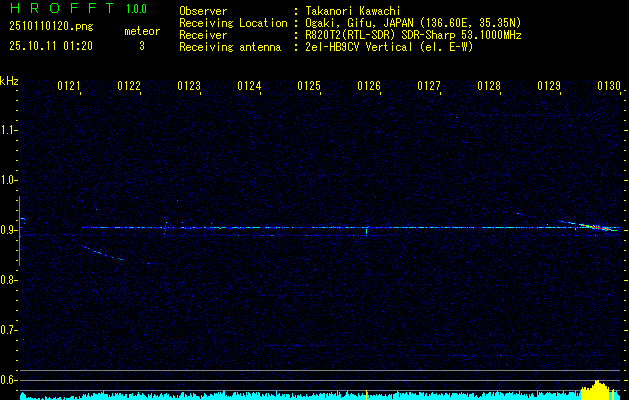 0.9kHz附近に発生している『点』または『塊』が流星によるエコーです.