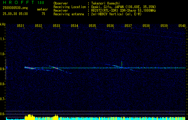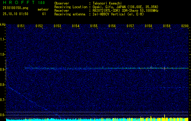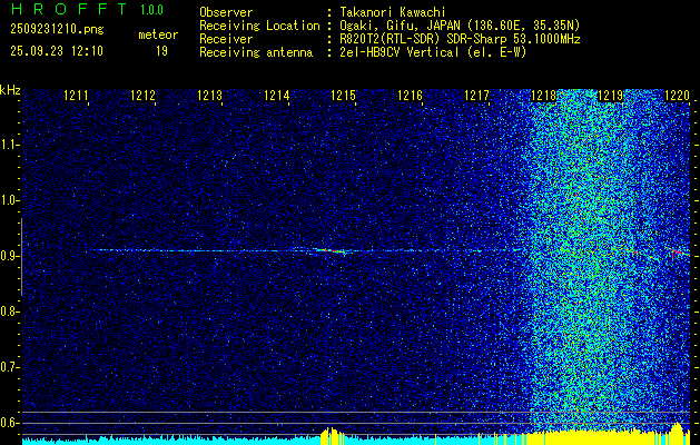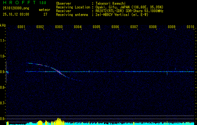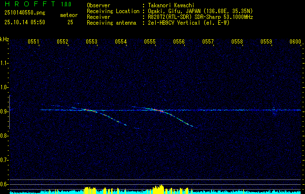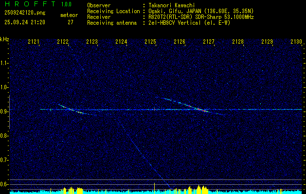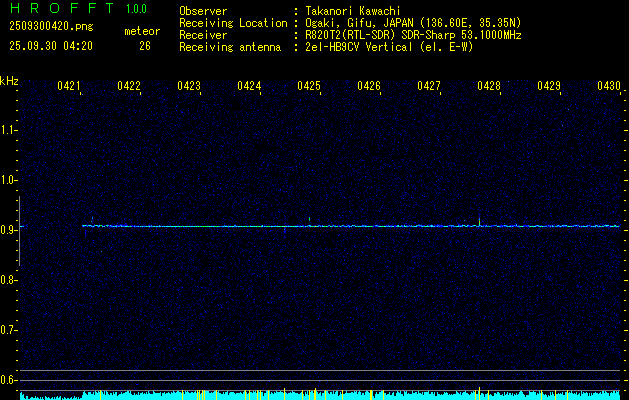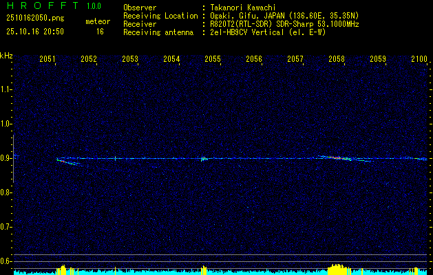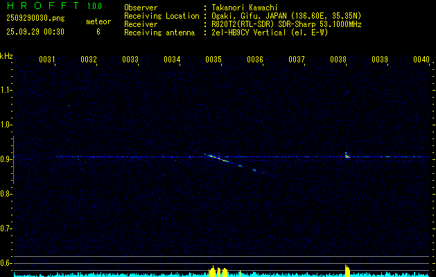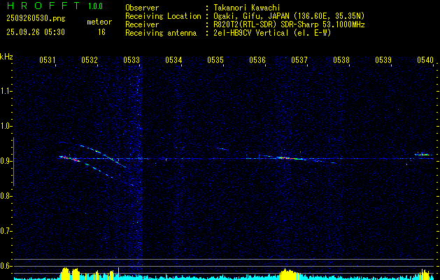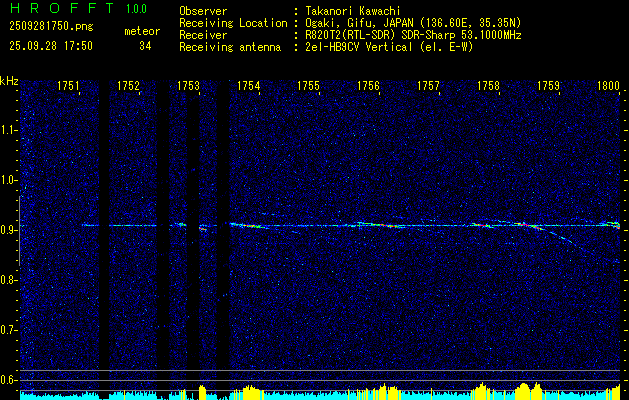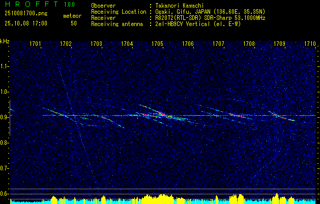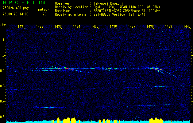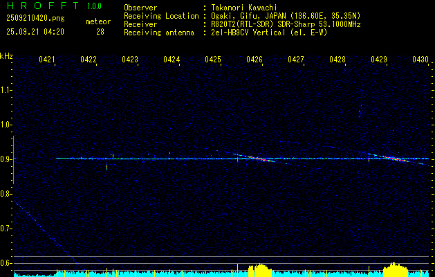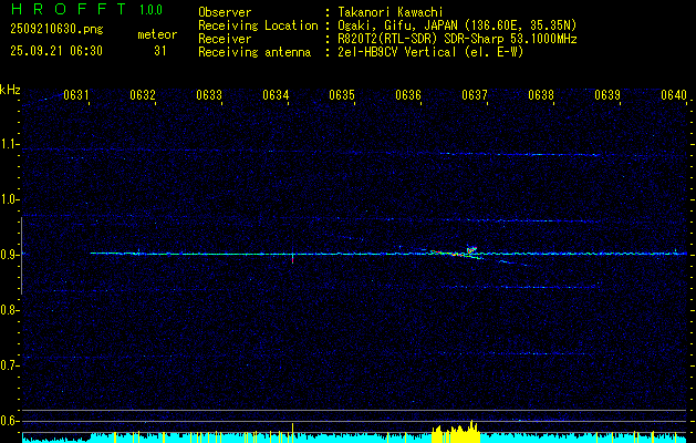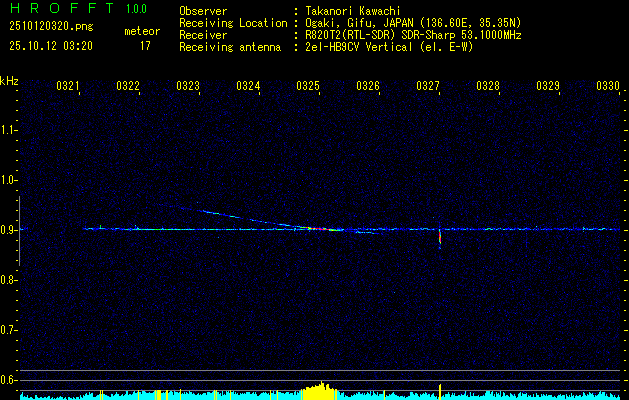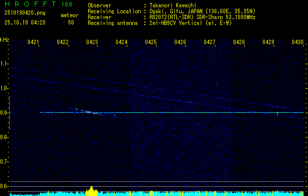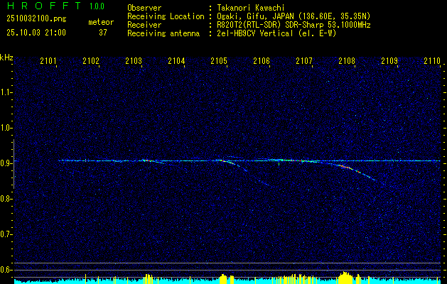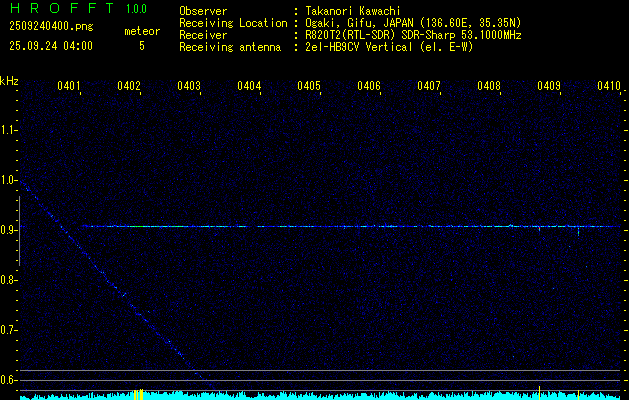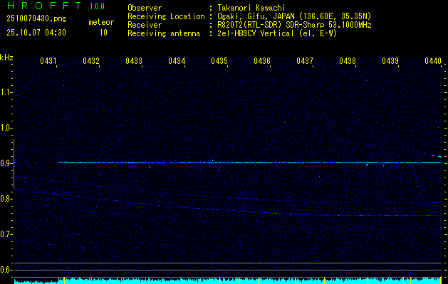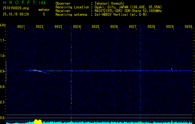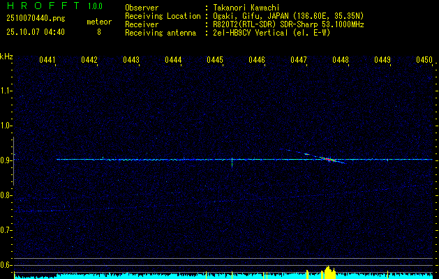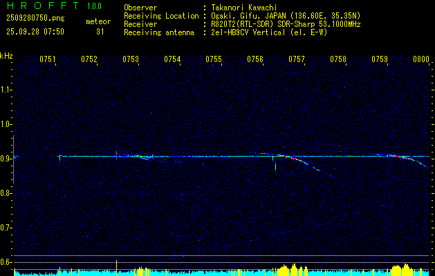 0.9kHz附近に発生している『点』または『塊』が流星によるエコーです.