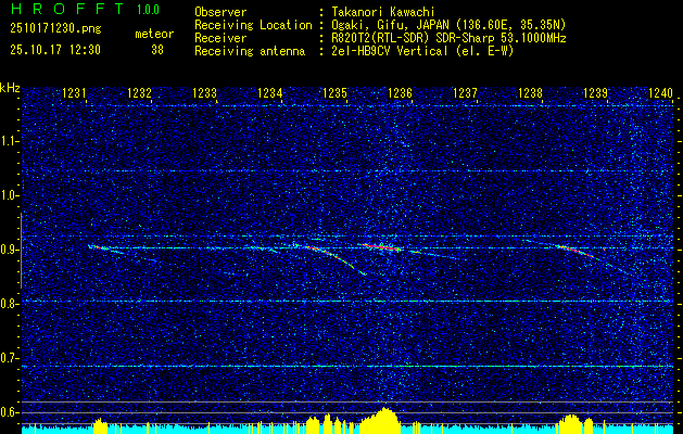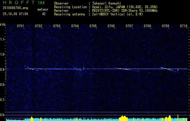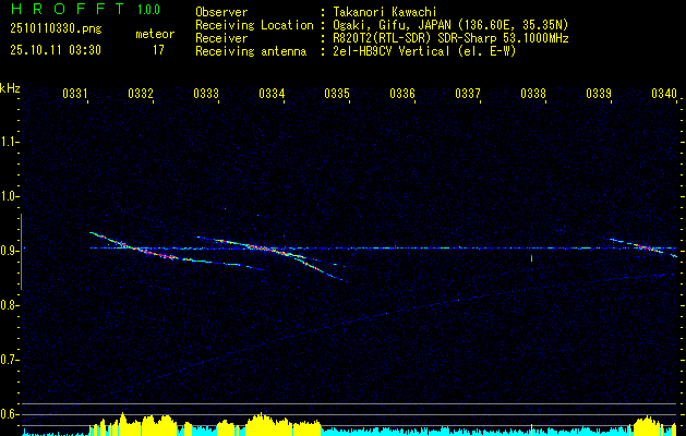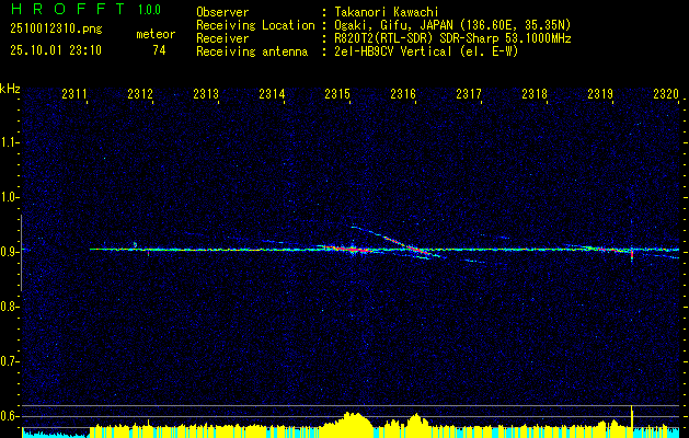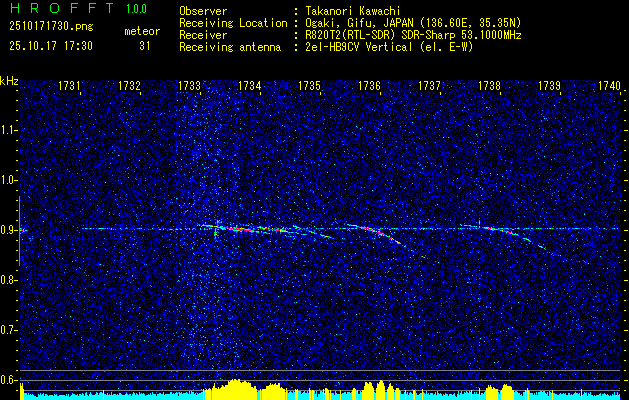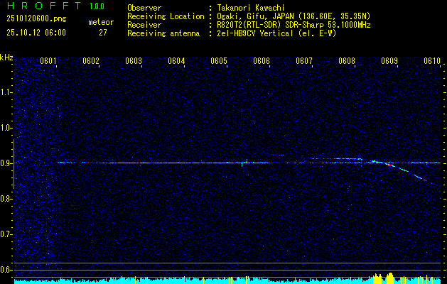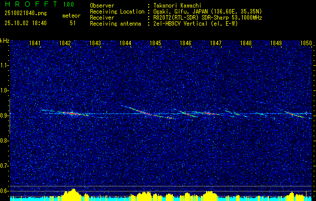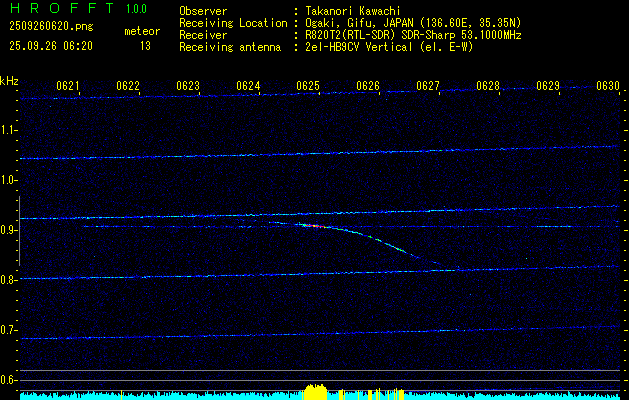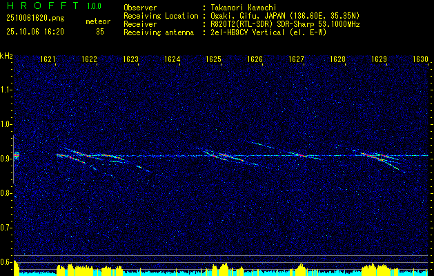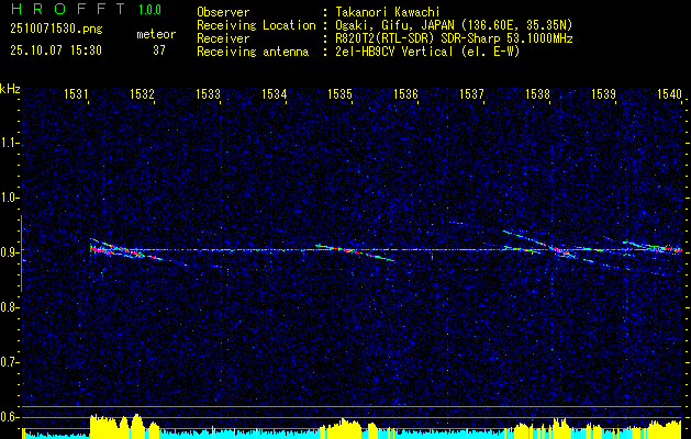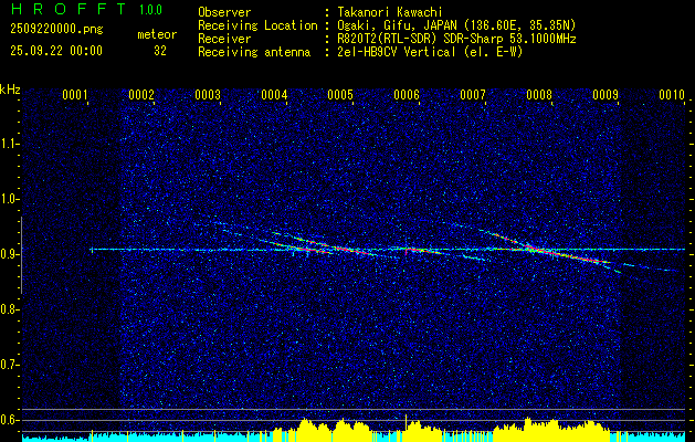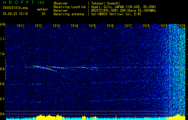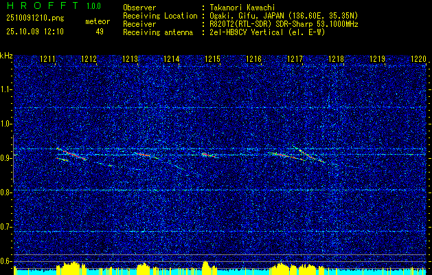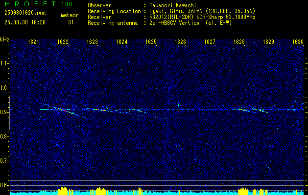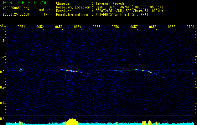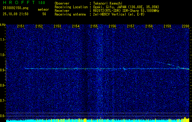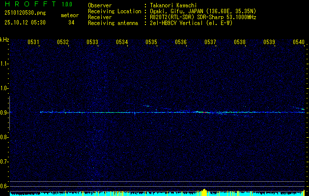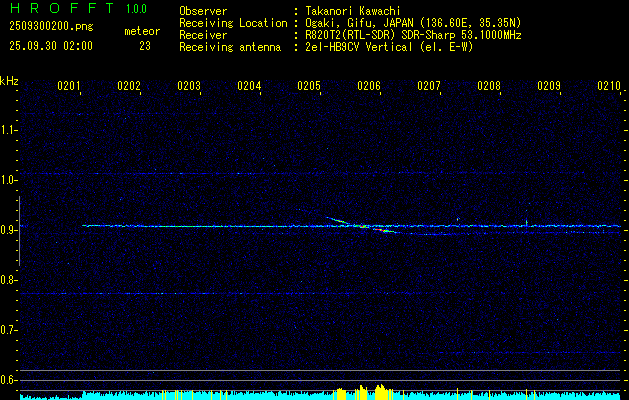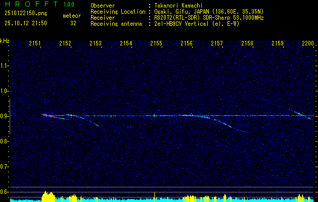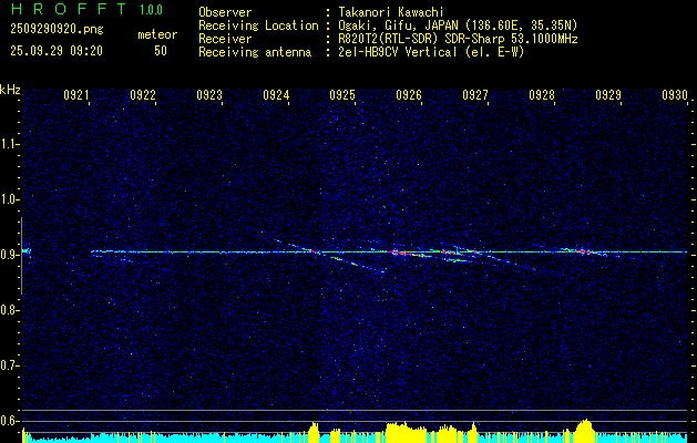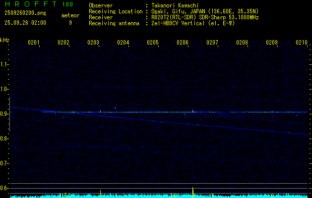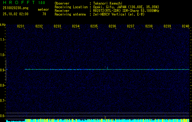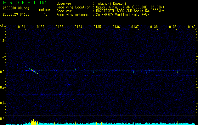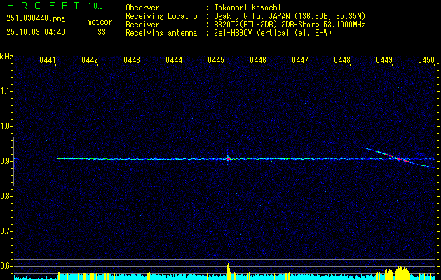 0.9kHz附近に発生している『点』または『塊』が流星によるエコーです.