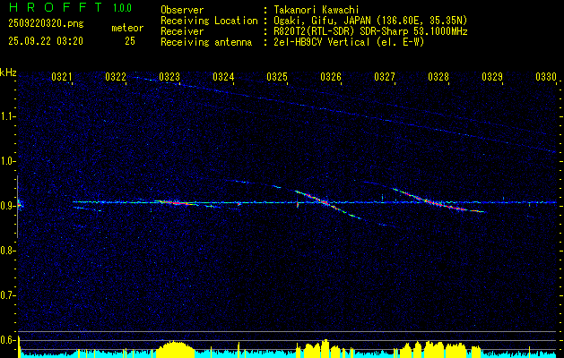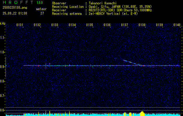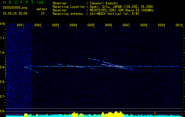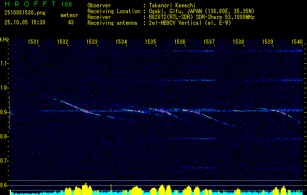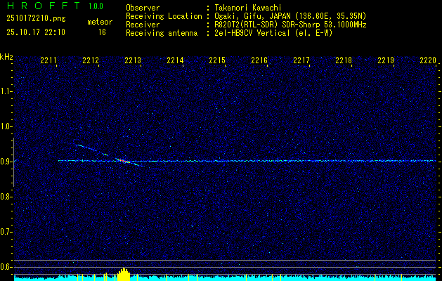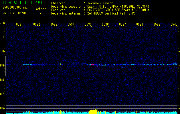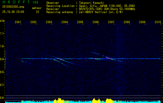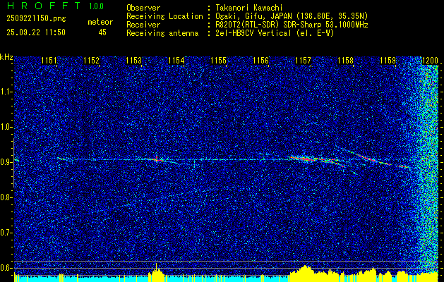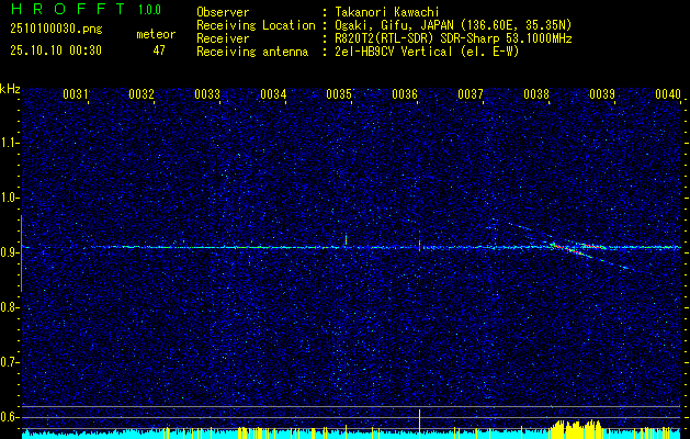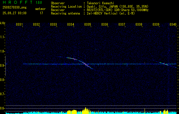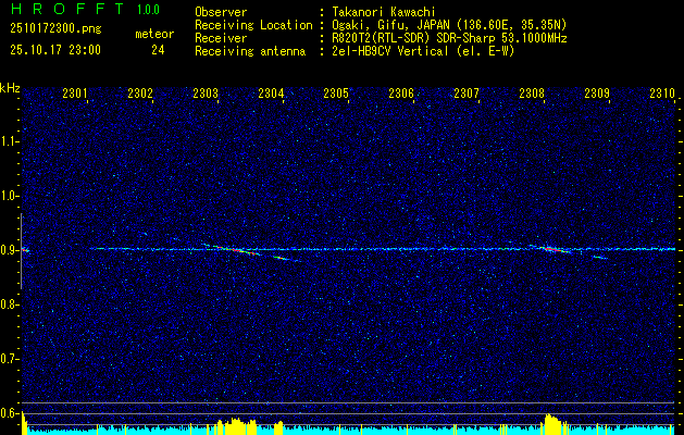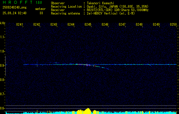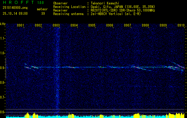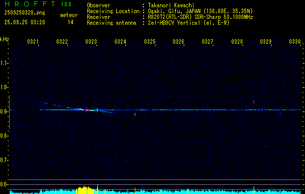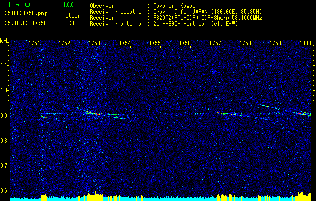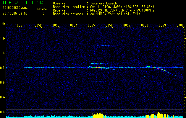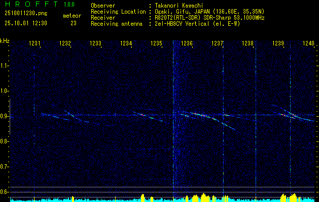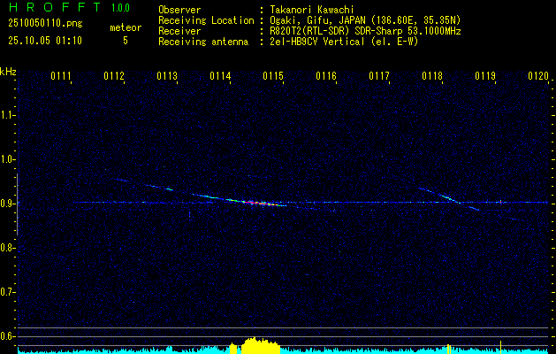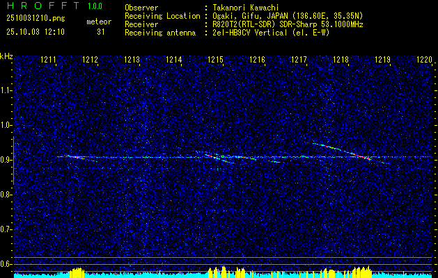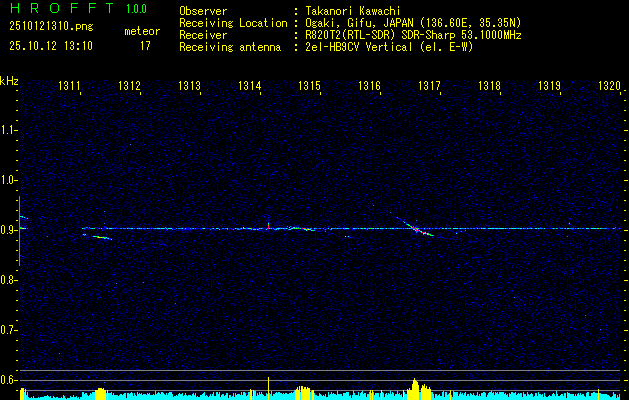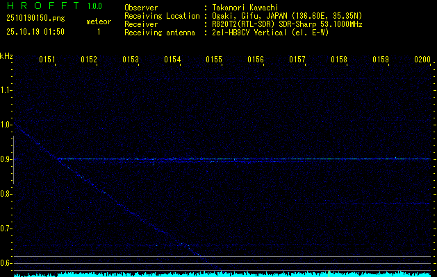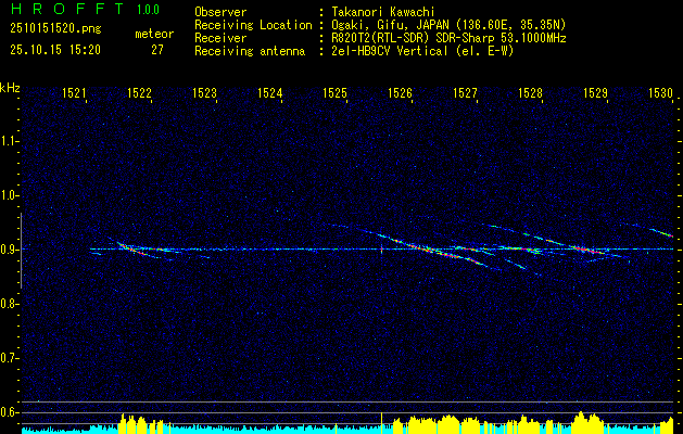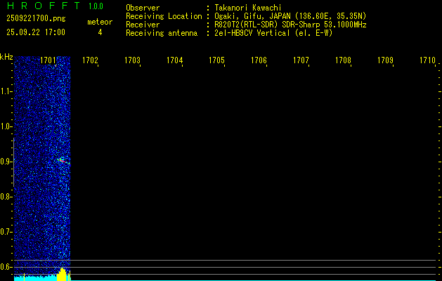 0.9kHz附近に発生している『点』または『塊』が流星によるエコーです.