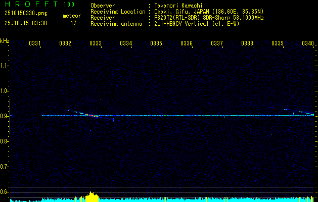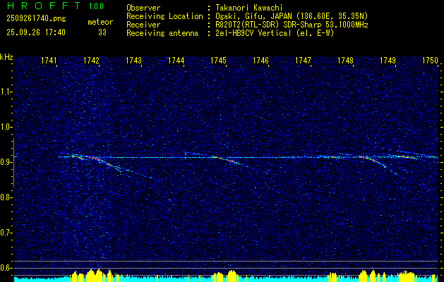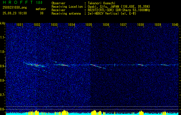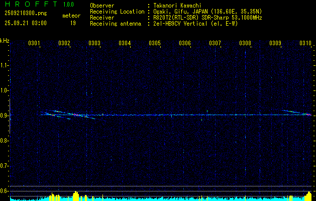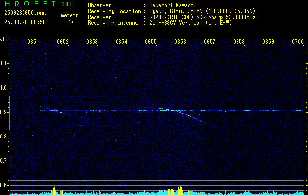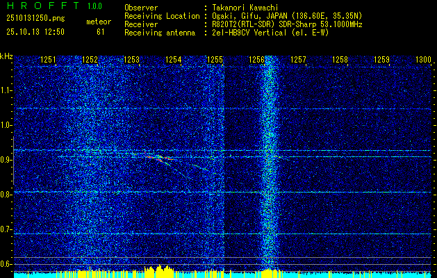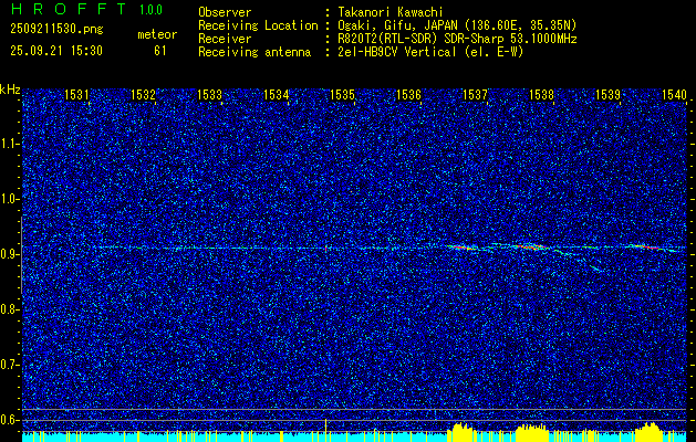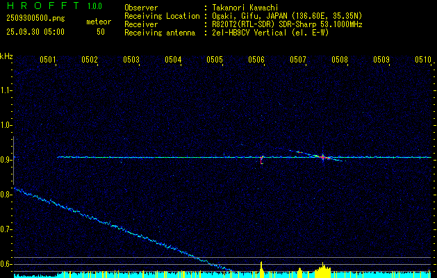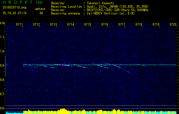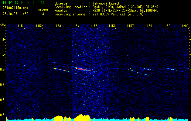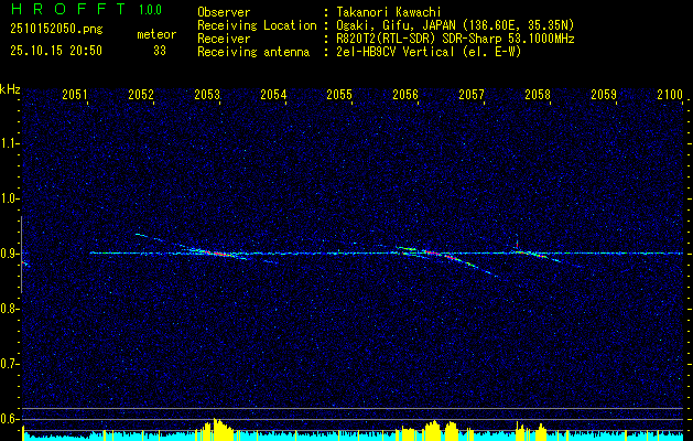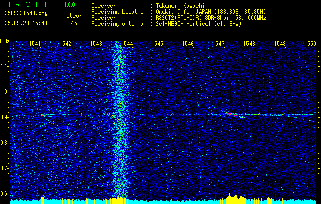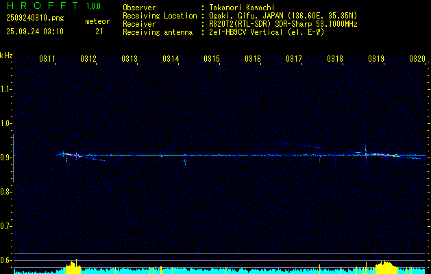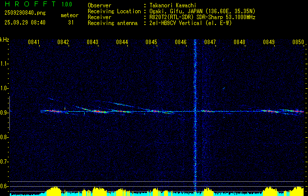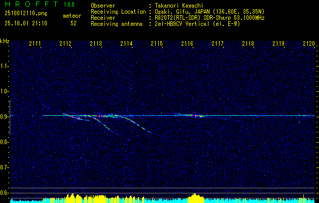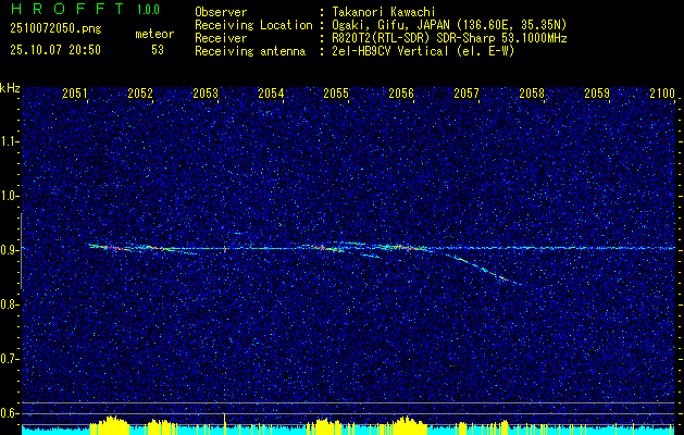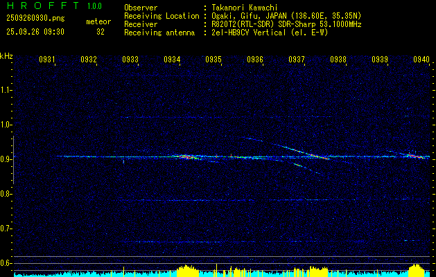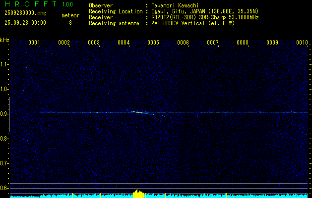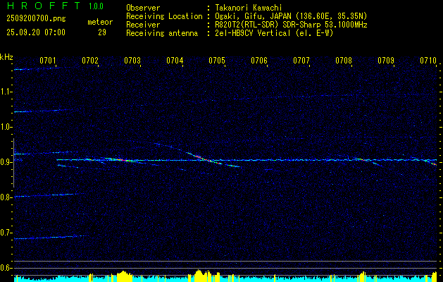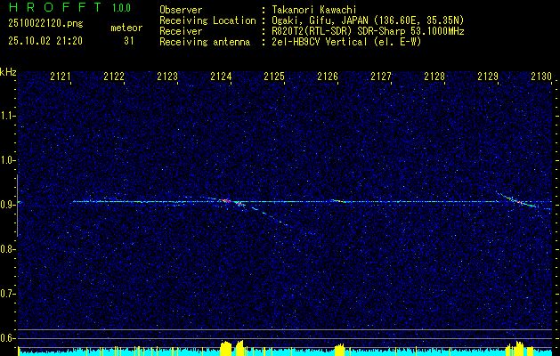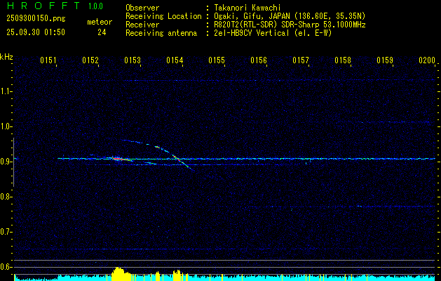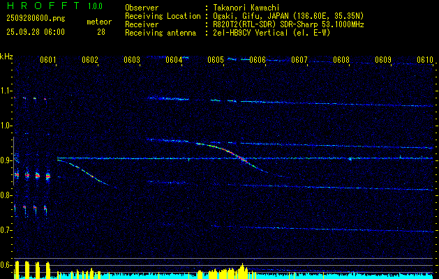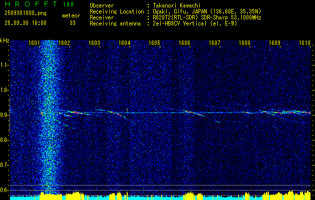 0.9kHz附近に発生している『点』または『塊』が流星によるエコーです.