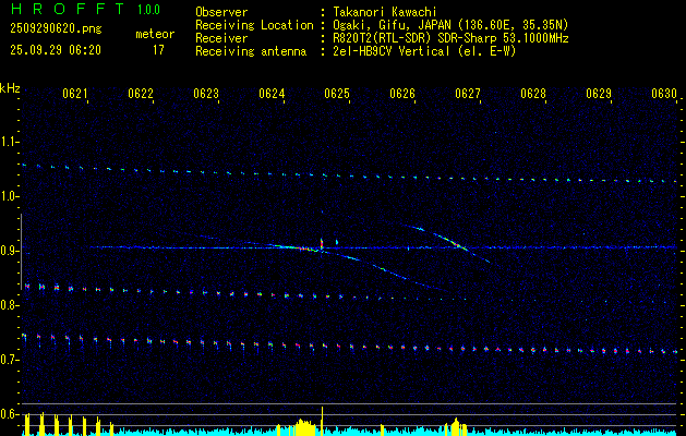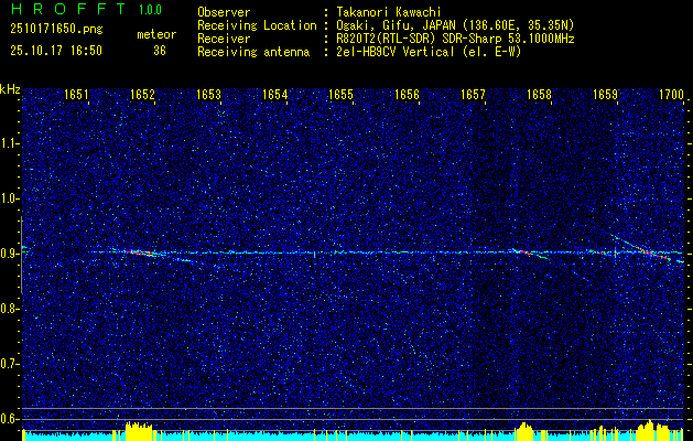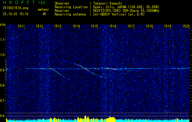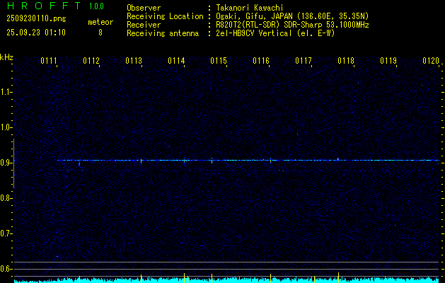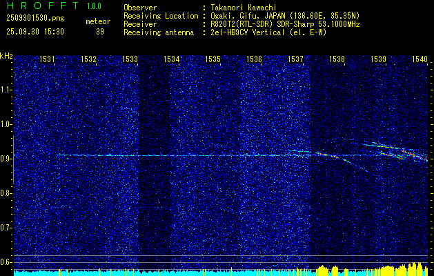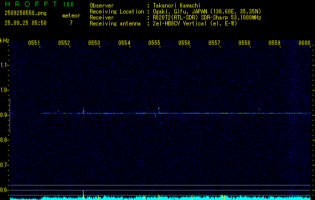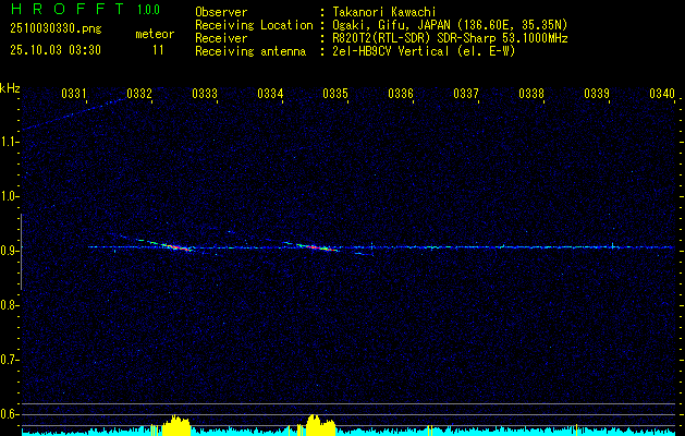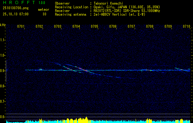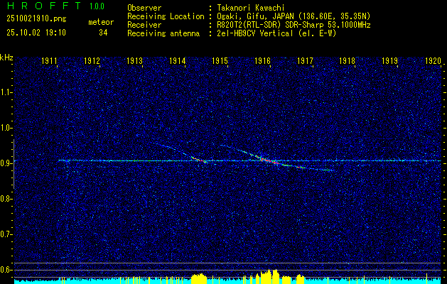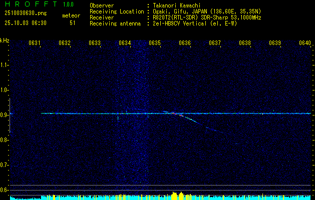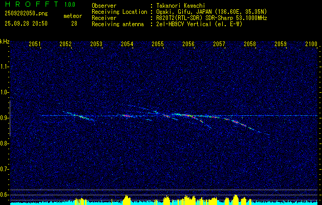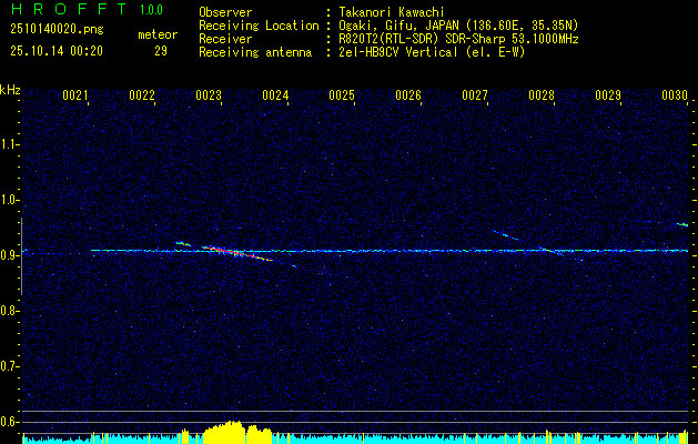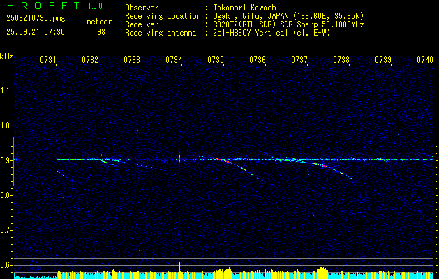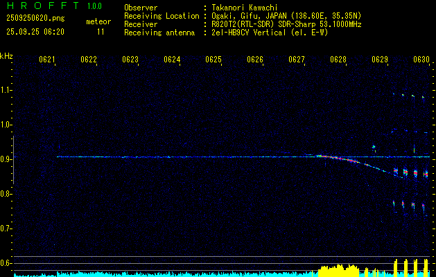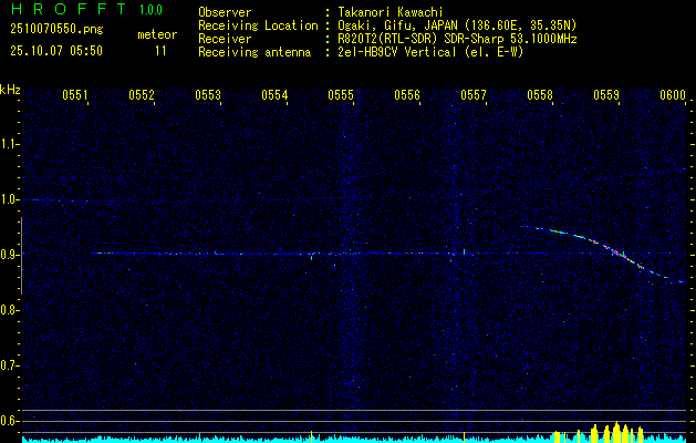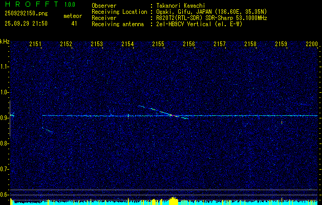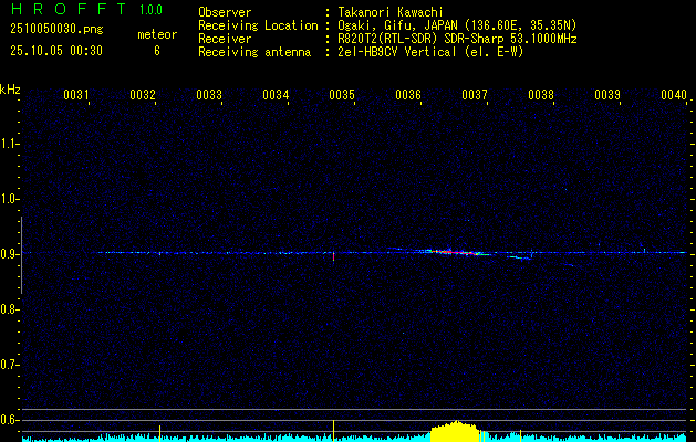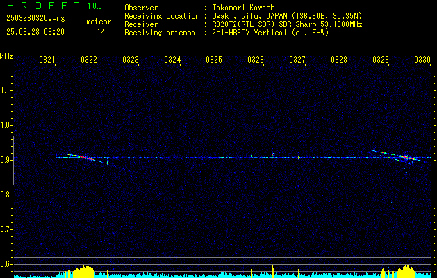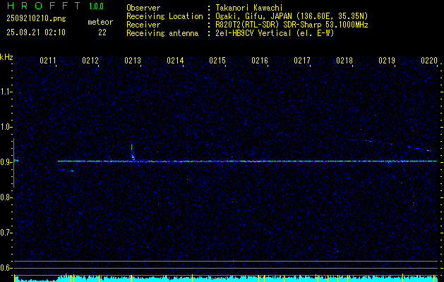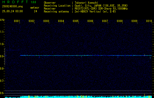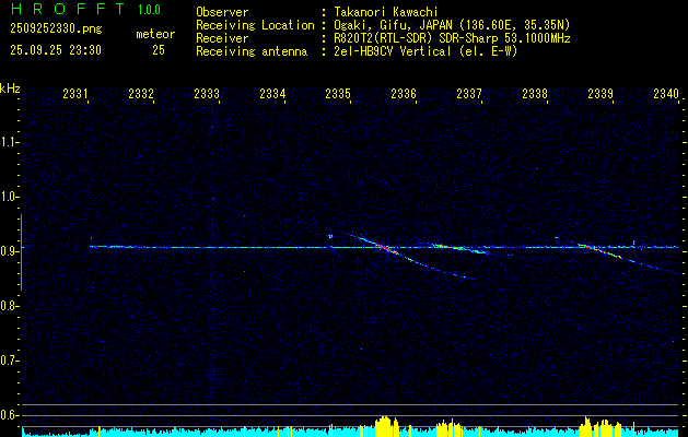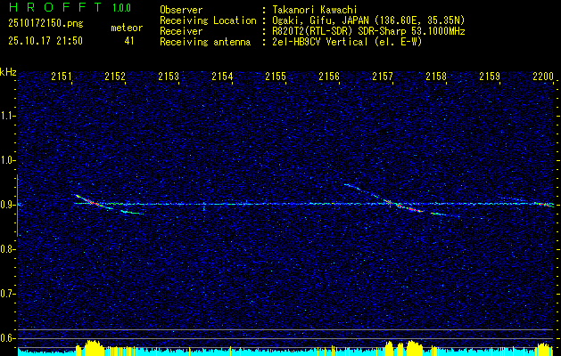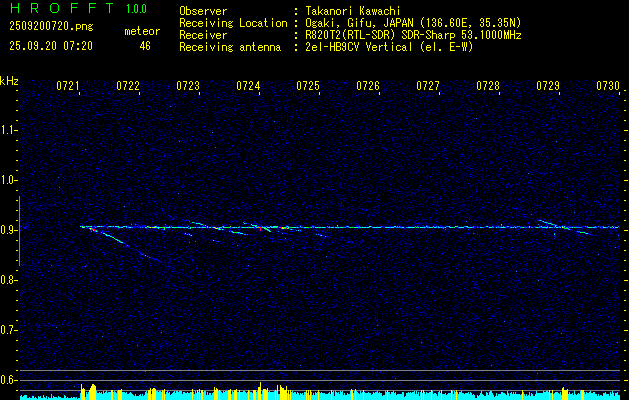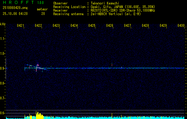 0.9kHz附近に発生している『点』または『塊』が流星によるエコーです.