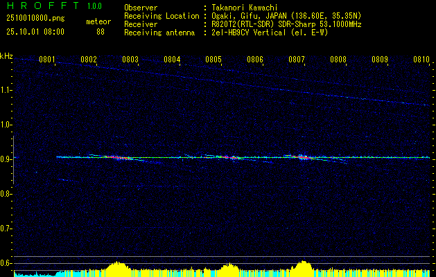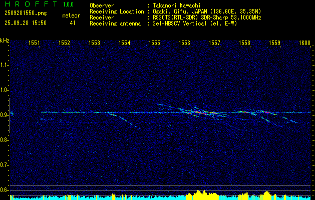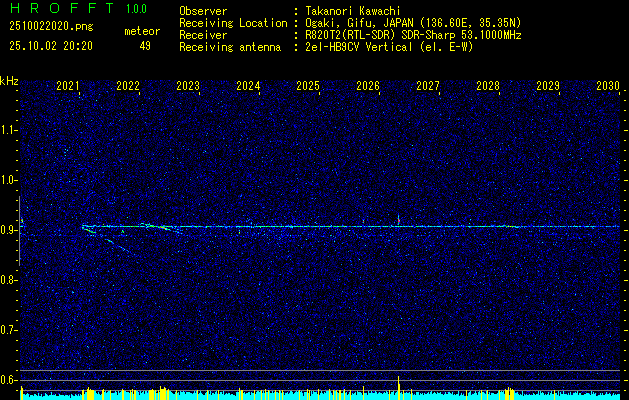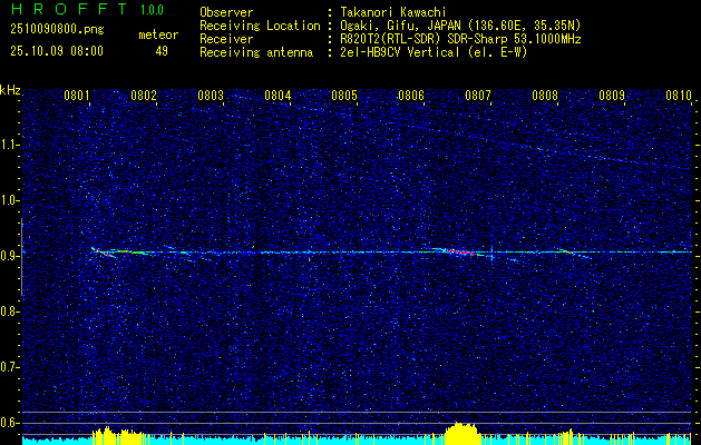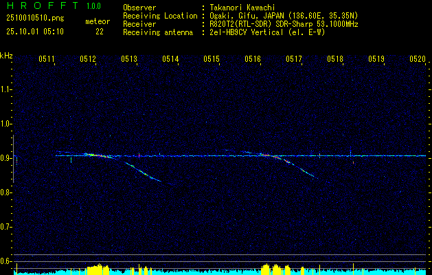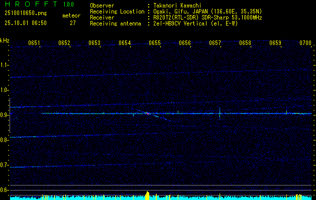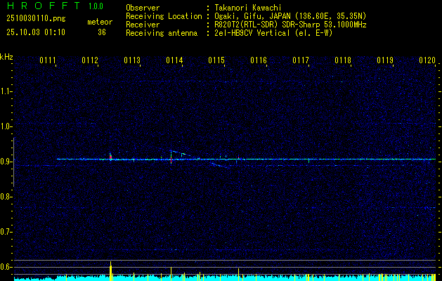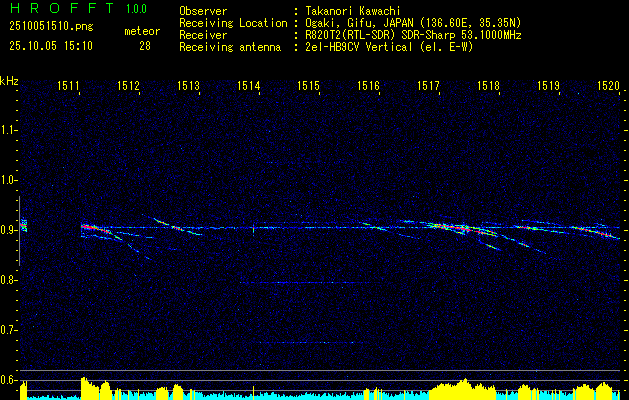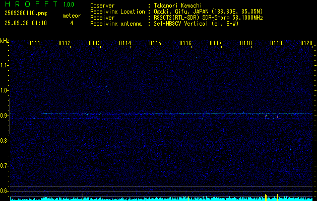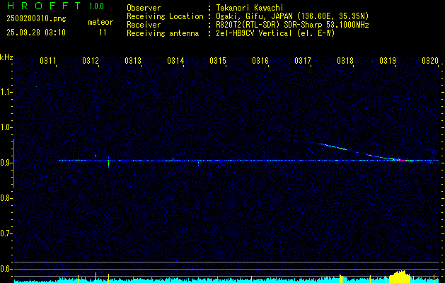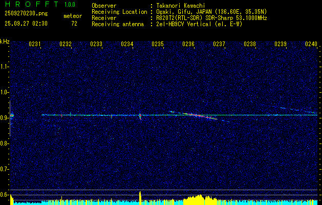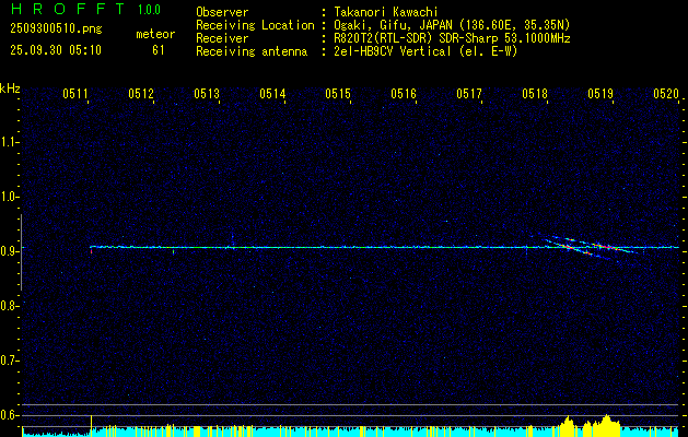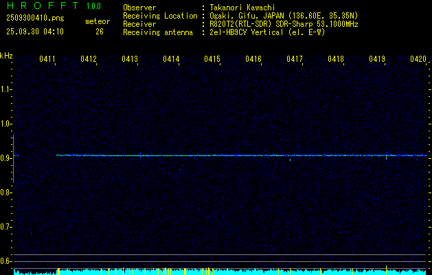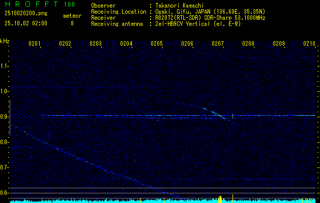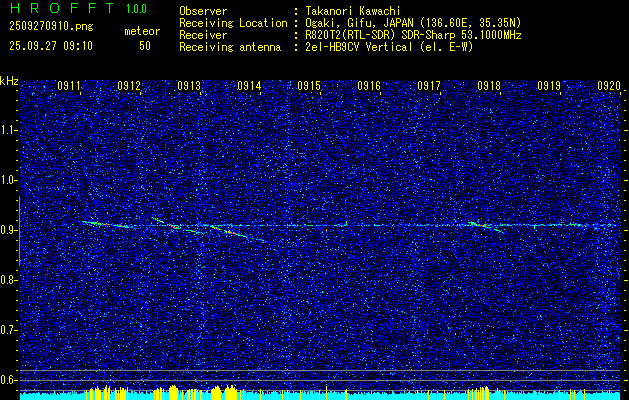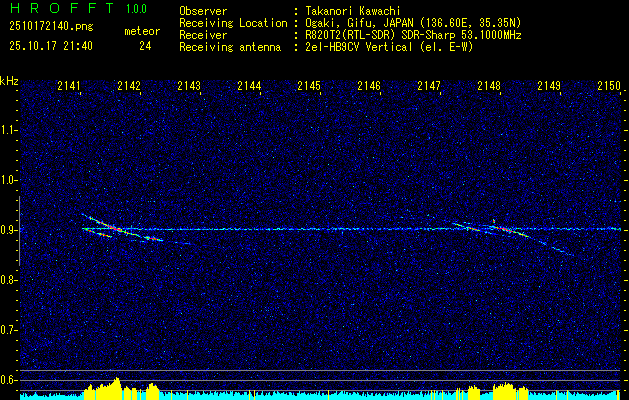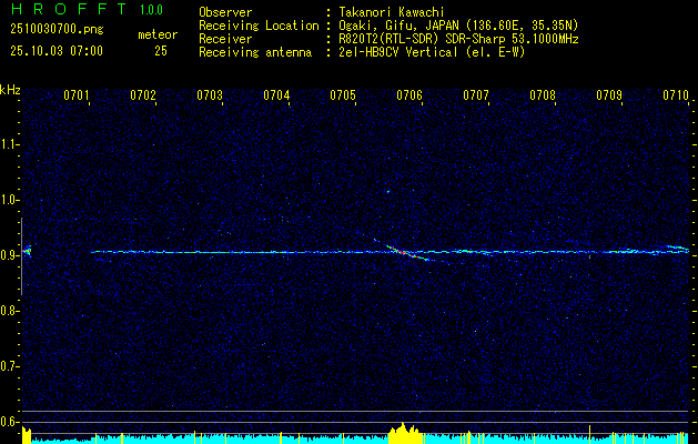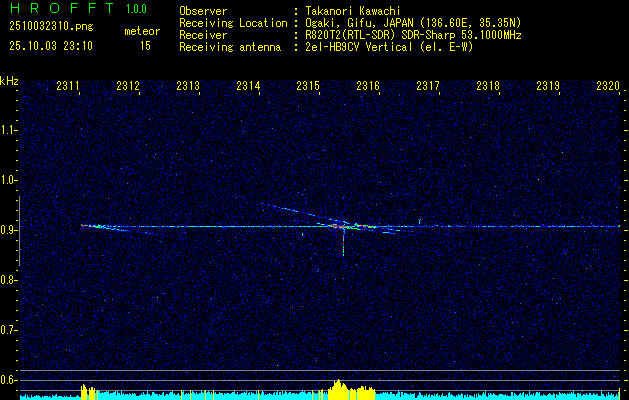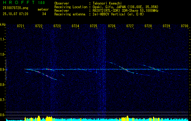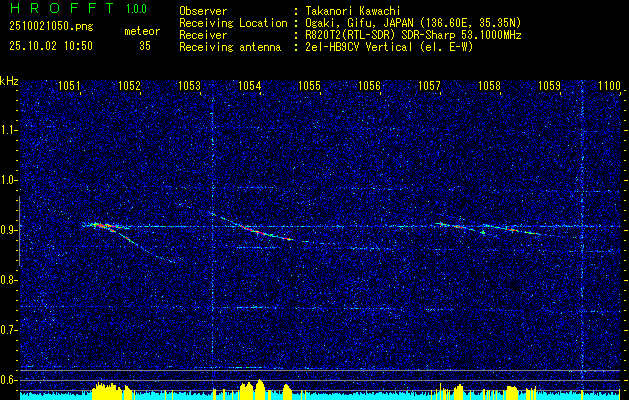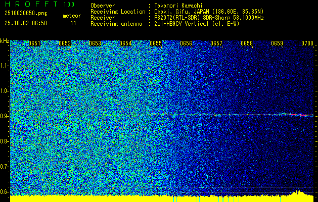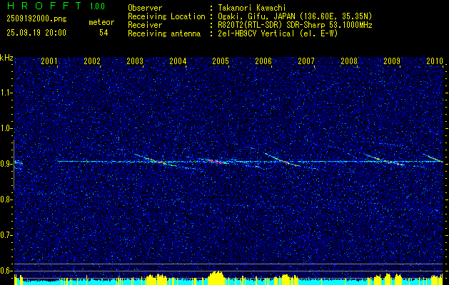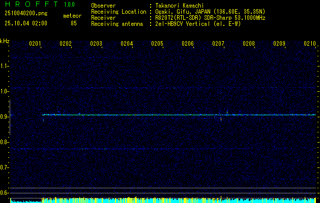 0.9kHz附近に発生している『点』または『塊』が流星によるエコーです.