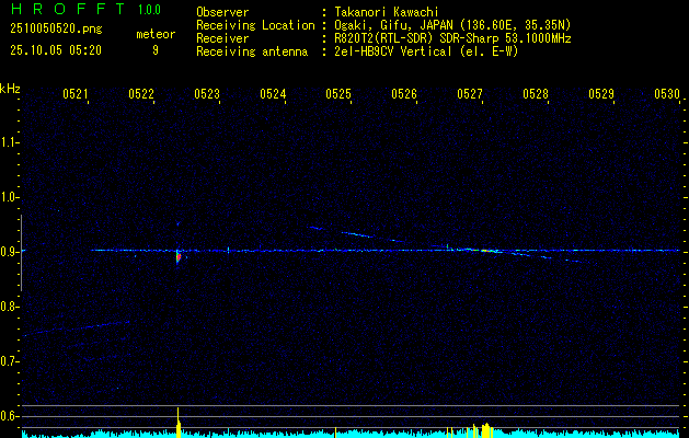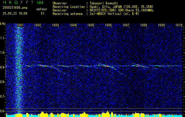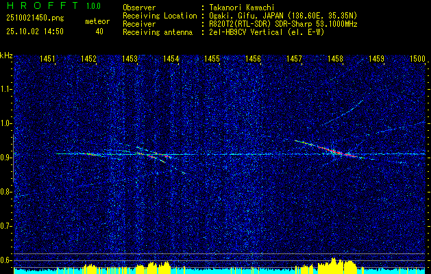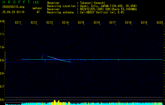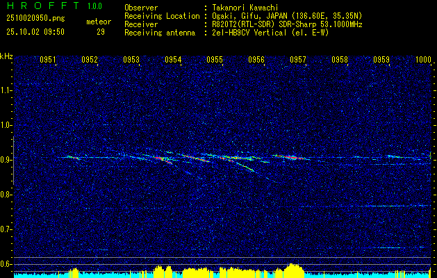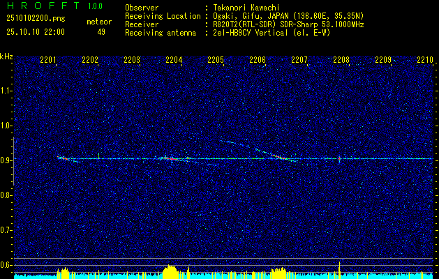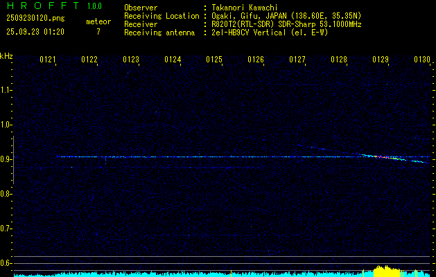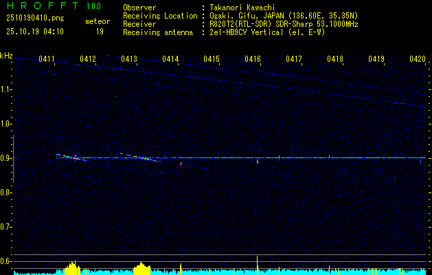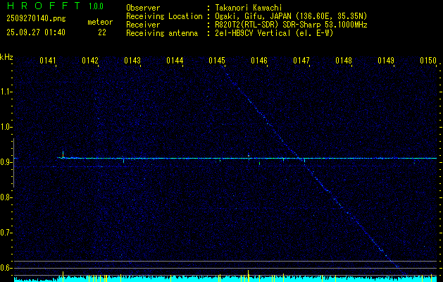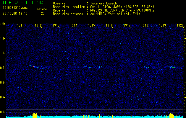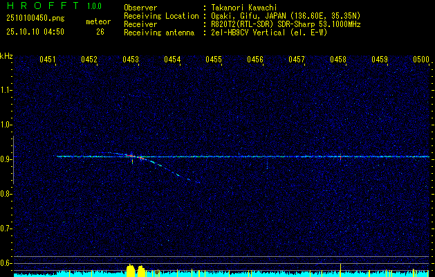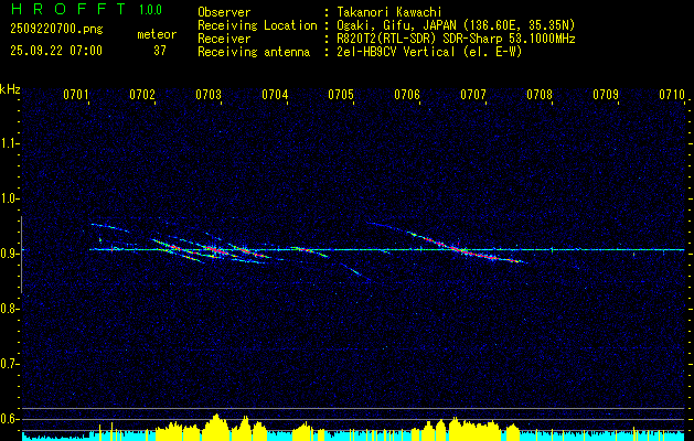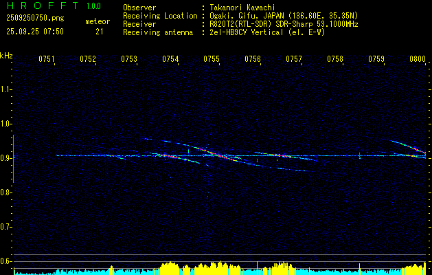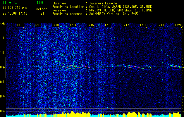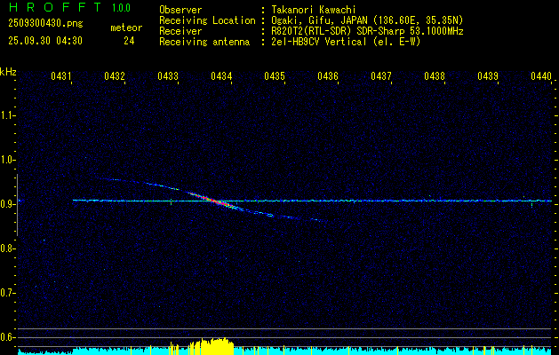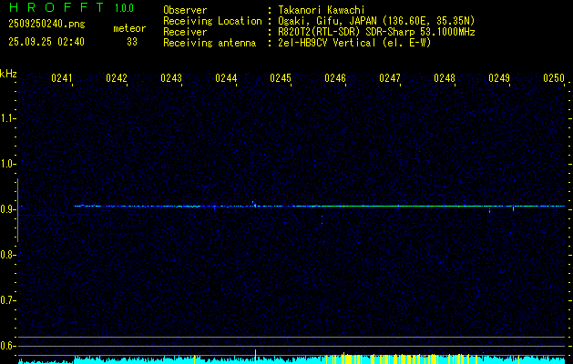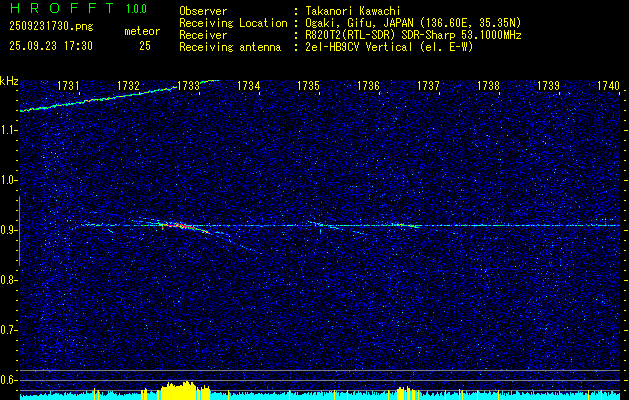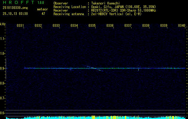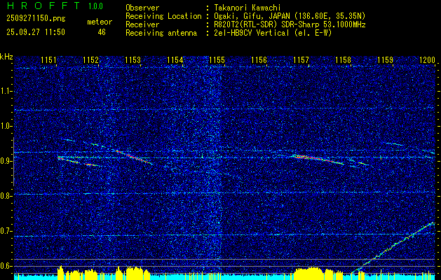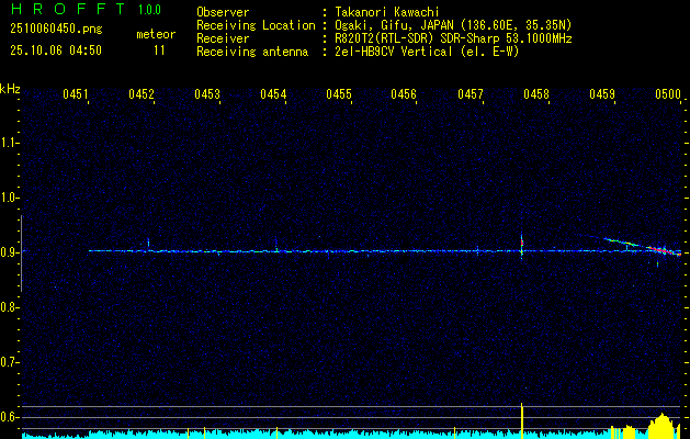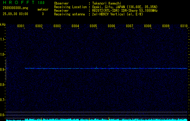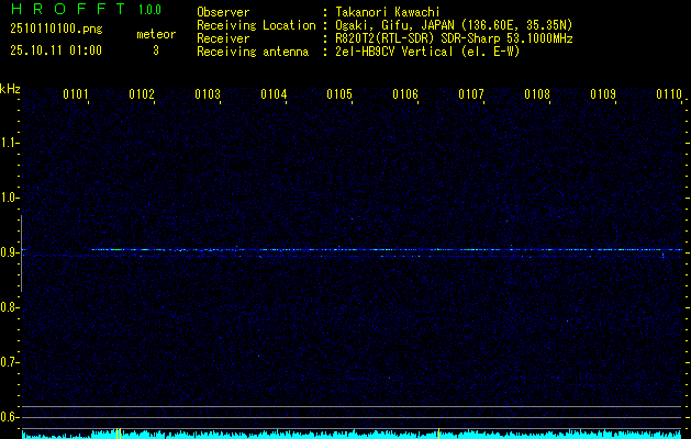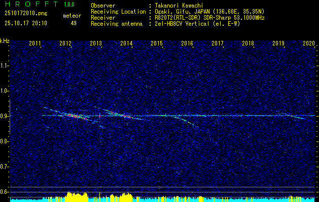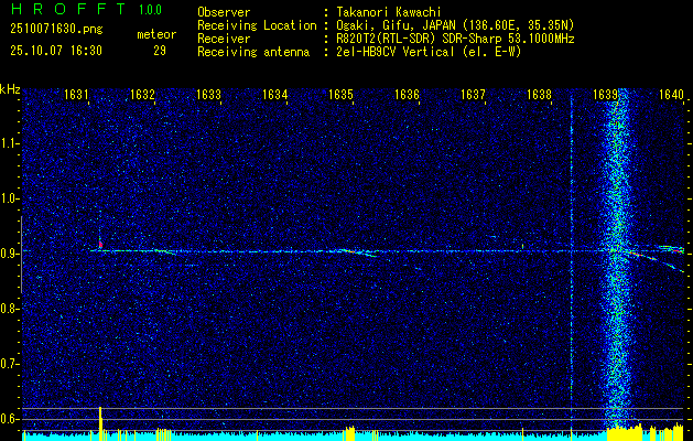 0.9kHz附近に発生している『点』または『塊』が流星によるエコーです.