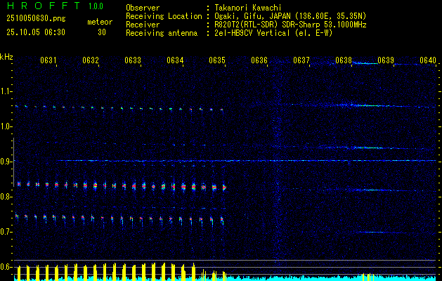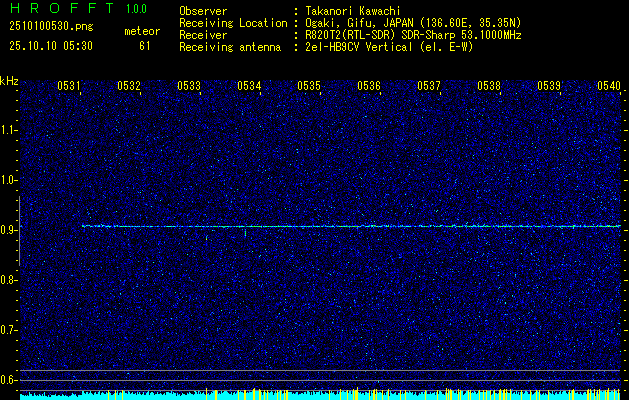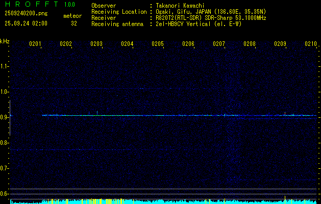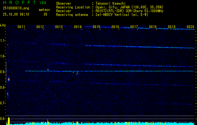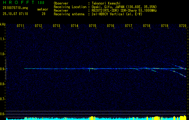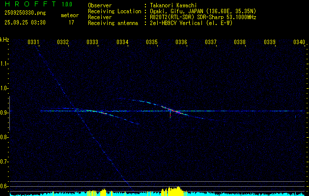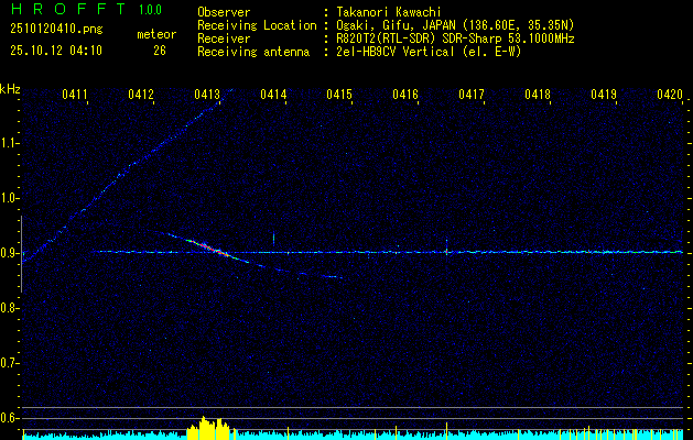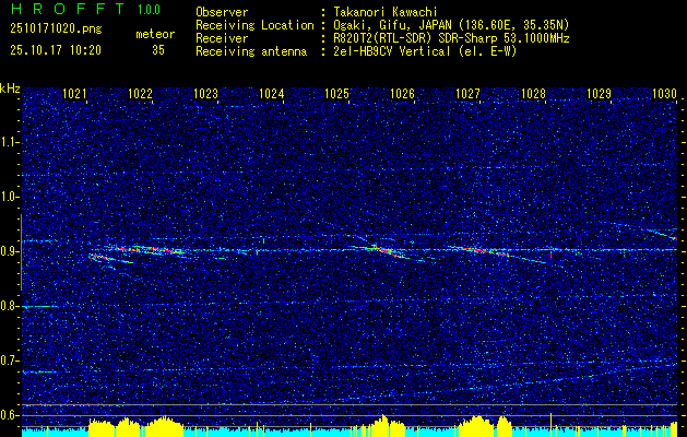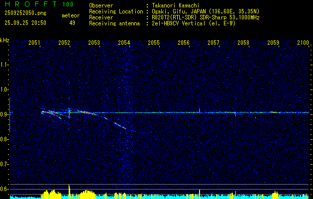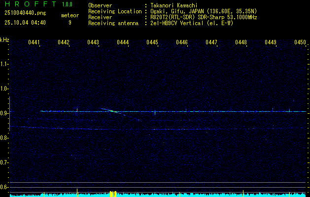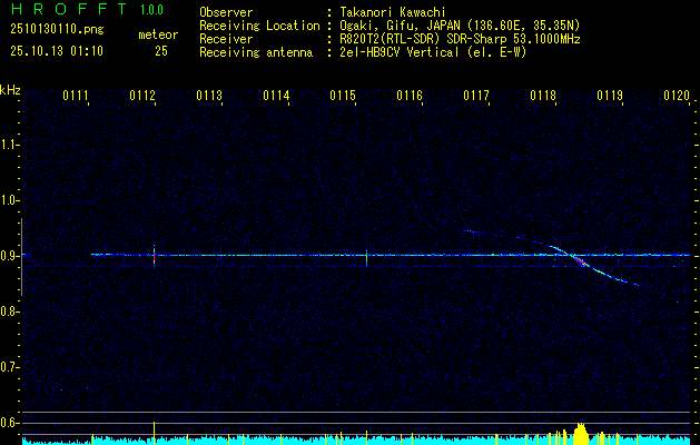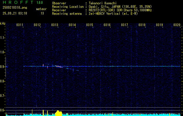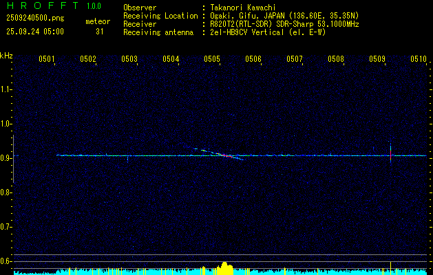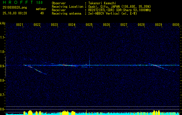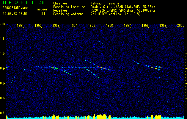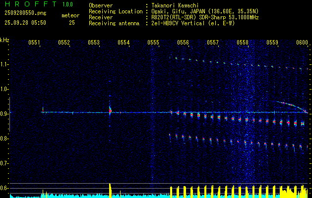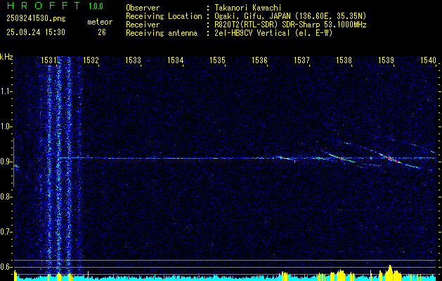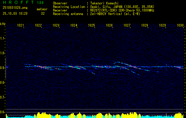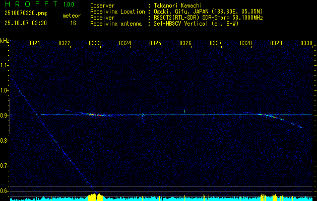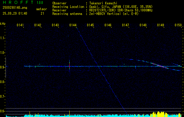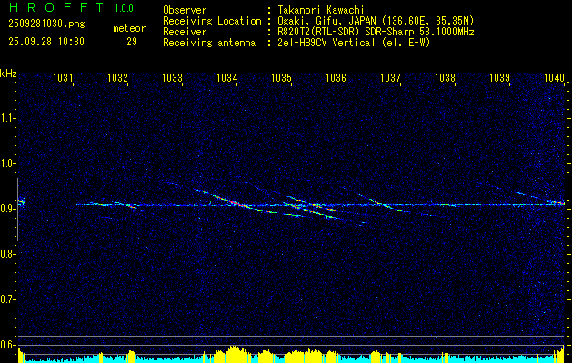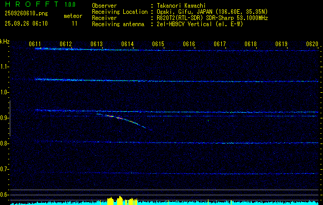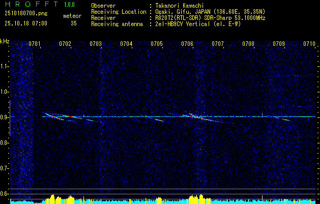 0.9kHz附近に発生している『点』または『塊』が流星によるエコーです.