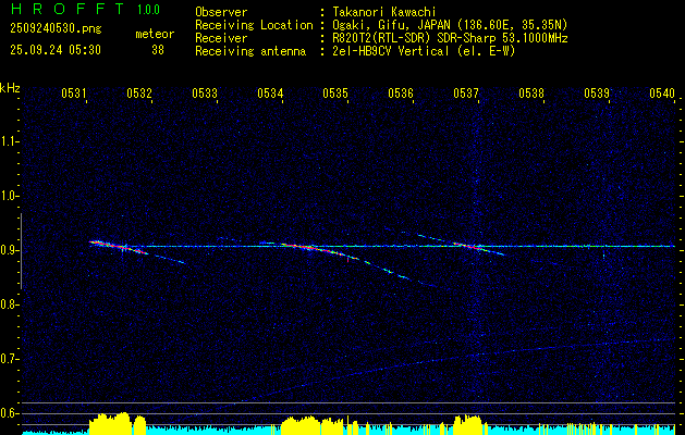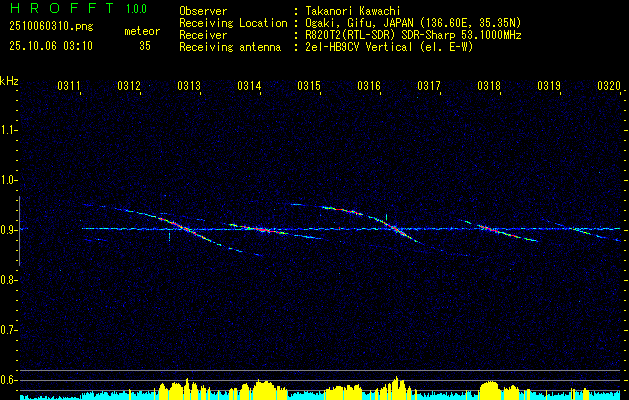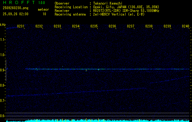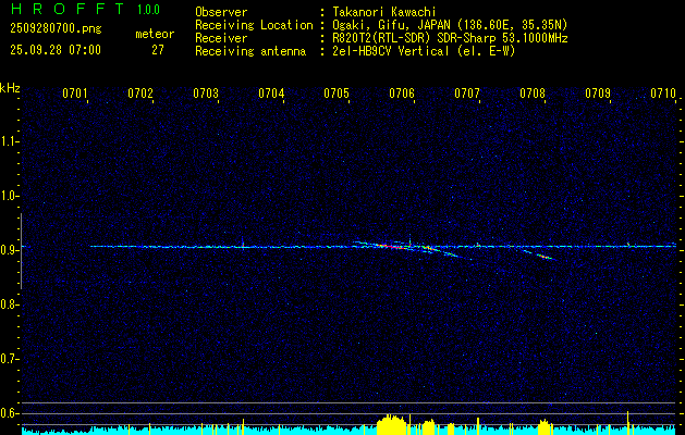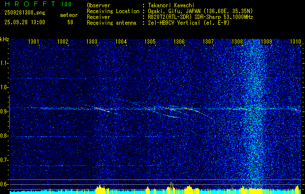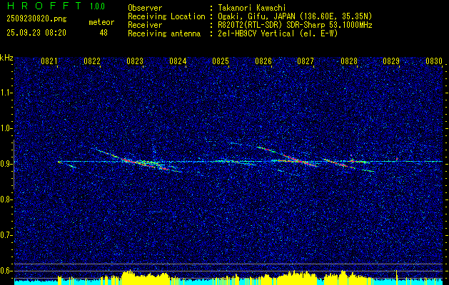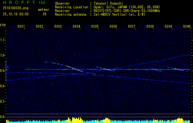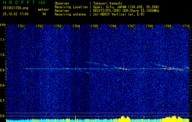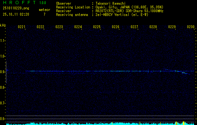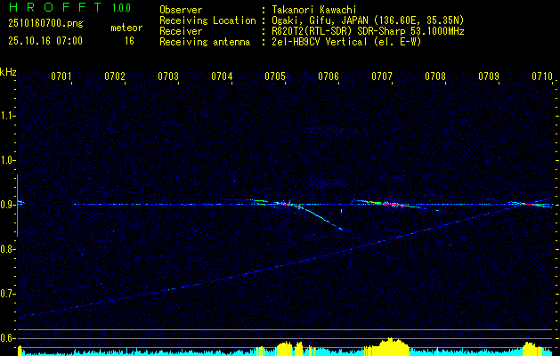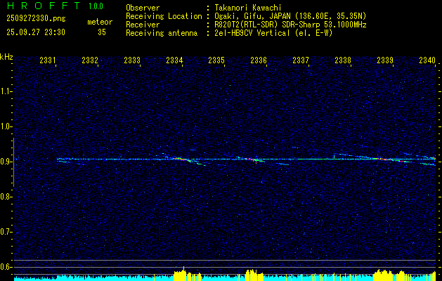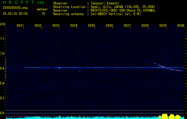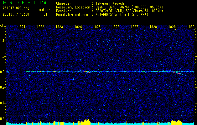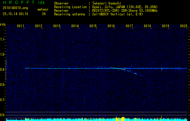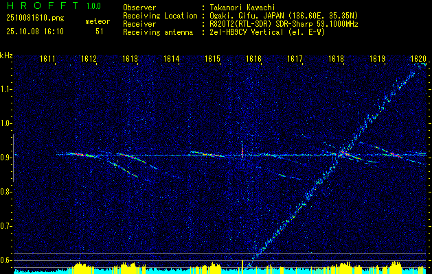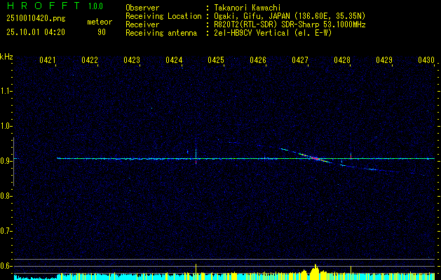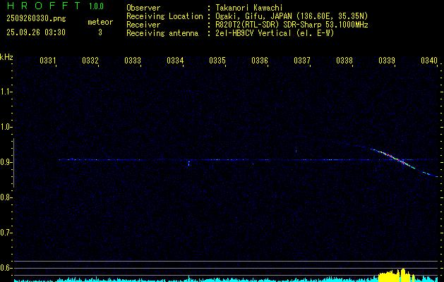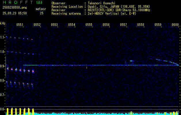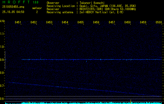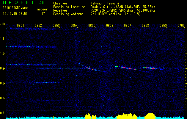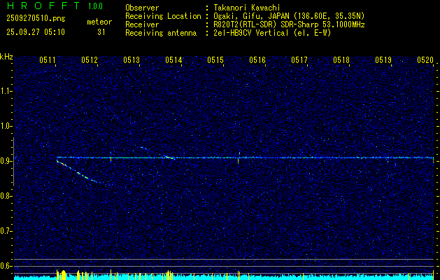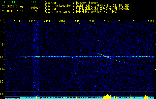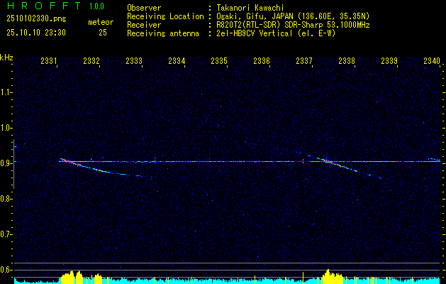 0.9kHz附近に発生している『点』または『塊』が流星によるエコーです.