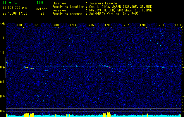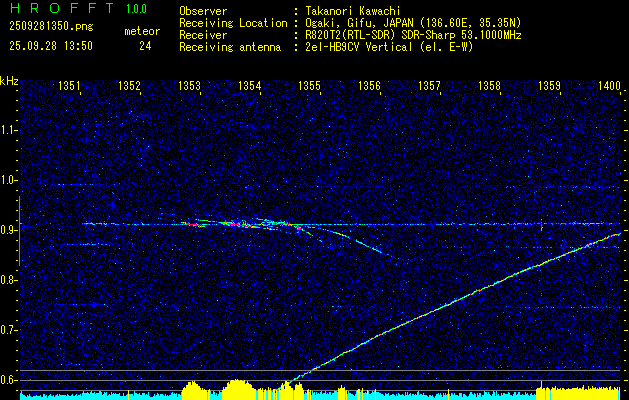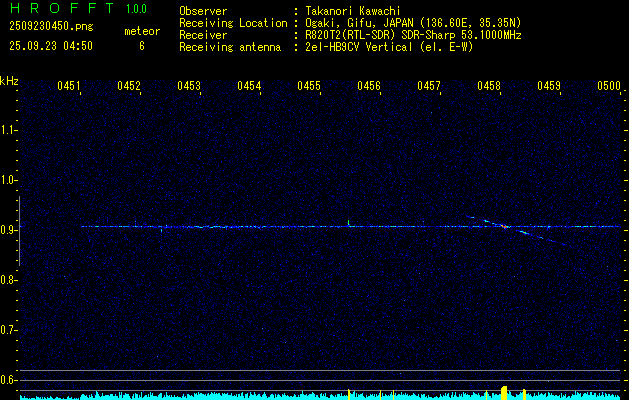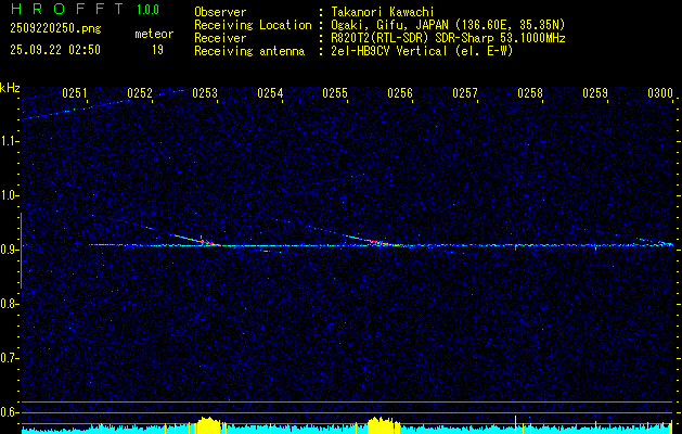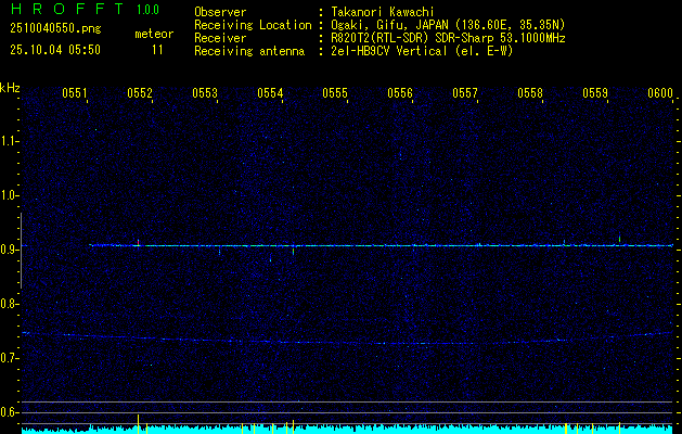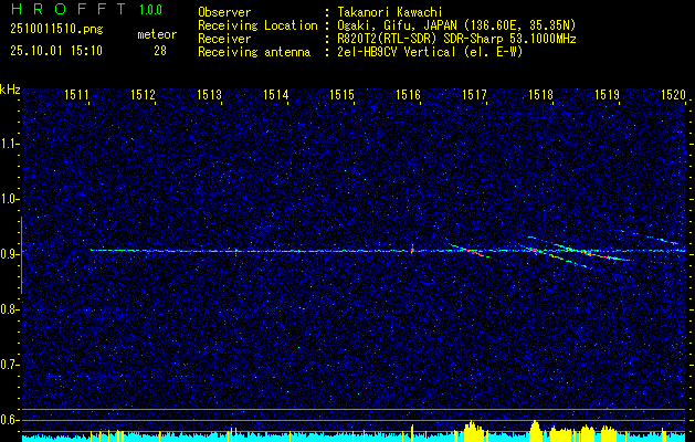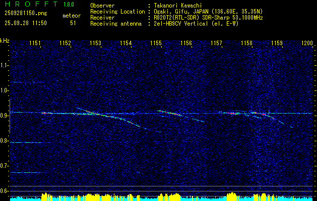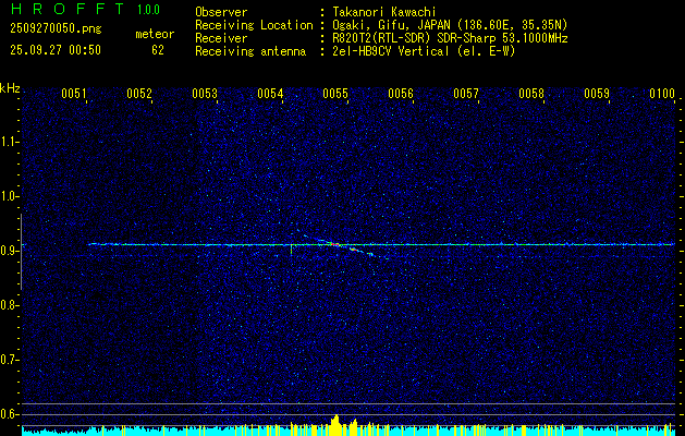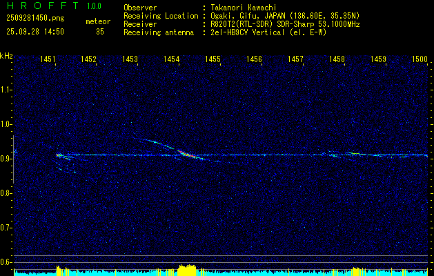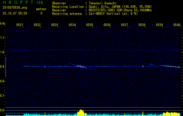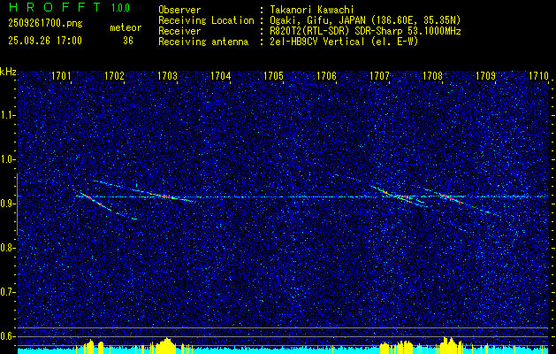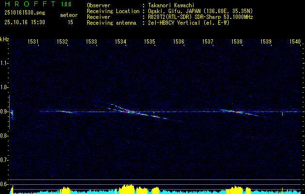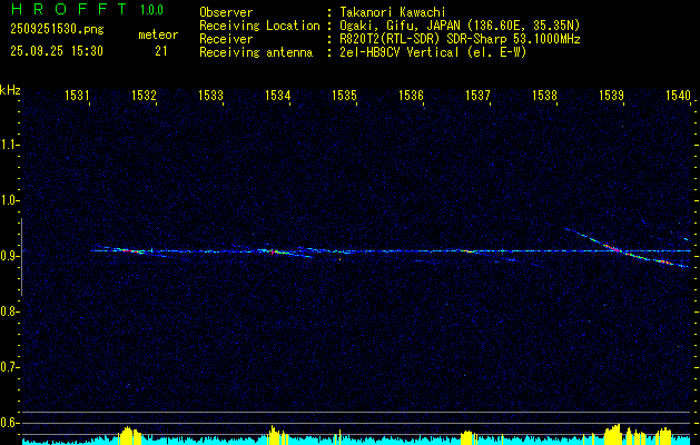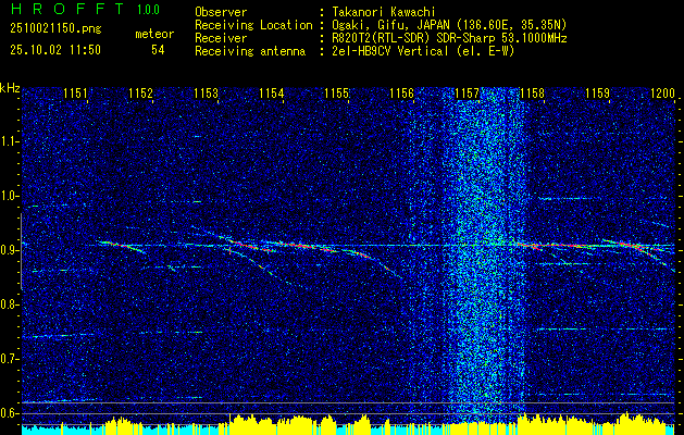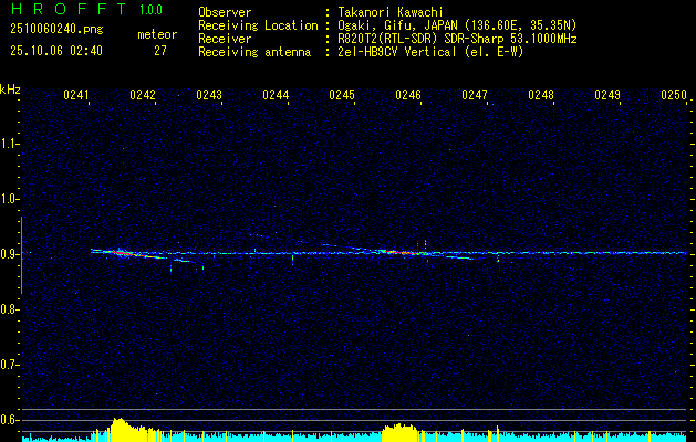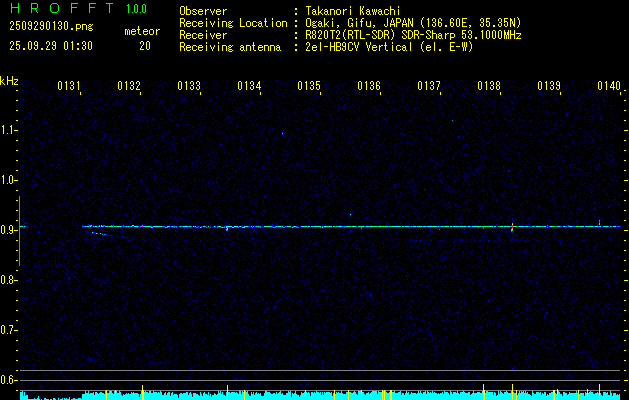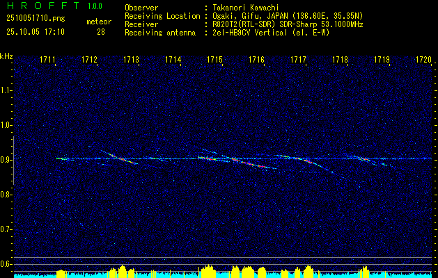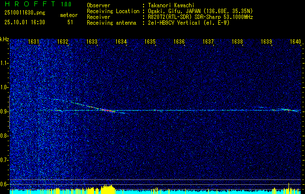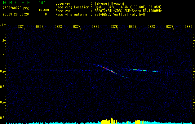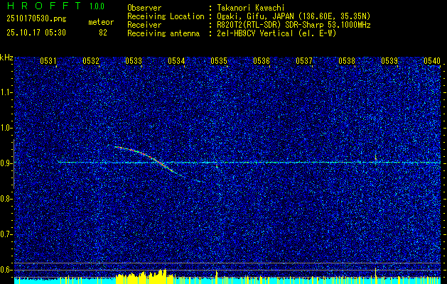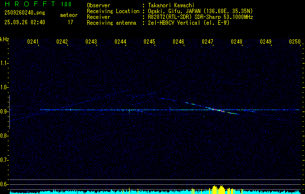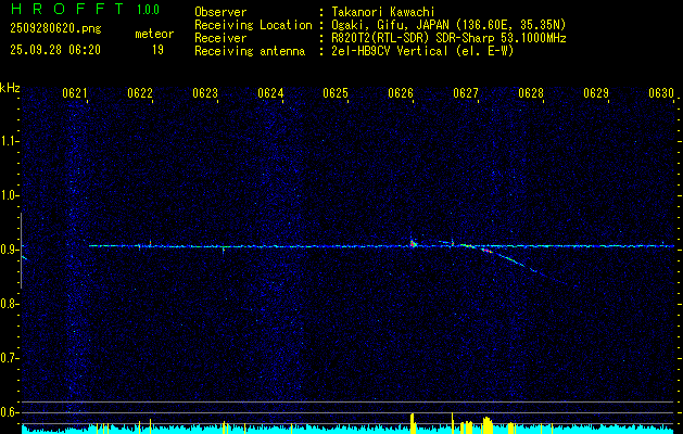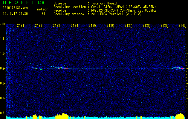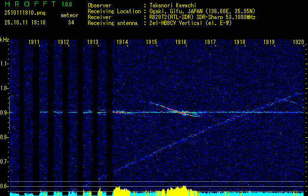 0.9kHz附近に発生している『点』または『塊』が流星によるエコーです.
