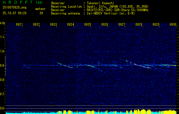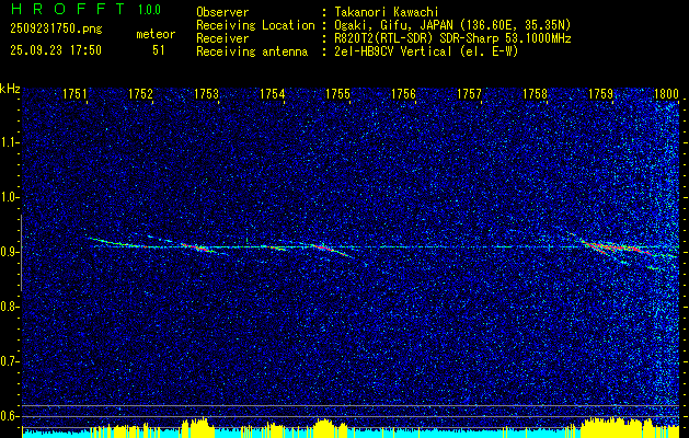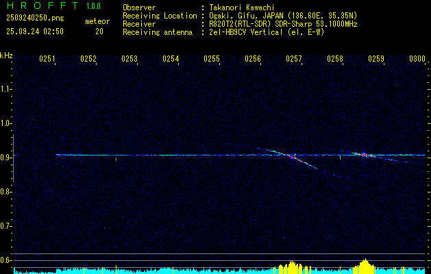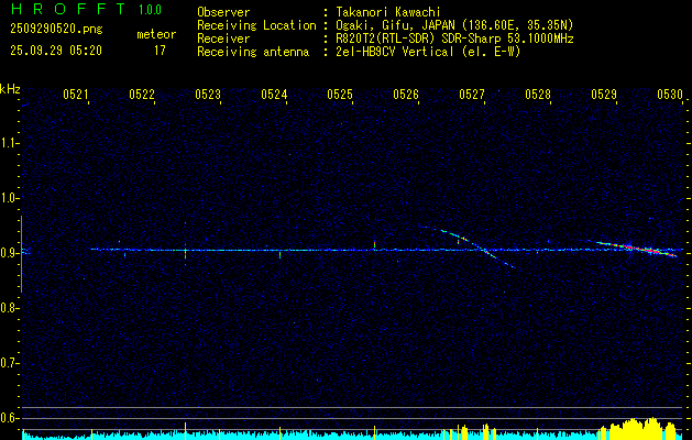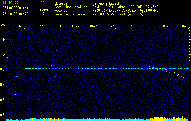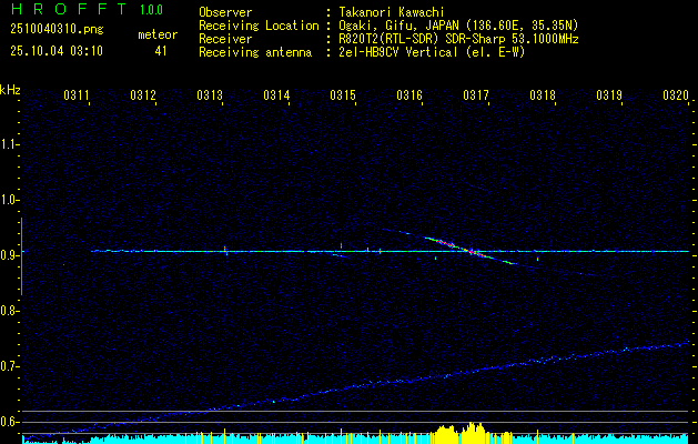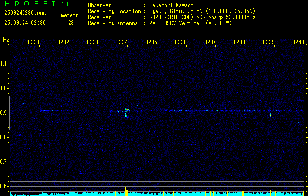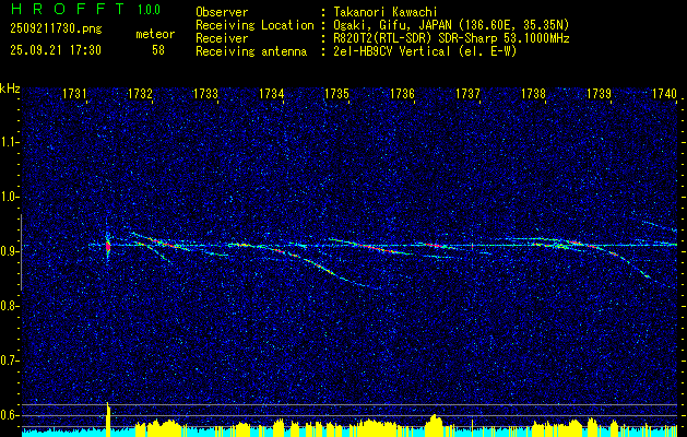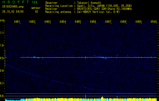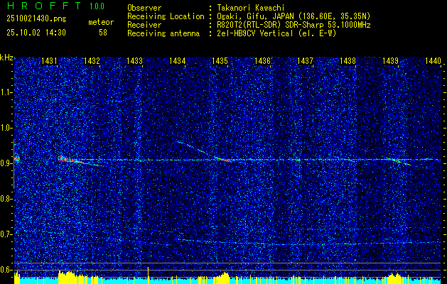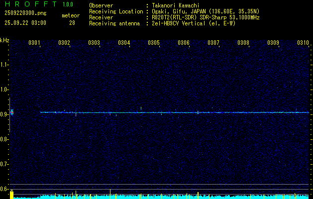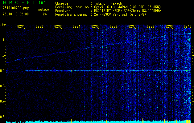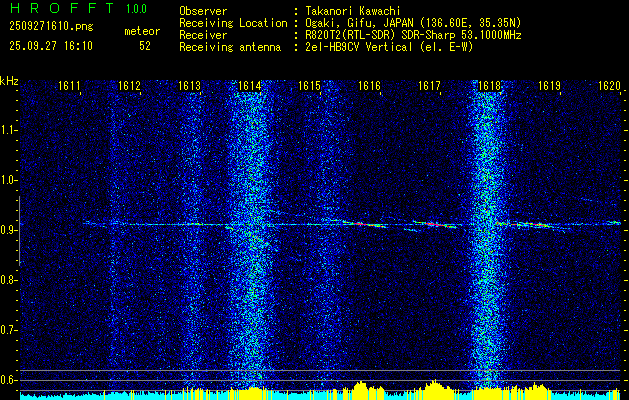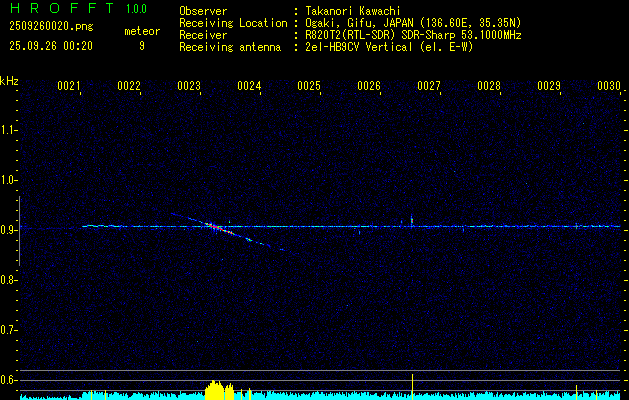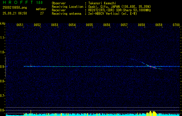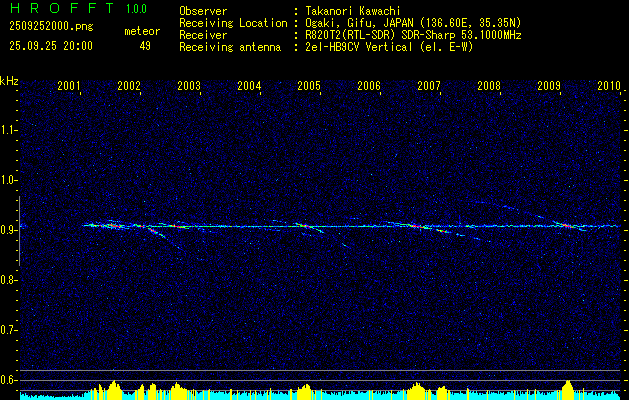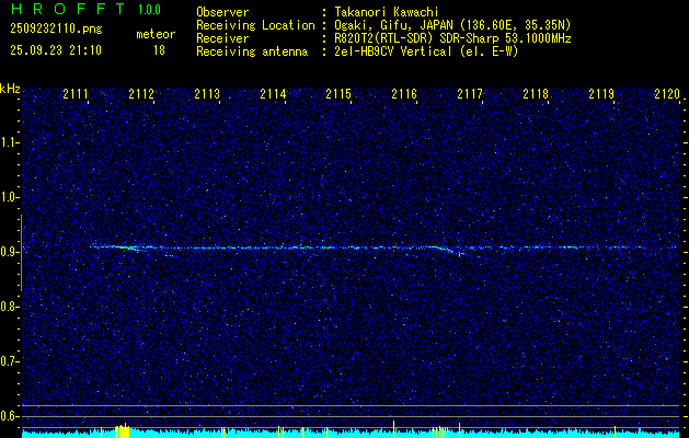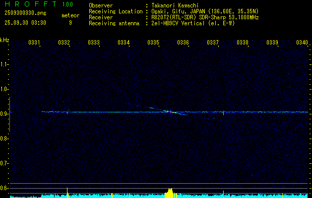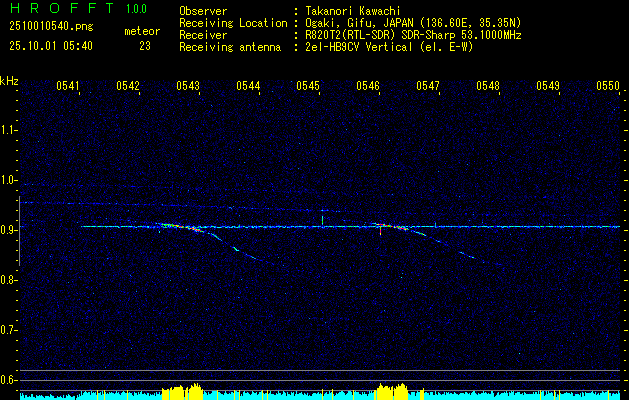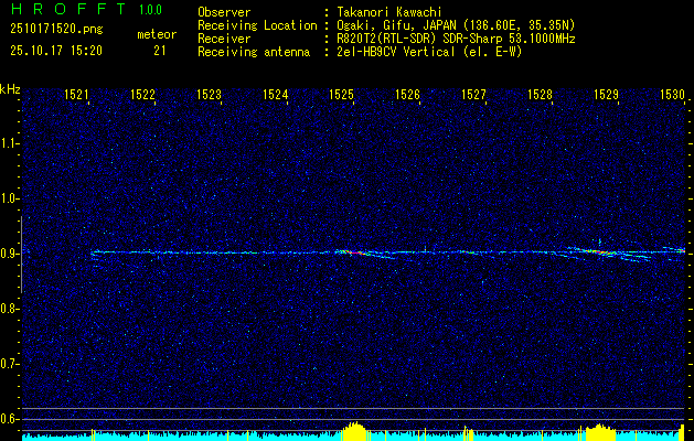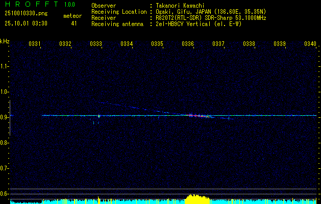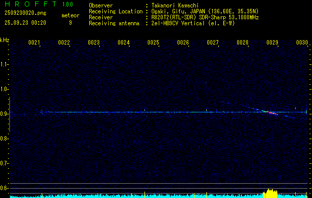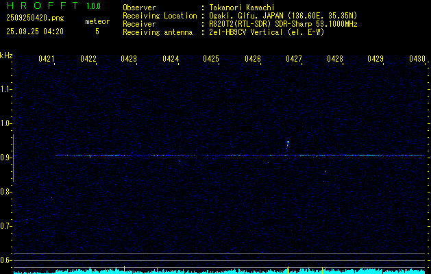 0.9kHz附近に発生している『点』または『塊』が流星によるエコーです.
