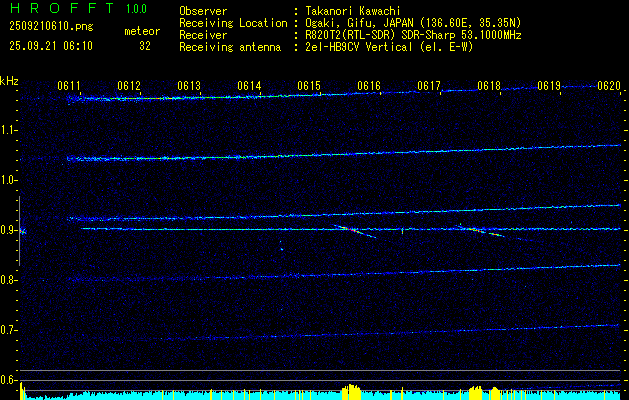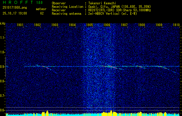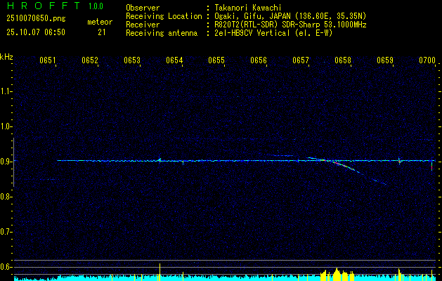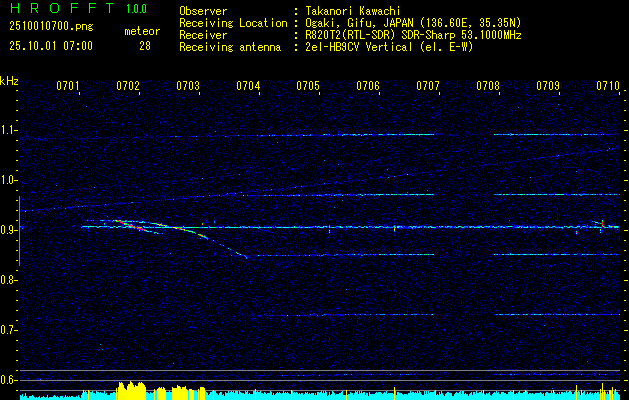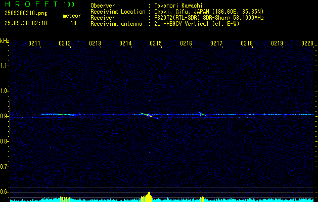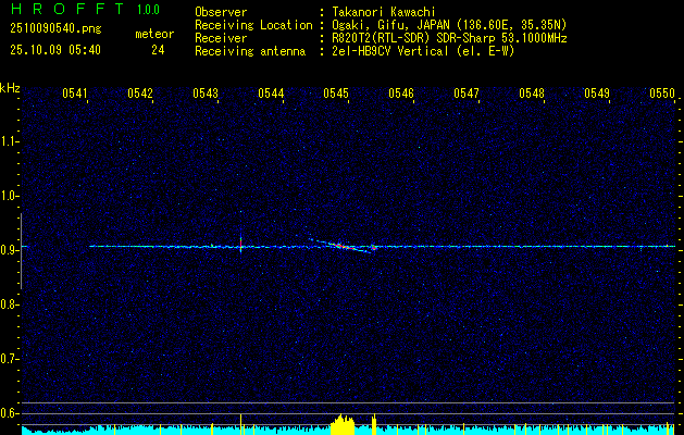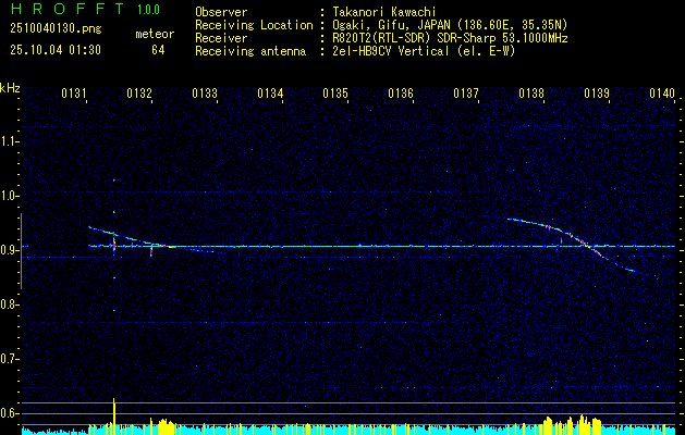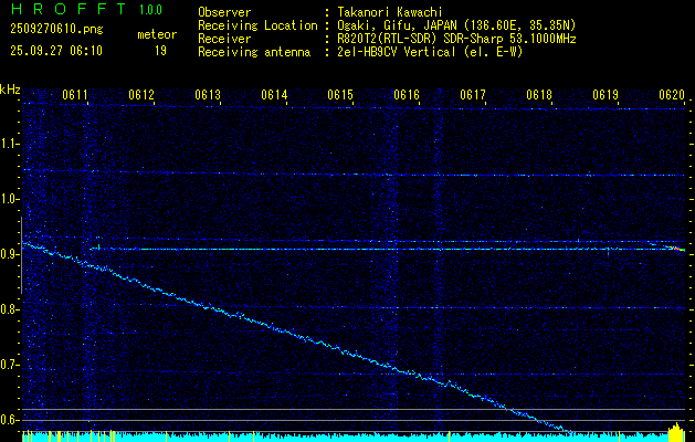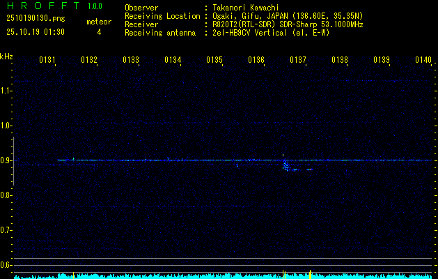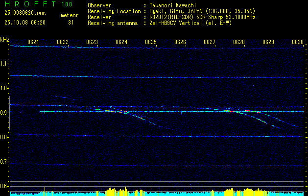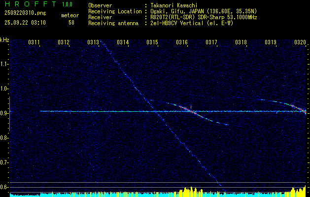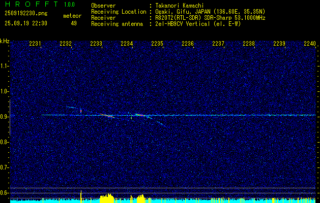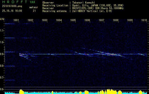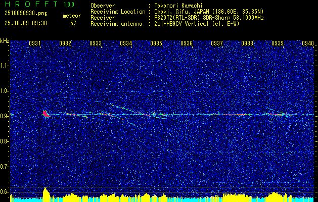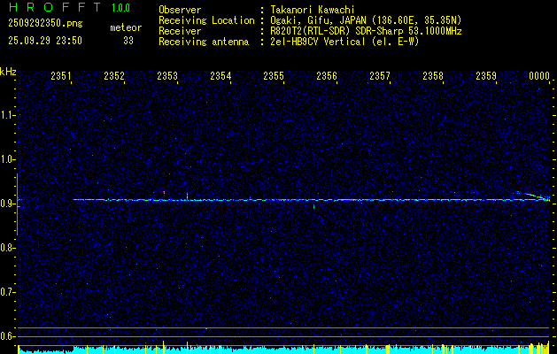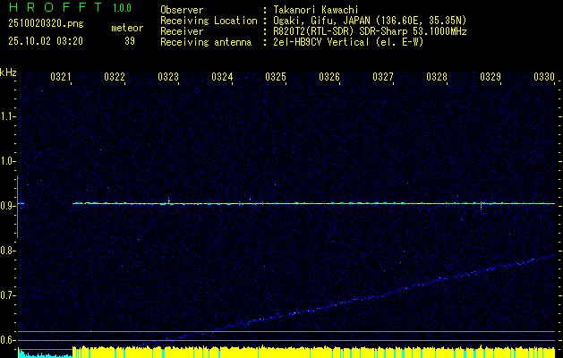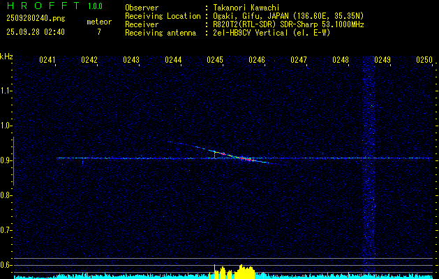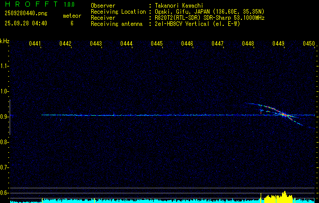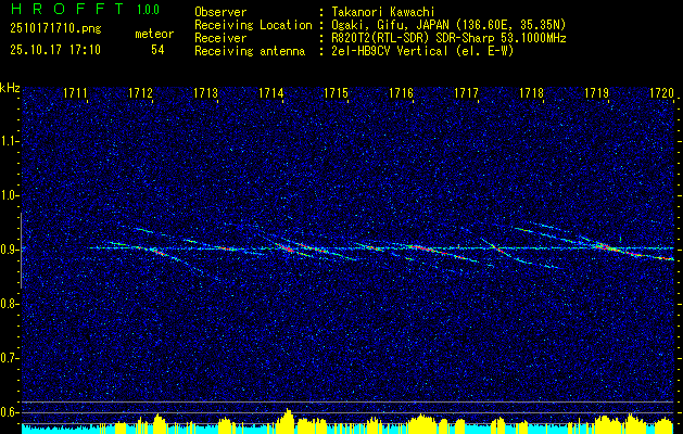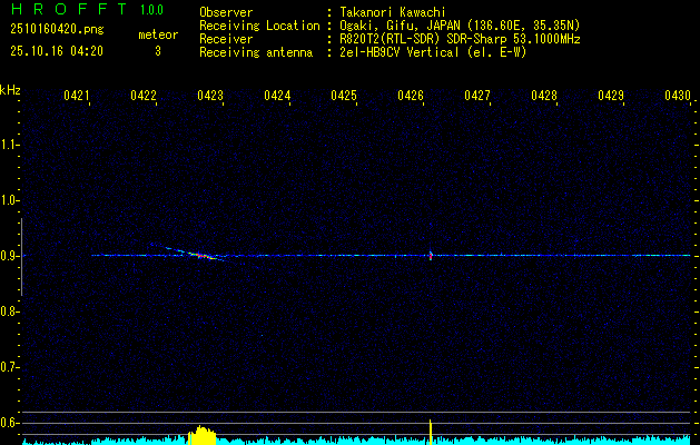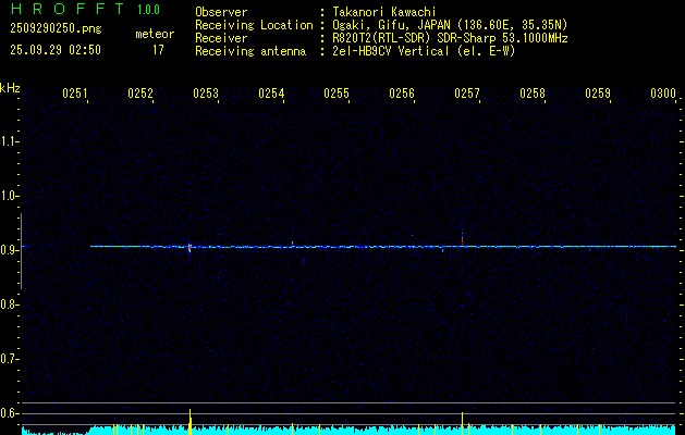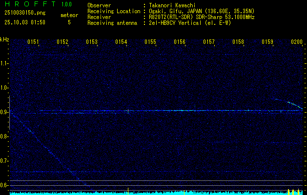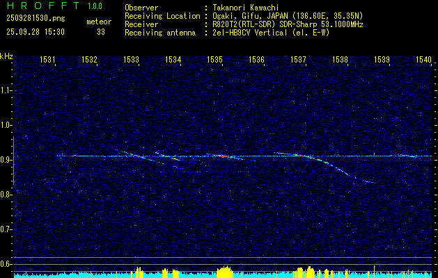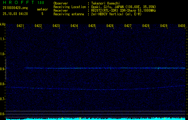 0.9kHz附近に発生している『点』または『塊』が流星によるエコーです.