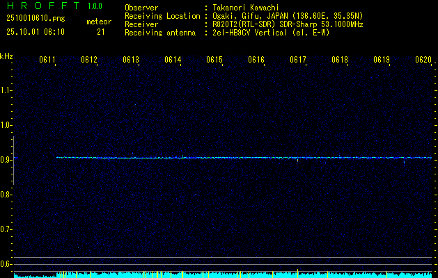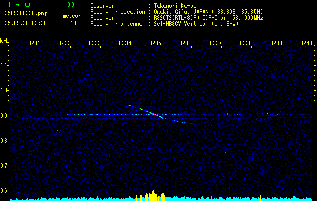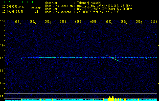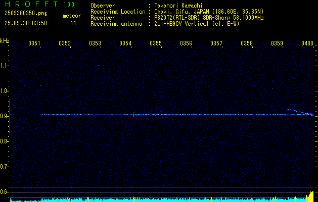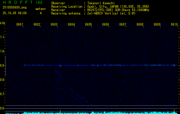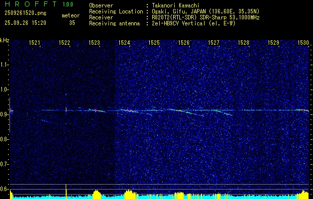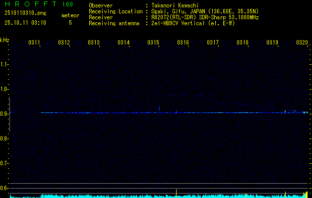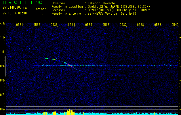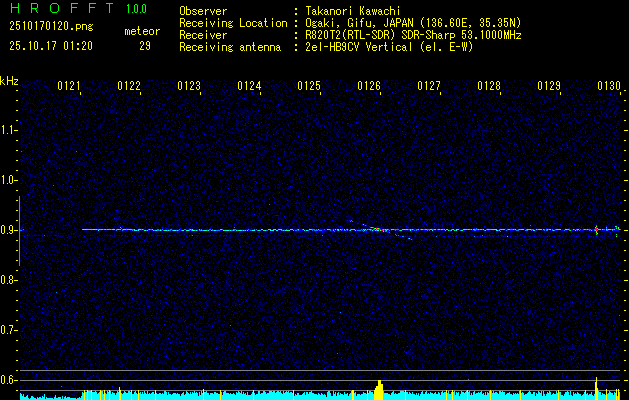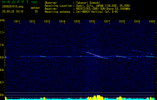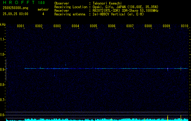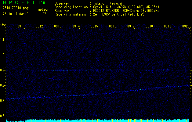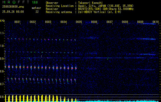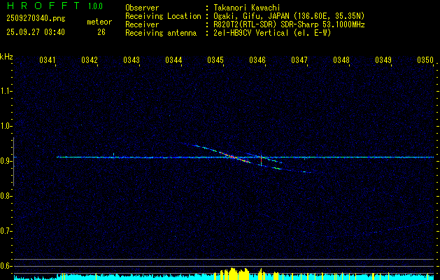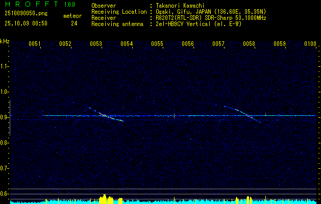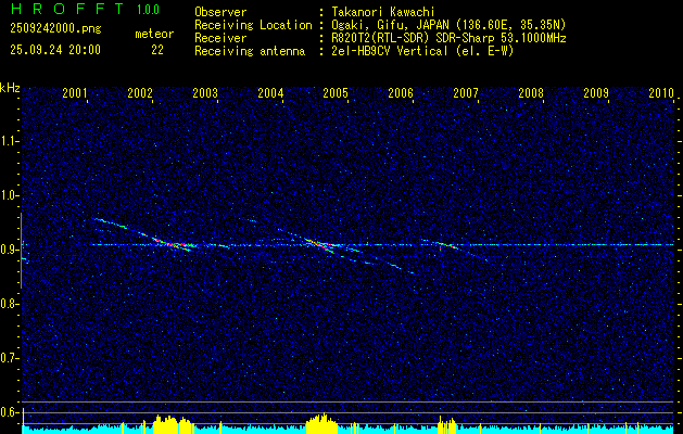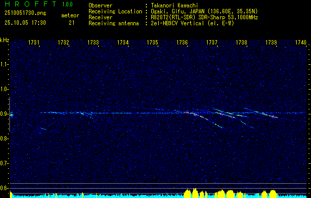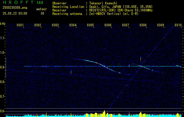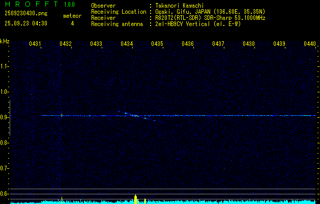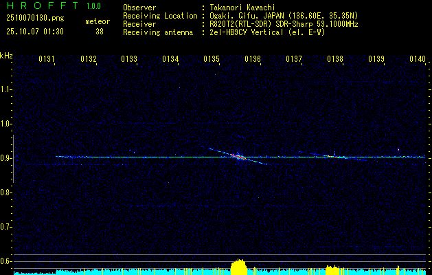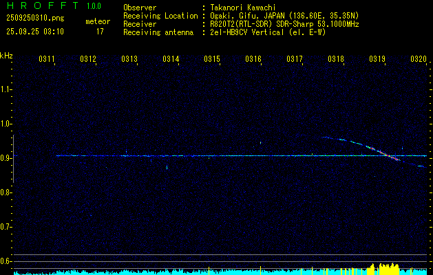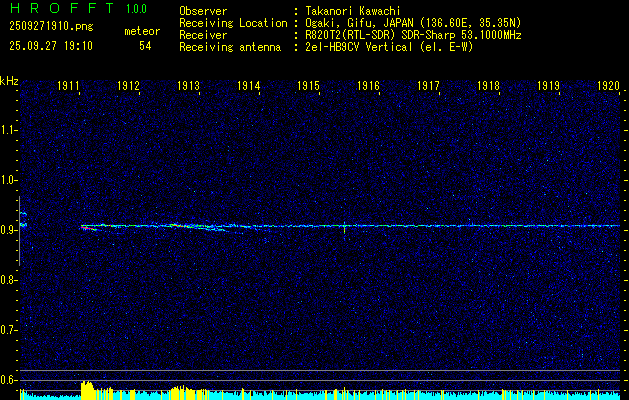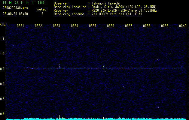 0.9kHz附近に発生している『点』または『塊』が流星によるエコーです.